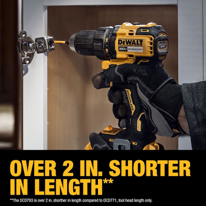 - **The DCD793 is over 2-in shorter in length compared to DCD771, tool head length only