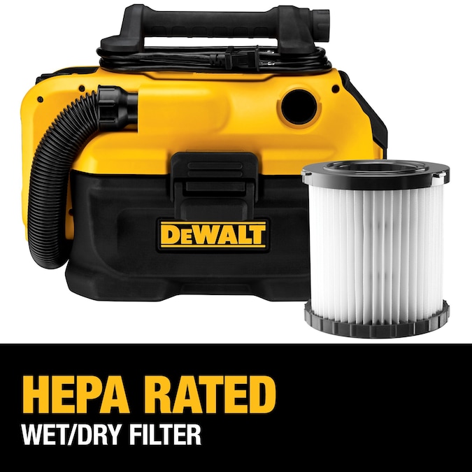 - HEPA-rated reusable wet/dry filter traps dust with 99.97% efficiency and can be easily cleaned by tapping or rinsing with water