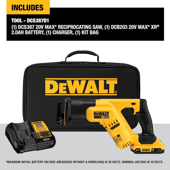 DEWALT 20V MAX compact reciprocating saw bare (5.0 Ah). Bright LED light illuminates dark work areas for better visibility. Pivoting shoe provides versatility while cutting. Tool only.