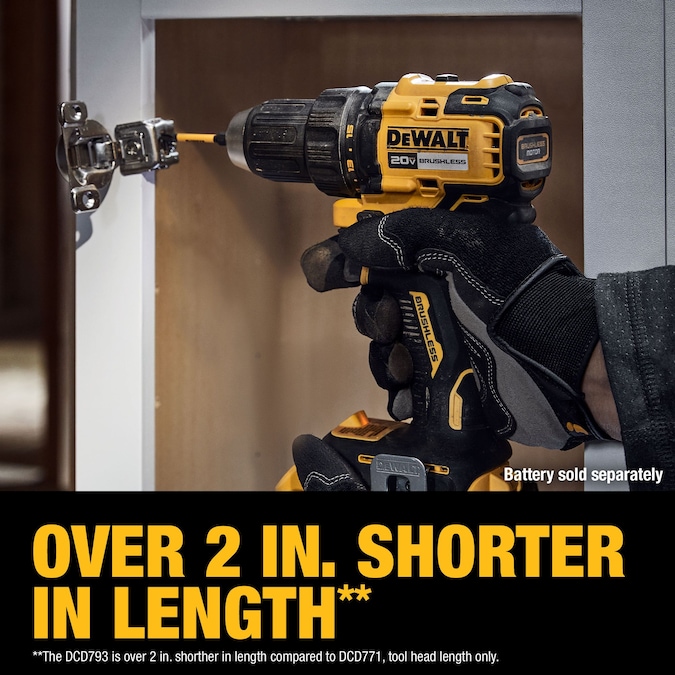 - DCD793 – Over 1-in shorter in length** at 6.93-in (tool head length only) to tackle tough jobs