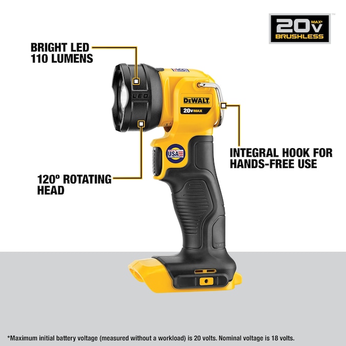 - DCL040 LED Work Light has an output of 110 Lumens to help illuminate your workspace