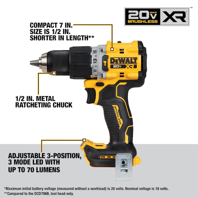 - COMPLETE CHALLENGING PROJECTS using DCD805 with up to 40% more UWO vs. the DCD796B using DCB205 battery or DCBP034 DEWALT POWERSTACK™ battery