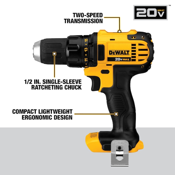 - DCD780 20V MAX 1/2-in drill/driver features two speed transmission (0-600/0-2000RPM)