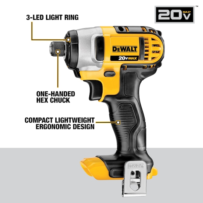 - DCF885 20-volt MAX 1/4-in impact driver features 3 LEDs with a 20 second delay after trigger release to provide visibility without shadows