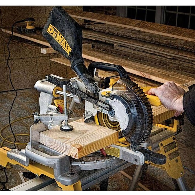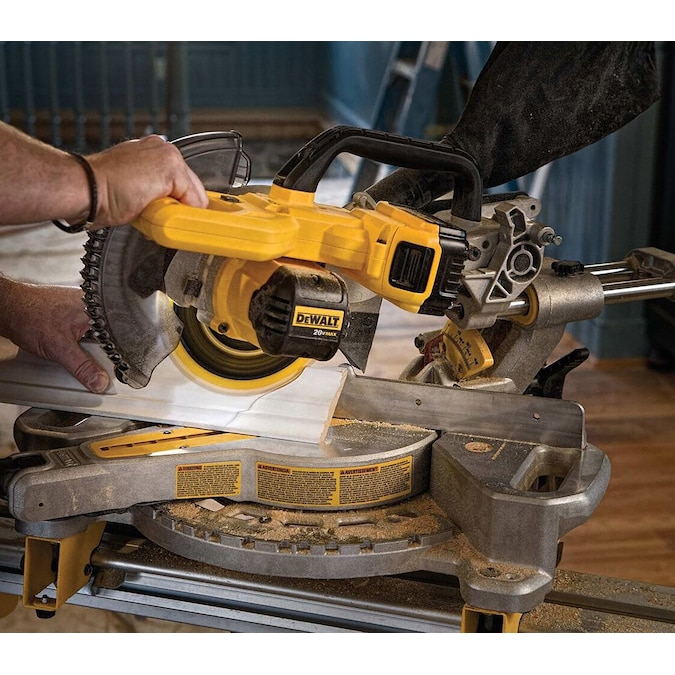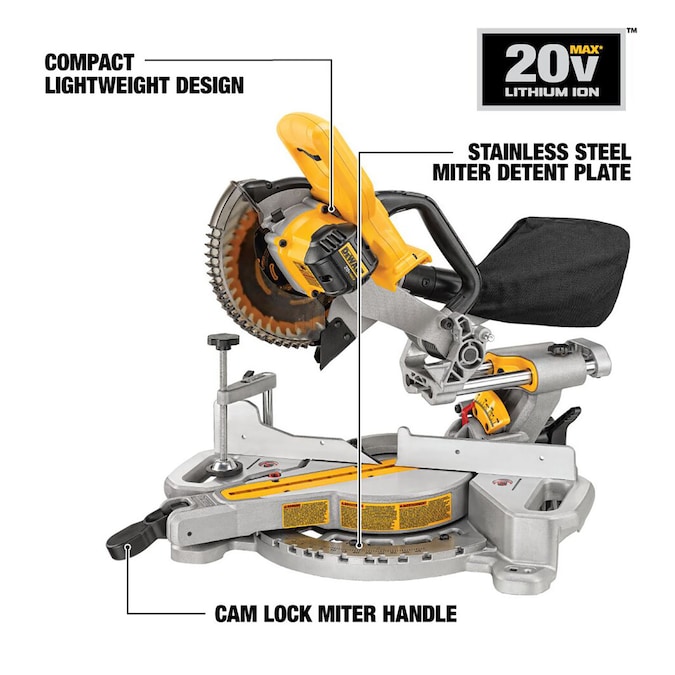 - Includes DCS361 7-1/4-in (184mm) cordless sliding compound miter saw, carbide blade, blade wrench, dust bag, and material clamp