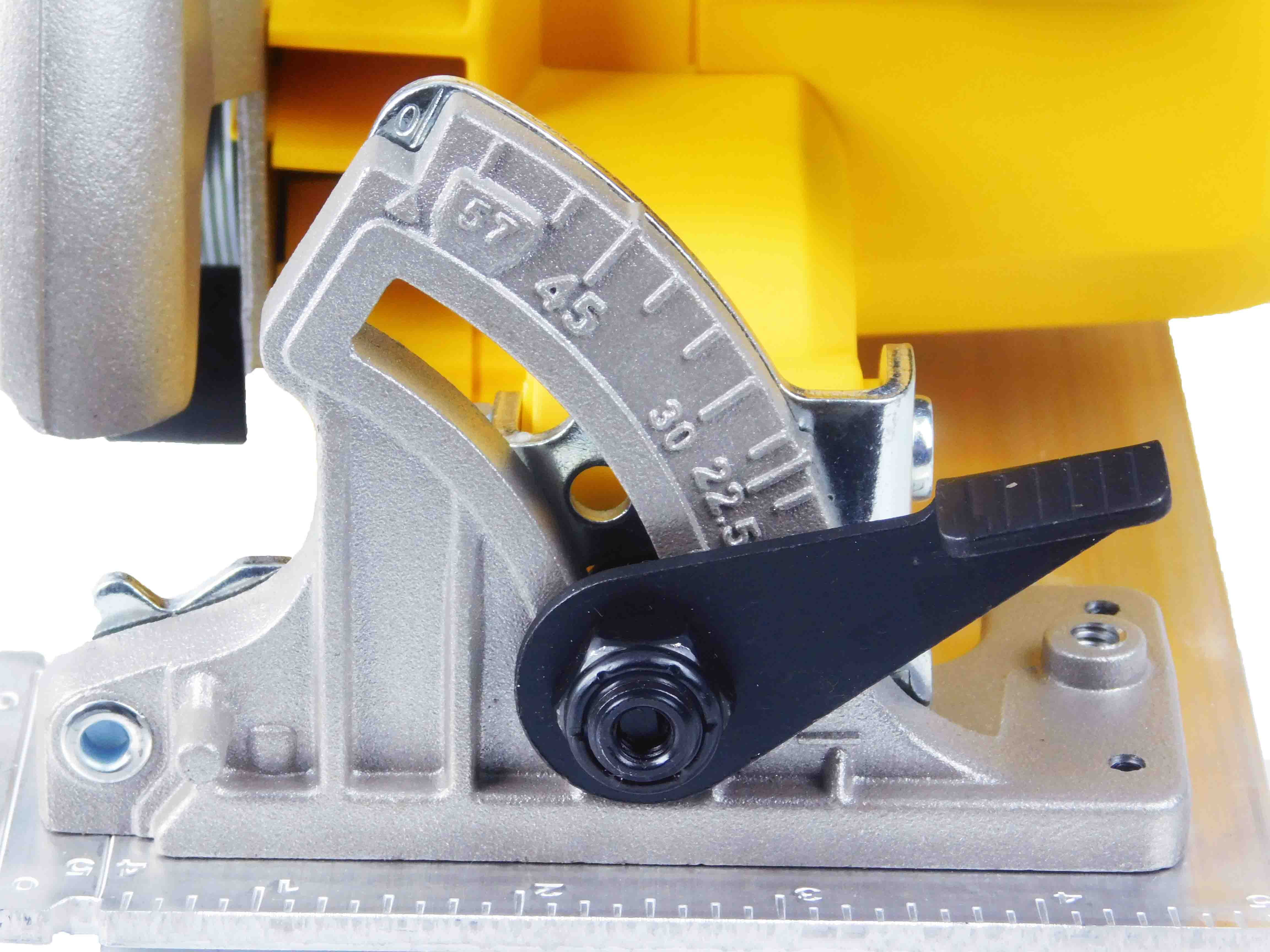 DEWALT DCS570B 20V, 7-1/4 in Cordless Circular Power Saw, 5200 RPM Brushless motor provides 5200 RPM, maintaining speed under load 7-1/4-inch blade offers a cutting capacity of 2-9/16 inches at 90° 57° bevel capacity with positive stops at 45° and 22.5° for increased versatility Rubber overmold for improved control and comfort Blade stops immediately after the trigger is released for enhanced safety