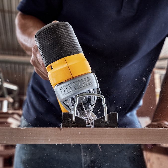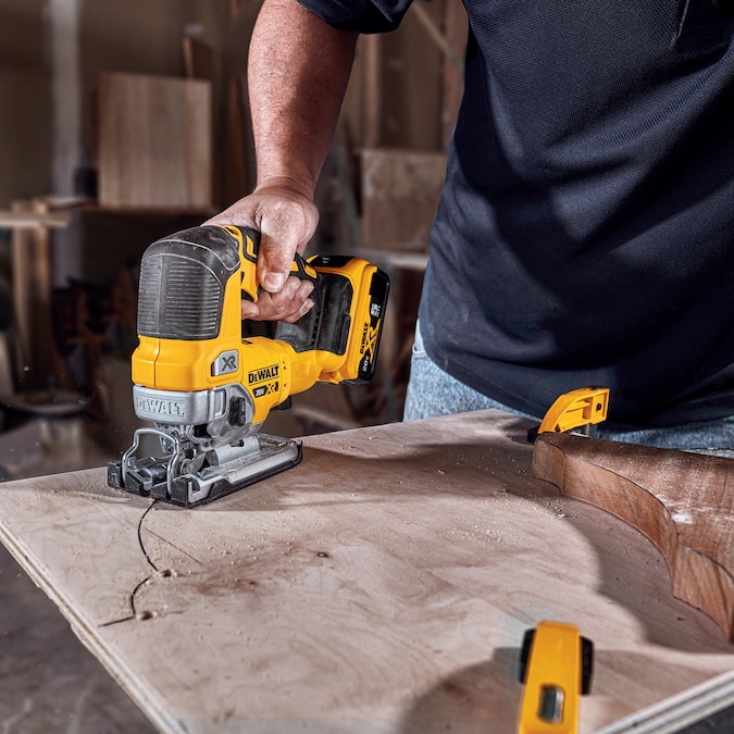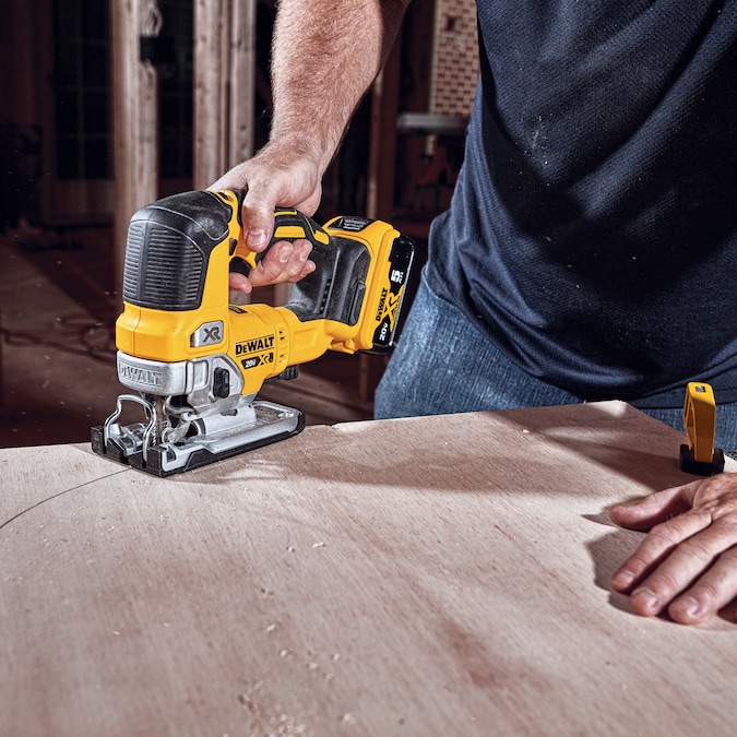 This 20V MAX XR® cordless jig saw kit comes with a 5 Ah battery, giving you the power and extreme runtime you need to work all day. A variable speed trigger and dial provide total speed control up to 3,200 spm for ultimate cutting versatility. 4-position orbital action allows additional adjustments to optimize cut quality and speed for the material you’re cutting. A bright LED light makes it easy to follow cut lines in shadows and when lighting is low. The updated all-metal, lever-action keyless blade clamp is designed for quick and easy blade changes. The keyless shoe bevel adjusts easily with detents at 0°, 15°, 30°, and a positive stop at 45°. A removable shoe cover helps protect work surface from scratches, and an integrated dust blower helps remove dust and debris from your line of sight while cutting.
