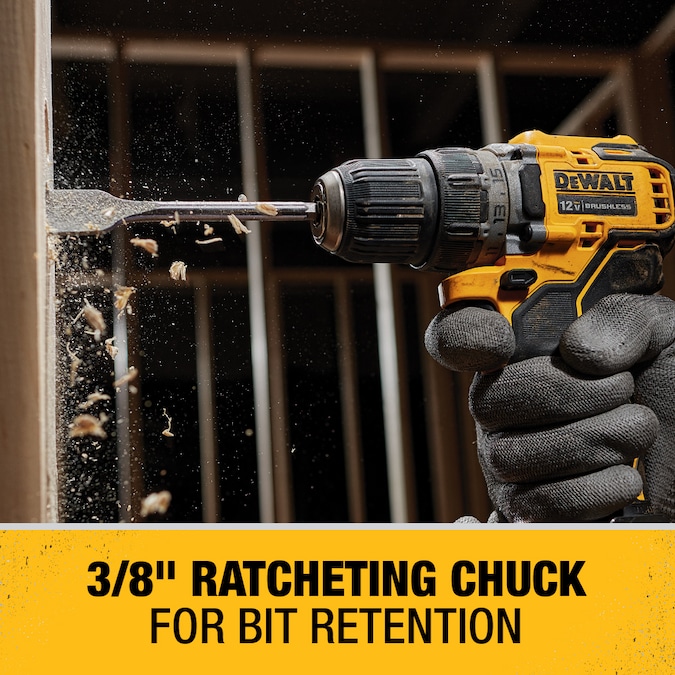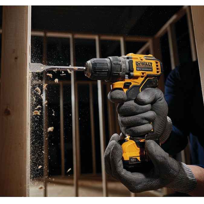 The DCD701 XTREME™ 12V MAX Brushless 3/8-in cordless drill/driver kit is compact and performance packed. This drill is ideal for precision applications like drilling small pilot holes. It can also can accept up to a 1/2-in spade bit. At only 5.97-in long, it is packed to perform with a 2-speed transmission. It also features a bright LED positioned light on the foot to illuminate work areas.
