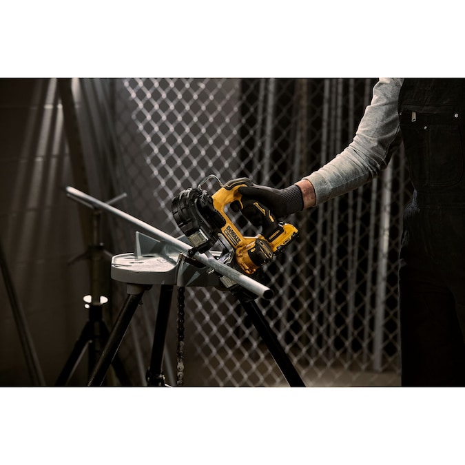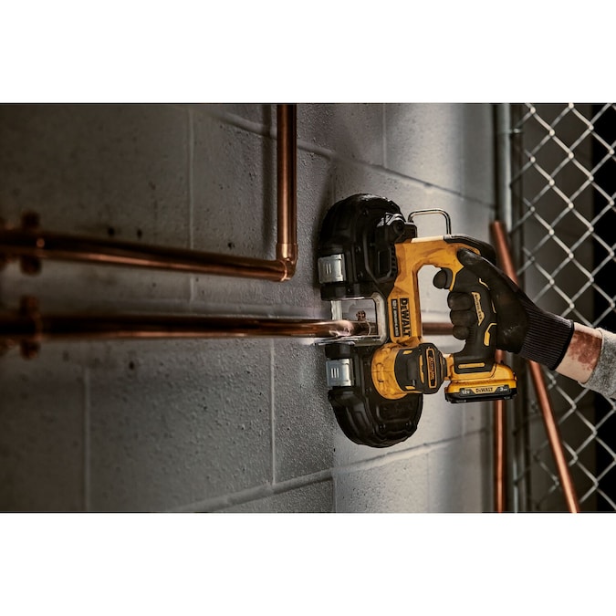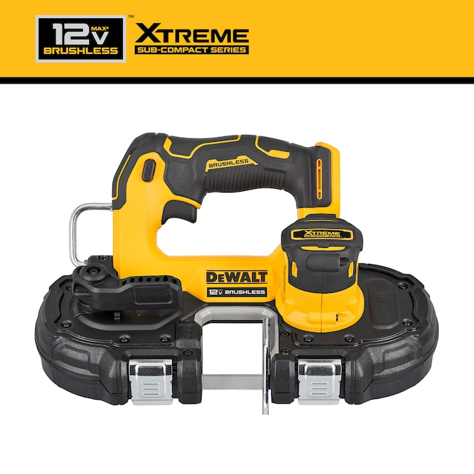 The compact XTREME 12V MAX* 1-3/4 in. Brushless Cordless Bandsaw is lightweight at 6.54 lbs. with an integrated guard making it ideal for overhead and one-handed cutting jobs. The 1-3/4 in. cut capacity allows for cuts through small metal diameters with additional room to cut 1-5/8 in. comfortably. The variable-speed trigger helps provide control when cutting through hard materials. For added ease of use, simply hang this bandsaw when you”re ready to switch tasks with the integrated hook and illuminate dark workspaces with bright onboard LED.