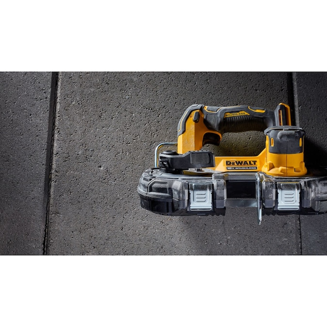 - PERFORM ONE-HANDED AND OVERHEAD CUTS with the bandsaws lightweight build and integrated guard