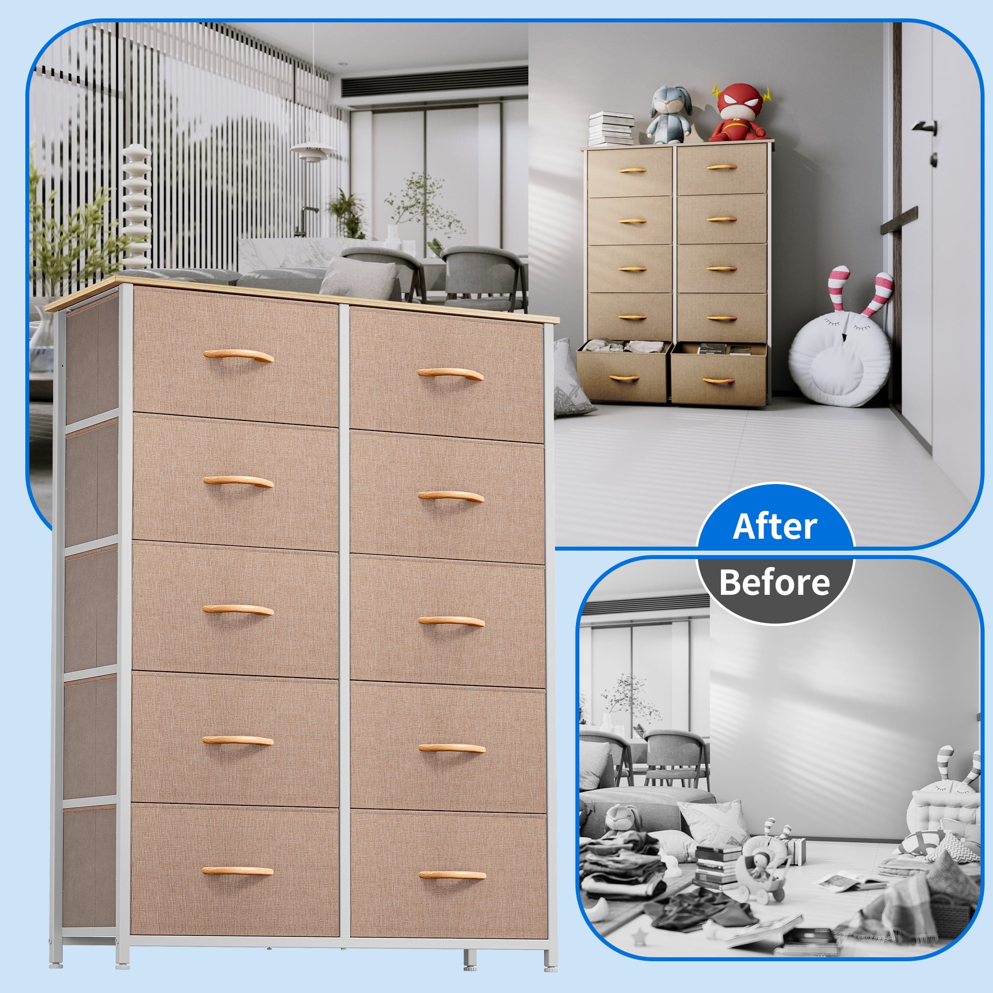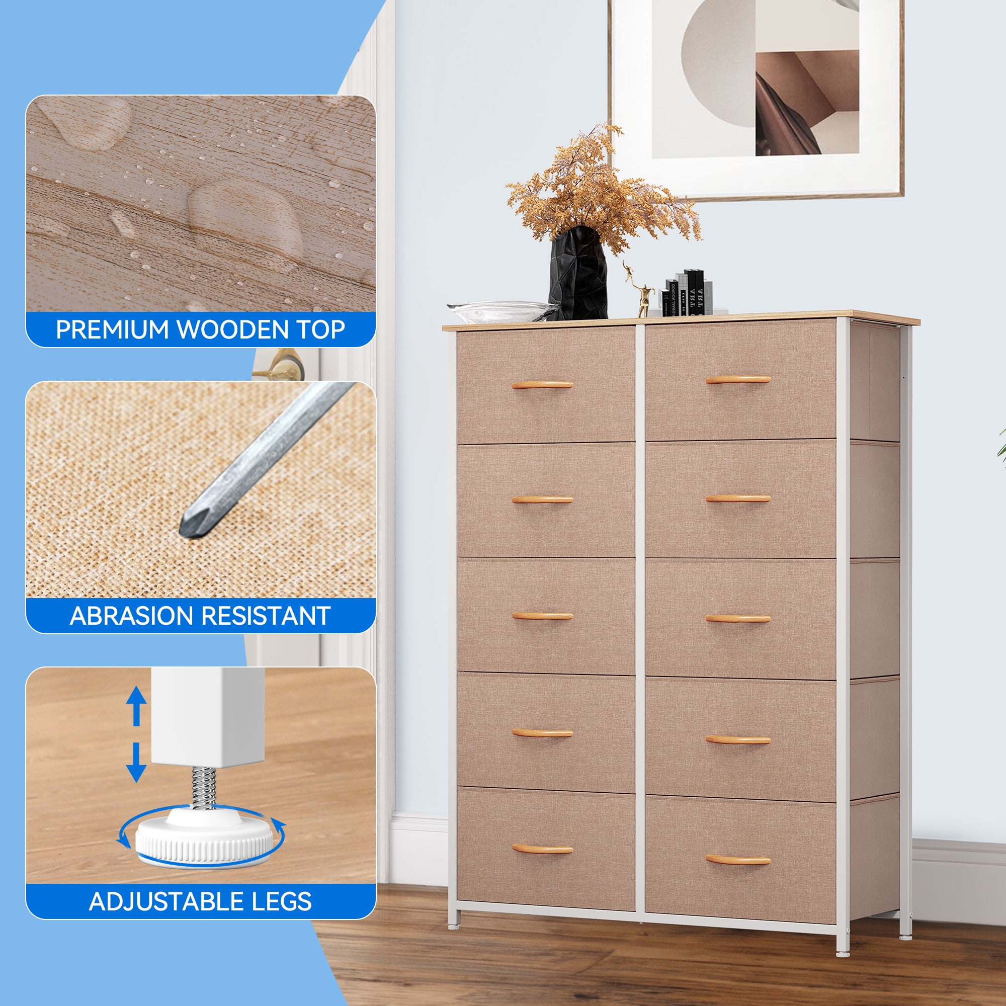 Dextrus 10 Drawers Dresser Fabric Storage Tower Cabinet Bin Storage Organizer for Closets s, Beige