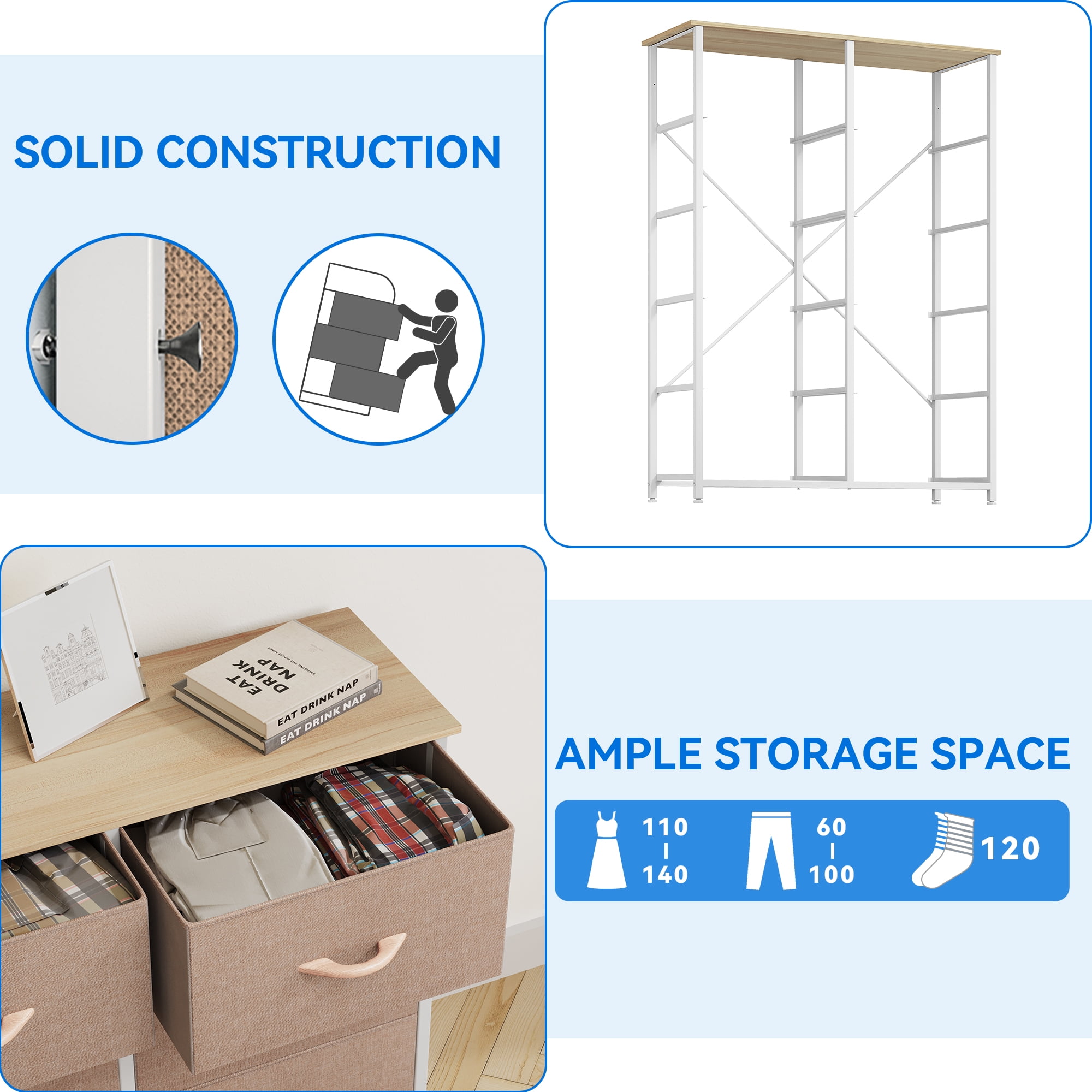 The 10-drawer fabric dresser combines efficient storage function with a modern simple appearance, which is super suitable for family use. The organizer separates and stores all of your wardrobe and linen essentials, and makes it easy to find and grab what you need right away. Ten removable drawers separate and organize clothing and accessories like hats, socks, shoes, scarves, blankets, and more in one convenient place. They offer roomy space for storing out-of-season clothing, shoes, purses, scarves, bedding, linens, and more. Besides, the MDF tabletop could be an eye-catching place to display the flower vase, family photos, and other adornments. The storage chest organizer is compact and lightweight, making it suitable for small spaces and transportation a breeze.