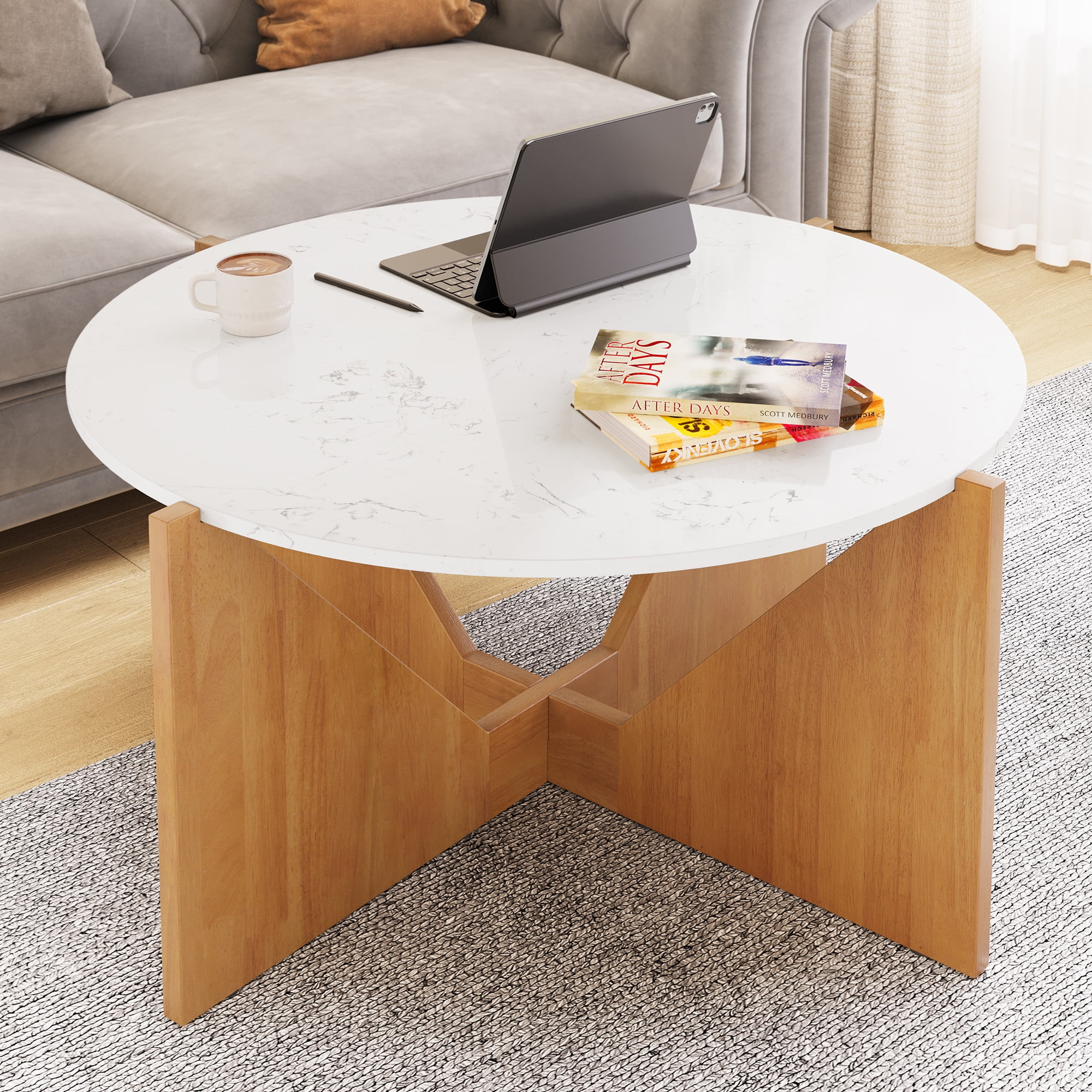 Dextrus 17.5”H Modern Genuine Marble Coffee Table, Ideal for Home Living Room, Office