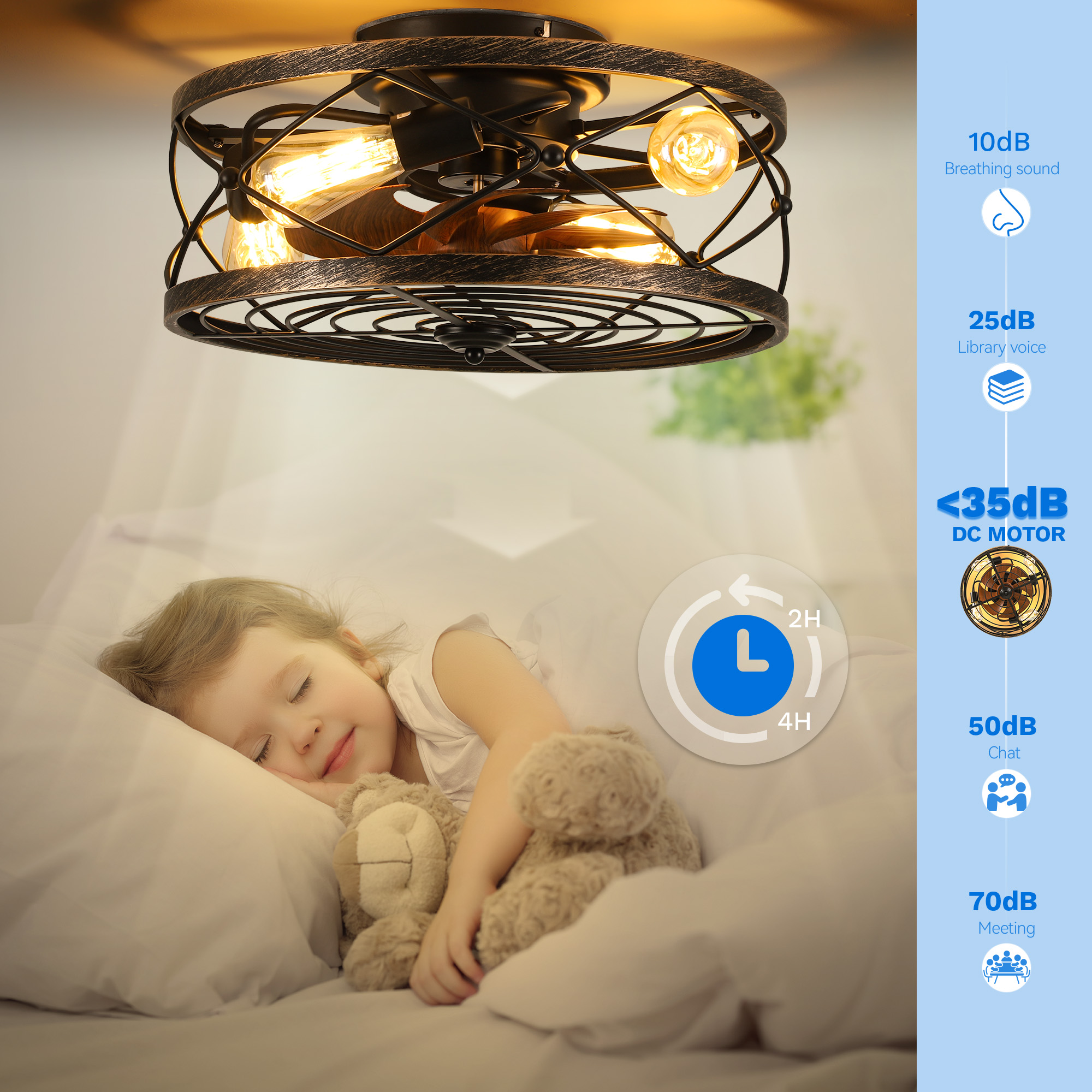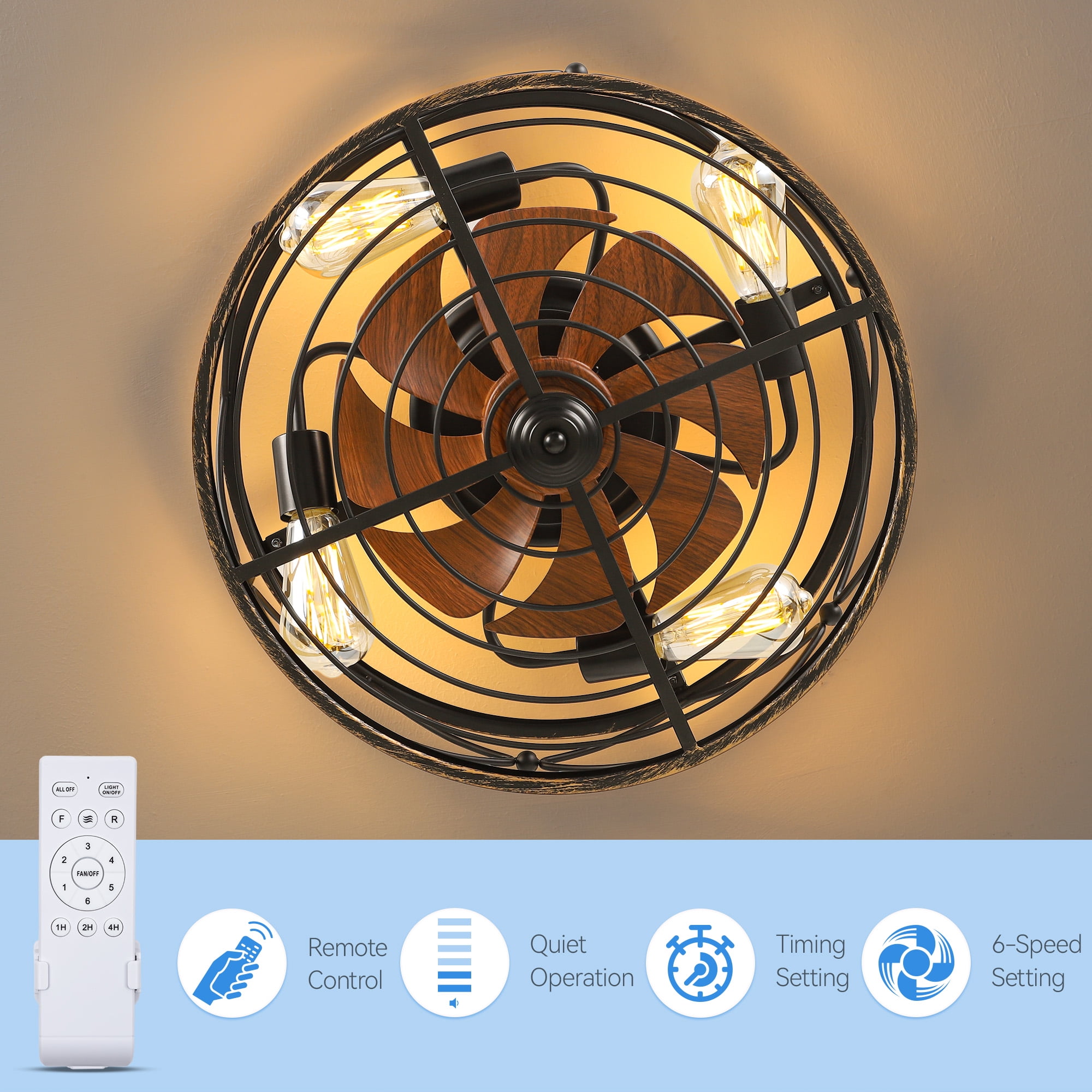 Dextrus 18″ Caged Ceiling Fan with Lights and Remote Control, 6-Speed Flush Mount Ceiling Fan, Low Profile Ceiling Fan for Bedroom, Farmhouse, or Dining Room