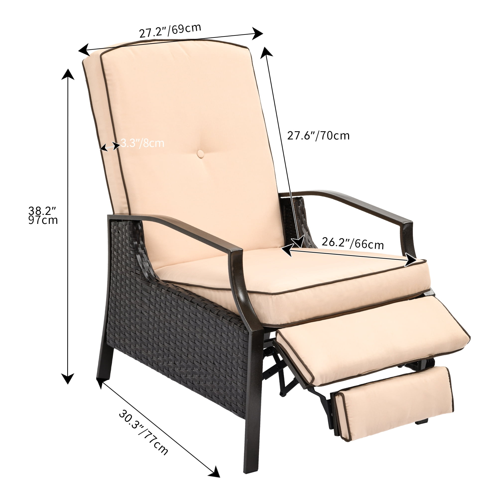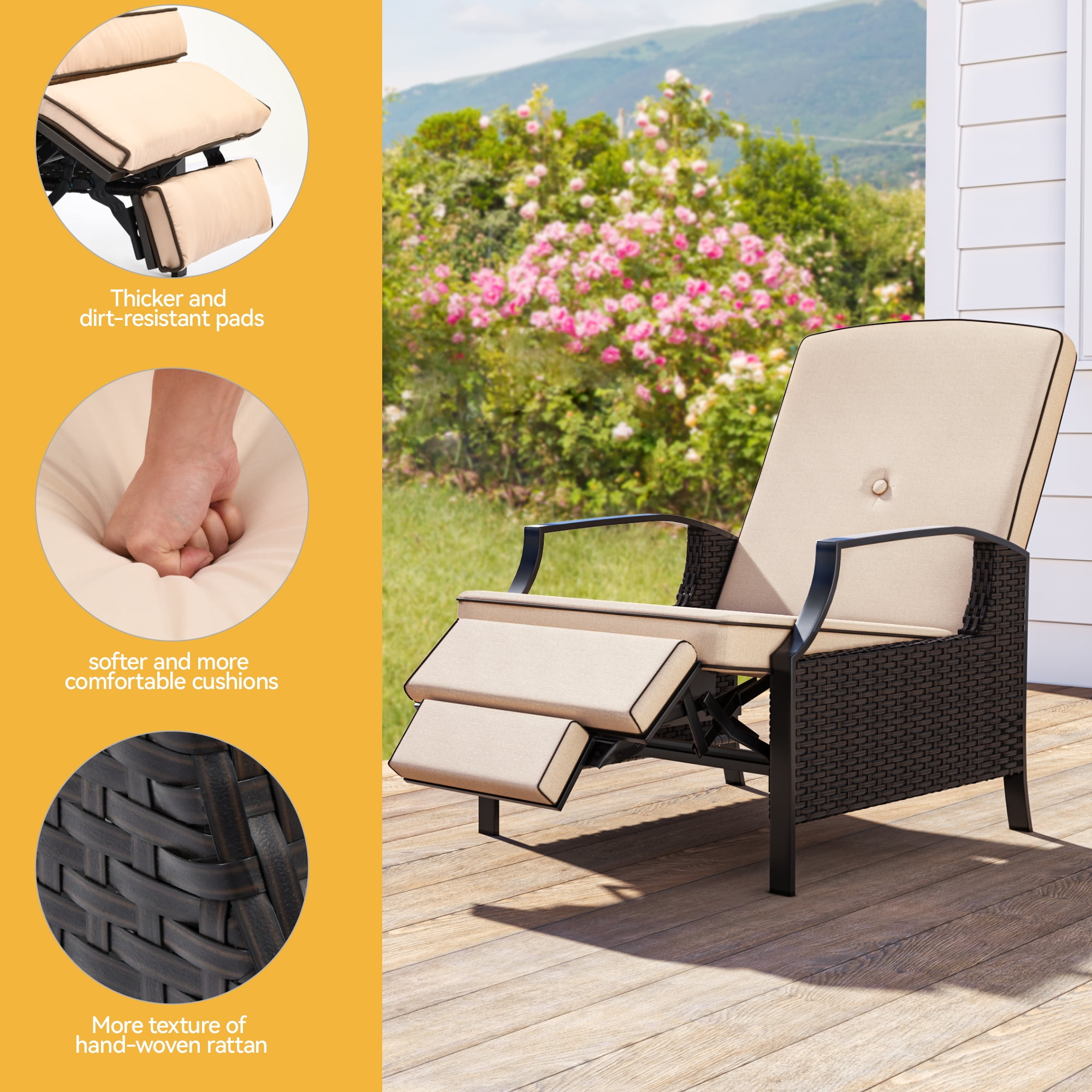 Dextrus 2-Piece Adjustable Wicker Recliner Chairs, Dual-Use Rattan Lounge Chairs with Thick Cushions, Extendable Footrest, Fold-Back Design – Brown+Beige
