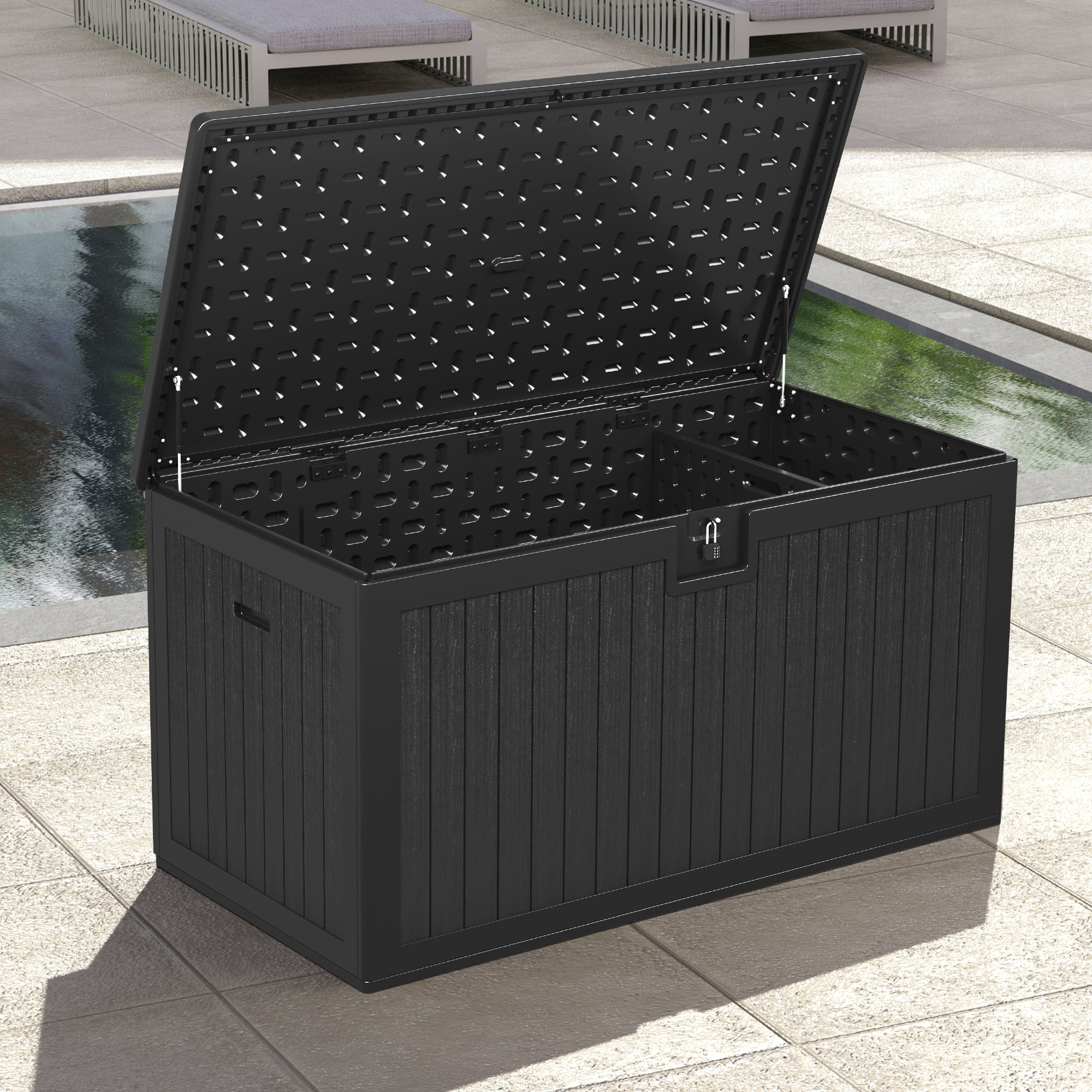 Dextrus 230 Gallon Outdoor Patio Deck Box, Large Double-Wall Storage Box with Divider & Side Handles Backyard, Waterproof&Lockable,Black