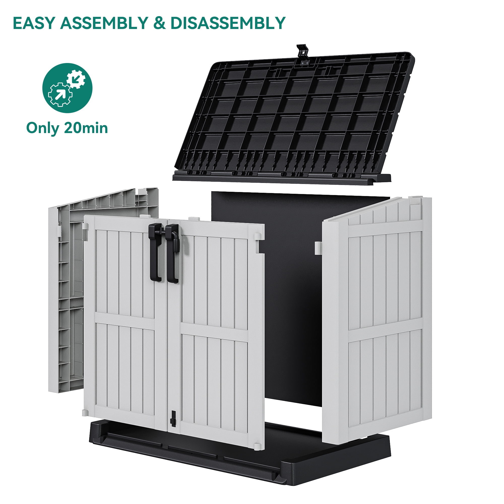 Dextrus 36 cu ft Horizontal Durab Resin Outdoor Storage Shed,Weather Resistant Tool Shed,Waterproof with Lockable Doors & Air Vent for Trash Cans, Garden Tools