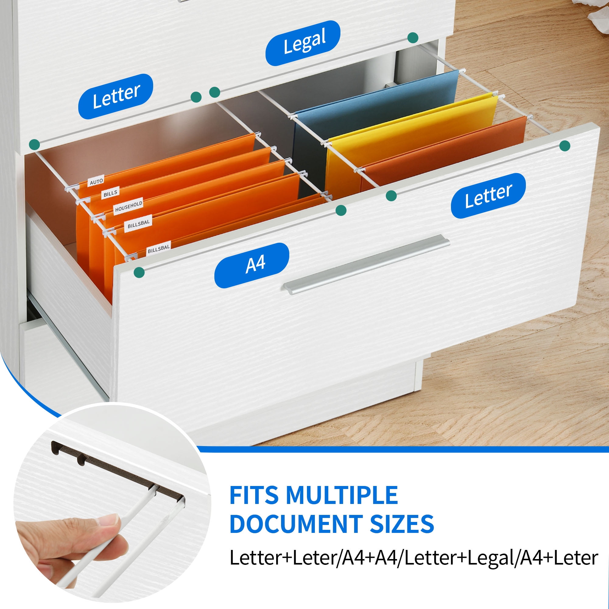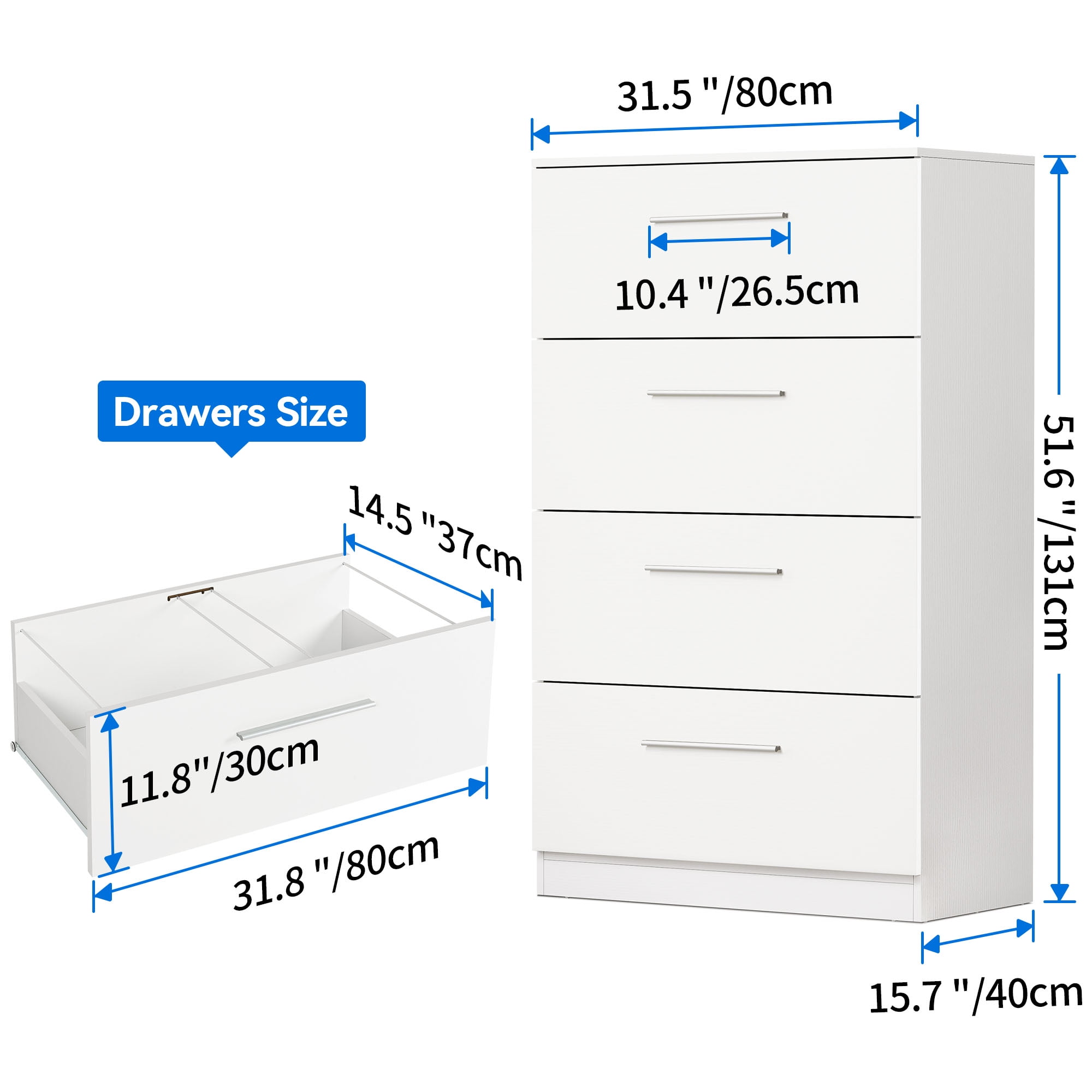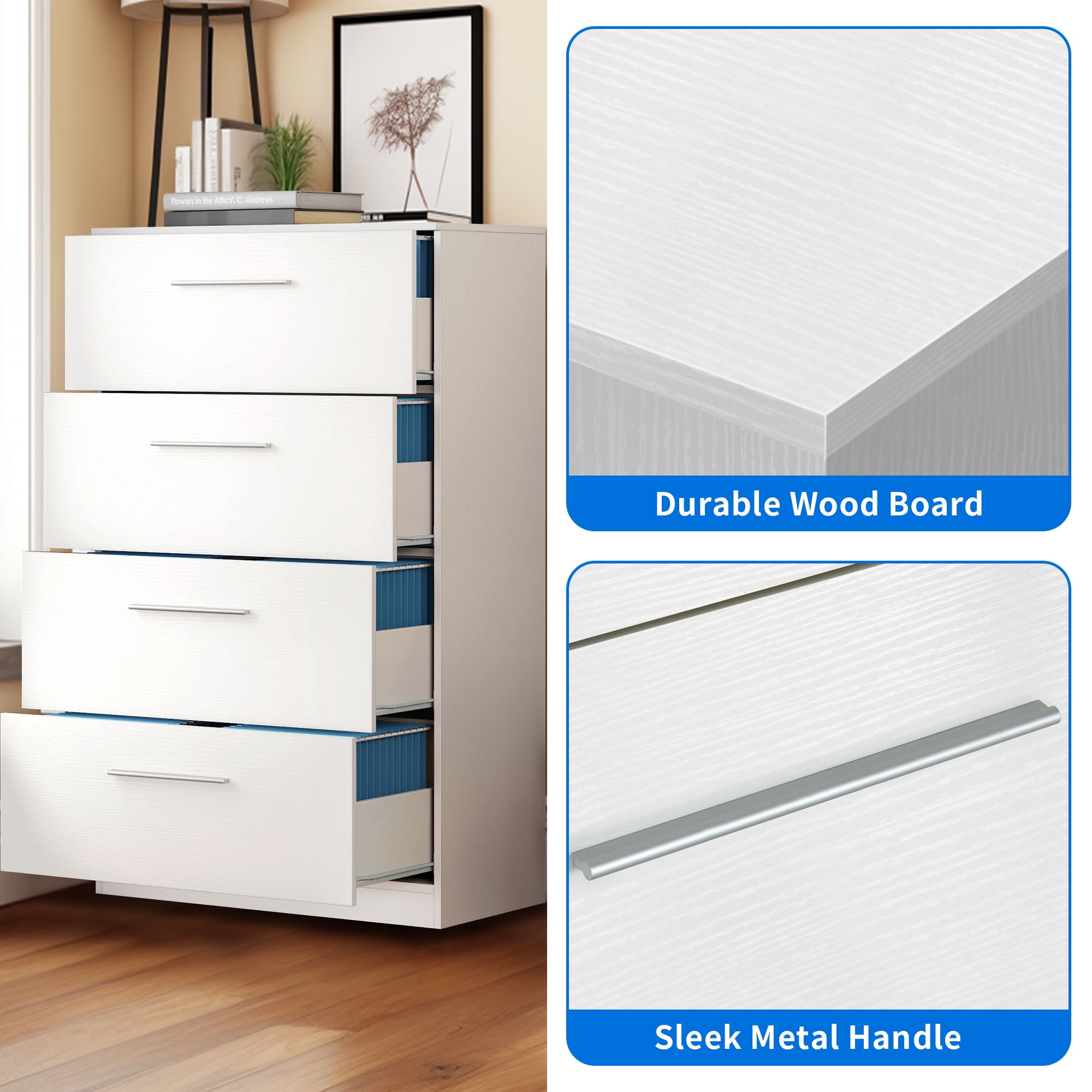 Dextrus 4-Drawer Wood File Cabinet,Deep Vertical Filing Cabinet, Storage File Drawers, White