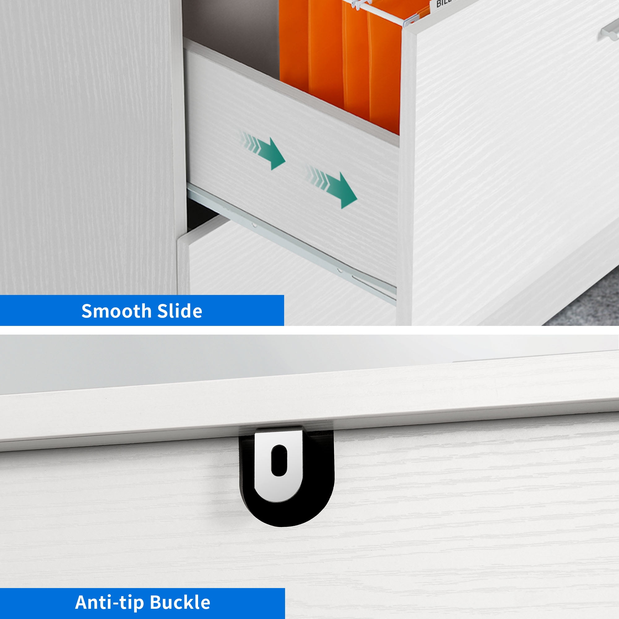 ELEGANT 4-DRAWER CABINET: With its sleek white finish and slim, rectangular design, our cabinet not only works as a practical storage solution but also adds a touch of modern elegance to home or office setting. Ideal for use in the office, study room, bedroom, living room, and more. SMOOTH OPERATION: Each drawer is equipped with two robust ball-bearing slides, ensuring a seamless open and close without any sticking or derailment. The modern metallic handles make accessing or closing effortless while enhancing the overall aesthetic. ROBUST & STABLE BUILD: Unlike thinner metal frame cabinets that are susceptible to dents and rust, this office cabinet is crafted from sturdy wooden boards supporting up to 110lbs. The anti-tip metal buckle allows you to secure it to the wall for further stability. MAXIMIZE SPACE UTILIZATION: You can place one or two cabinets beside your desk, sofa, or bed to optimize floor space and keep items organized and reachable. Alternatively, these multiple cabinets are a savvy solution in your office!