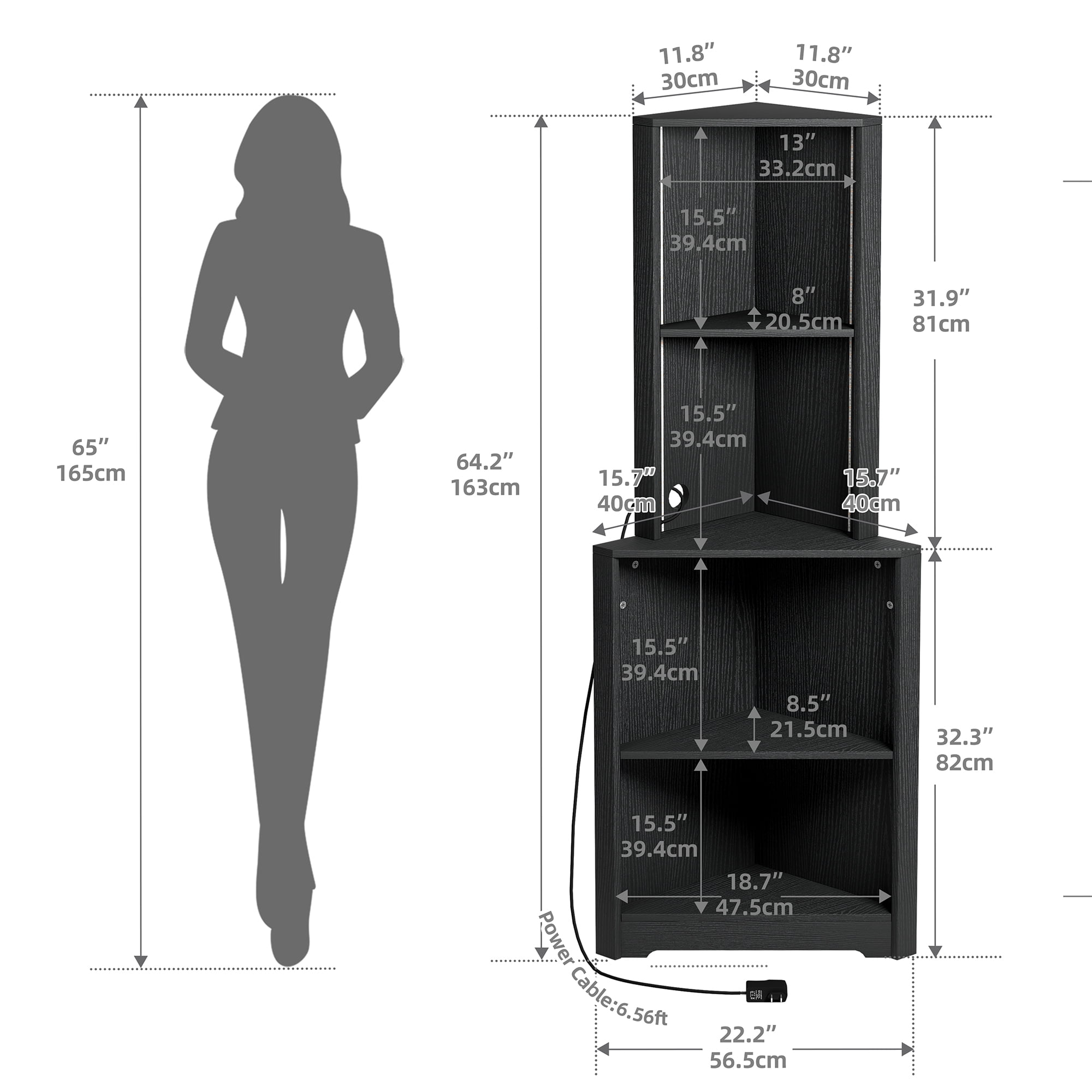 The Dextrus Corner Shelf Stand with LED Light is a 5-tier corner bookshelf and bookcase made of wood, perfect for living rooms, home offices, or kitchens. This open 4 corner cabinet display storage rack offers style and stability with step-style shelves that add extra storage for books, plants, and decor. Its right angle design maximizes space utilization without occupying much area, making it an ideal solution for limited spaces. Product information: Room Type: Office, Bedroom, Living Room, Study Room, Playroom Number of Shelves:5 Special Feature: With LED light Product Dimensions: 15.7″D x 22.2″W x 64.2″H Brand: Dextrus Assembly Required : Yes Model Name: Corner shelf Installation Type: Freestanding Package included:1* Corner Bookshelf
