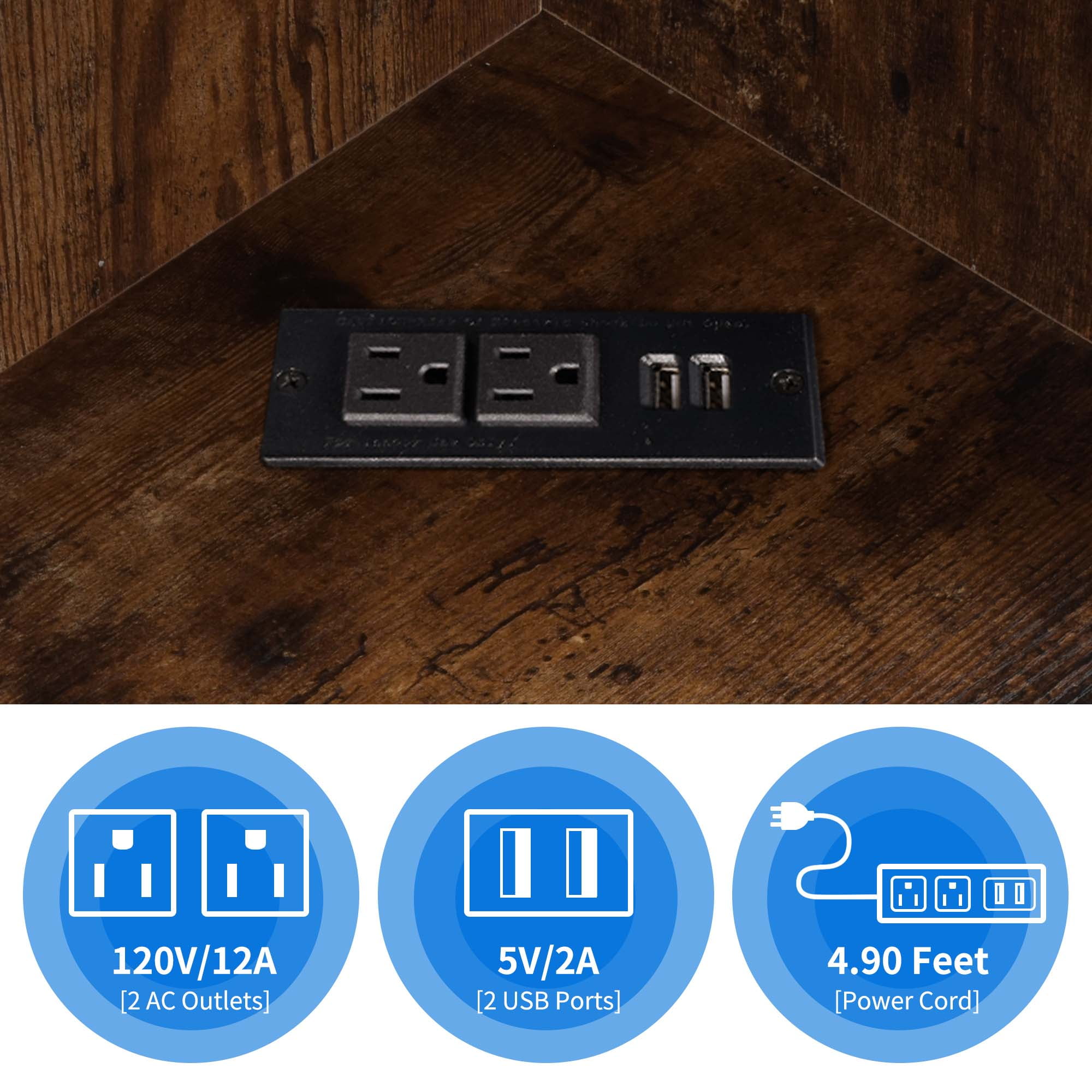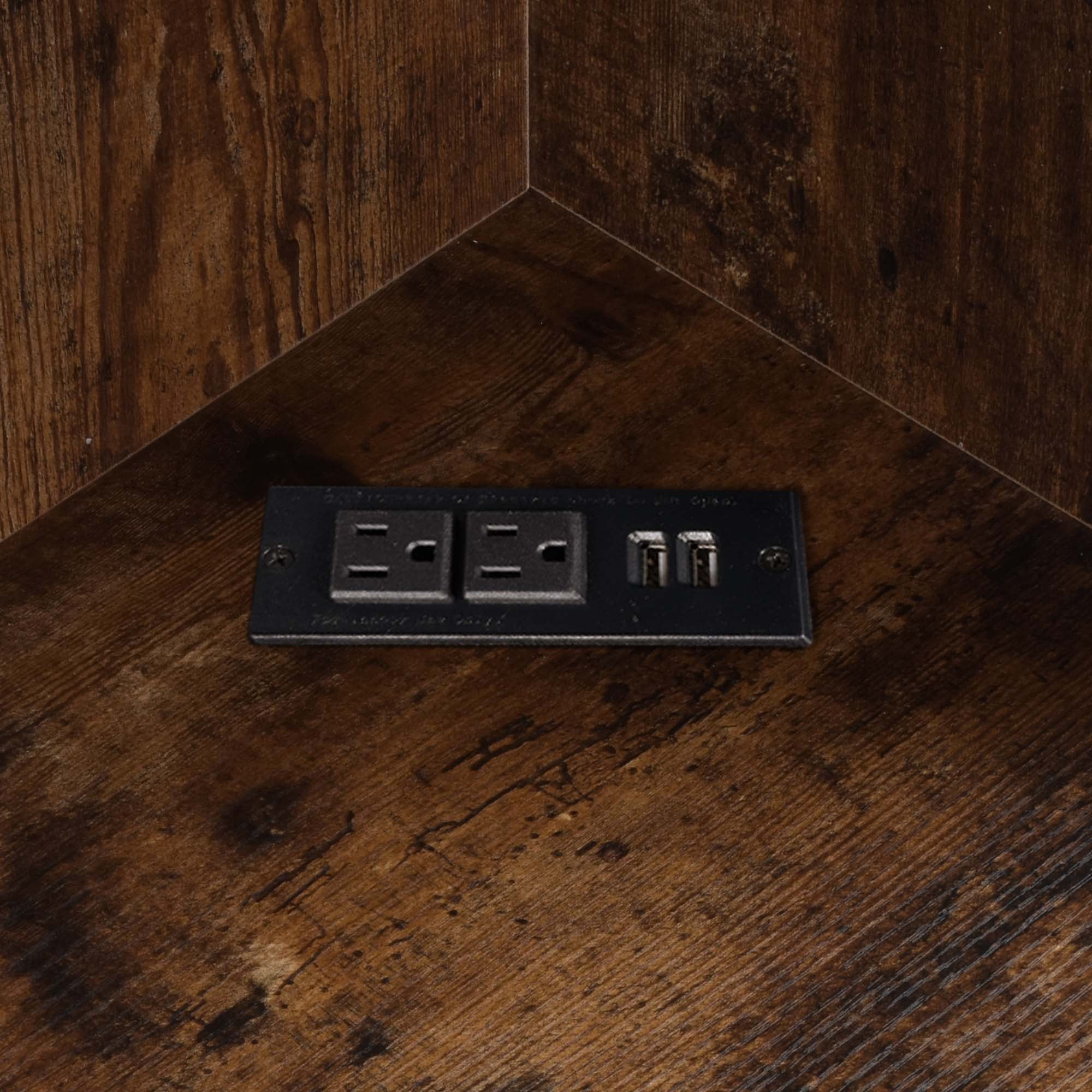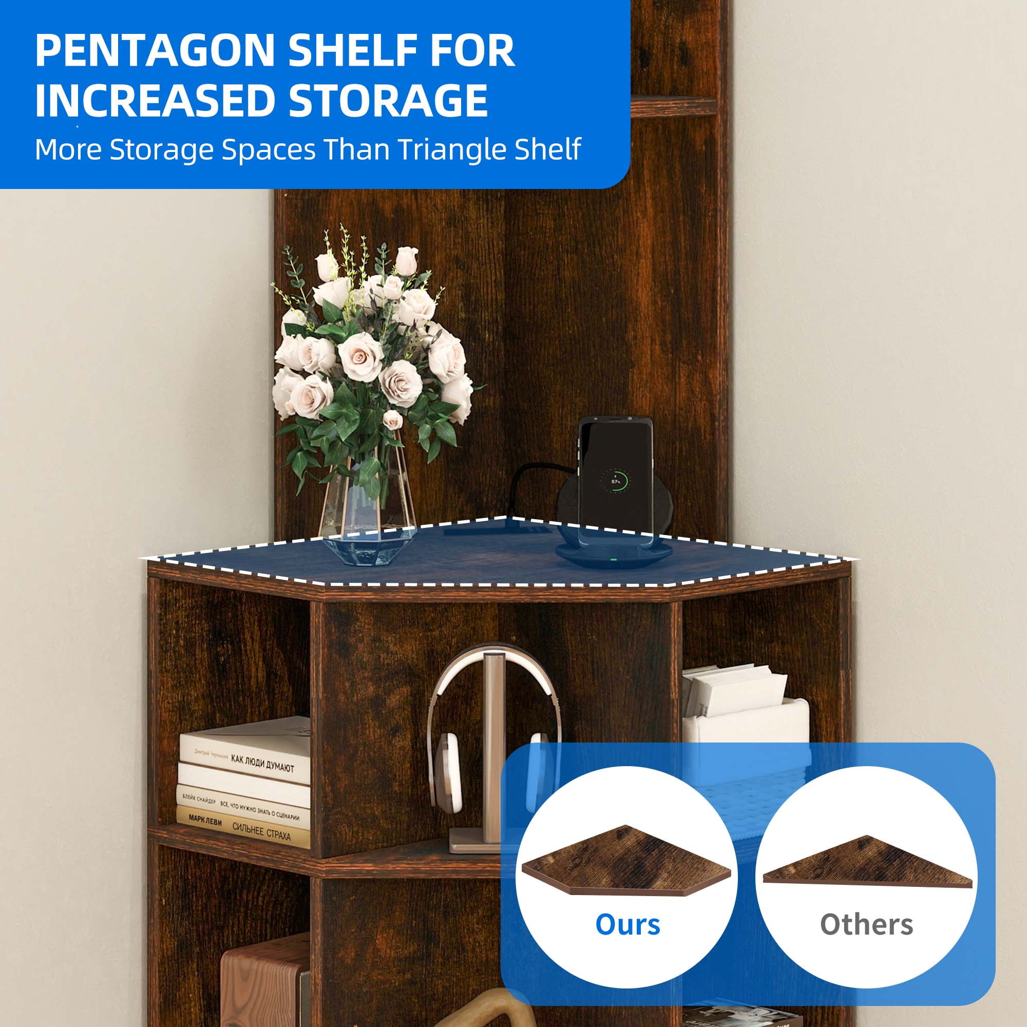 Dextrus 5-Tier Corner Shelf with USB Ports and Outlets, Corner Bookshelf Bookcase Display Shelves Rack Storage Corner Bar Cabinet for Living Room, Home Office, Kitchen, Brown