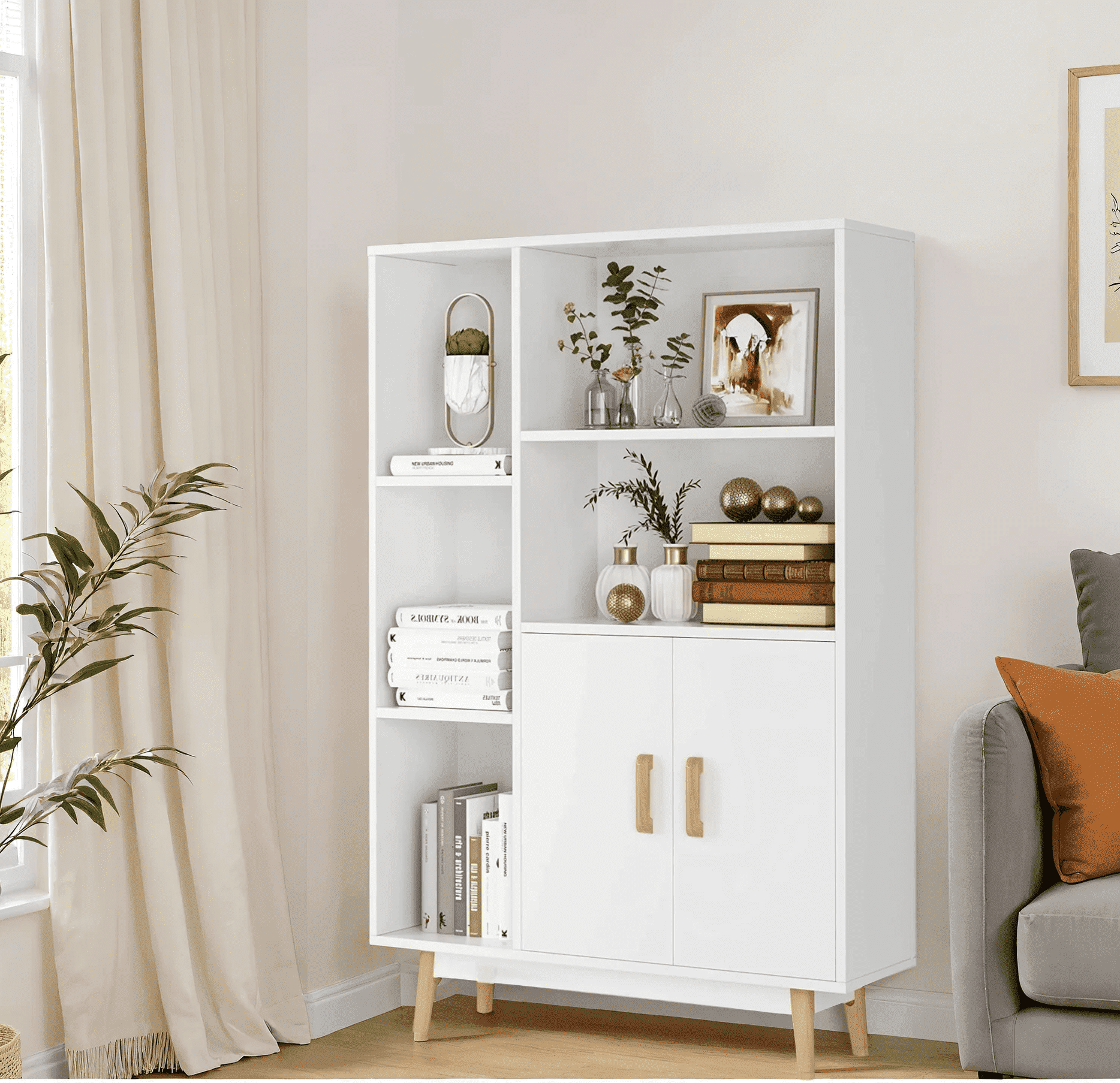 THE TRENDY LAYOUT: This stylish bookcase combines modern with streamlined minimalism. Its basic design and exquisite appearance make it a stylish and practical fit in all spaces. VERSATILE ITEM: You may showcase your displays in all directions thanks to the ample storage space provided by the open shelves and sturdy frame. Perfect for arranging books, pictures of the family, houseplants, CDs, decorations, and more. DURABLE & STURDY: Built from strong boards and a black-coated wrought iron frame with a matte finish. Constant stability is provided by specially crafted metal sidebars with an X-shaped rod at the back. EASY ASSEMBLY: For improved stability and fewer unexpected accidents, please put the anti-tilting kit on the wall. All required supplies, and illustrative instructions will be packed. The entire installation may be completed swiftly and easily. VARIABLE-ZONE STORAGE: Little room is needed for this useful bookcase. It can satisfy your storage needs since it can be used in living room, bedroom, study, entry, hallway, office, etc. as a display shelf for plants as well as a bookshelf. 1 x Instruction Manual