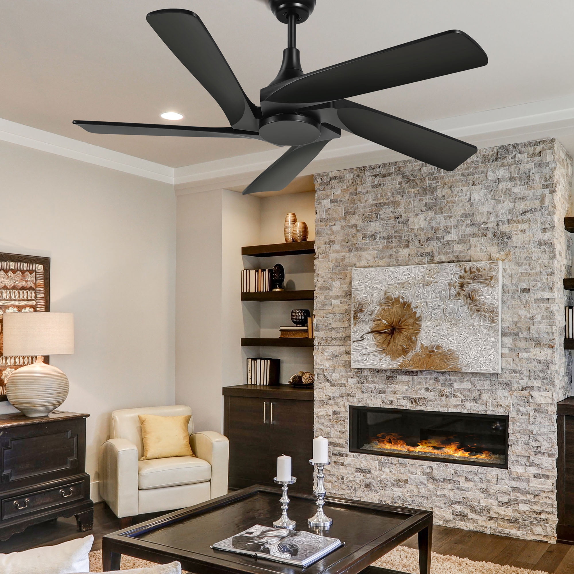 Dextrus 52″ Black Ceiling Fan without light, 5 Blades Modern Ceiling Fan with Remote for Indoor Outdoor