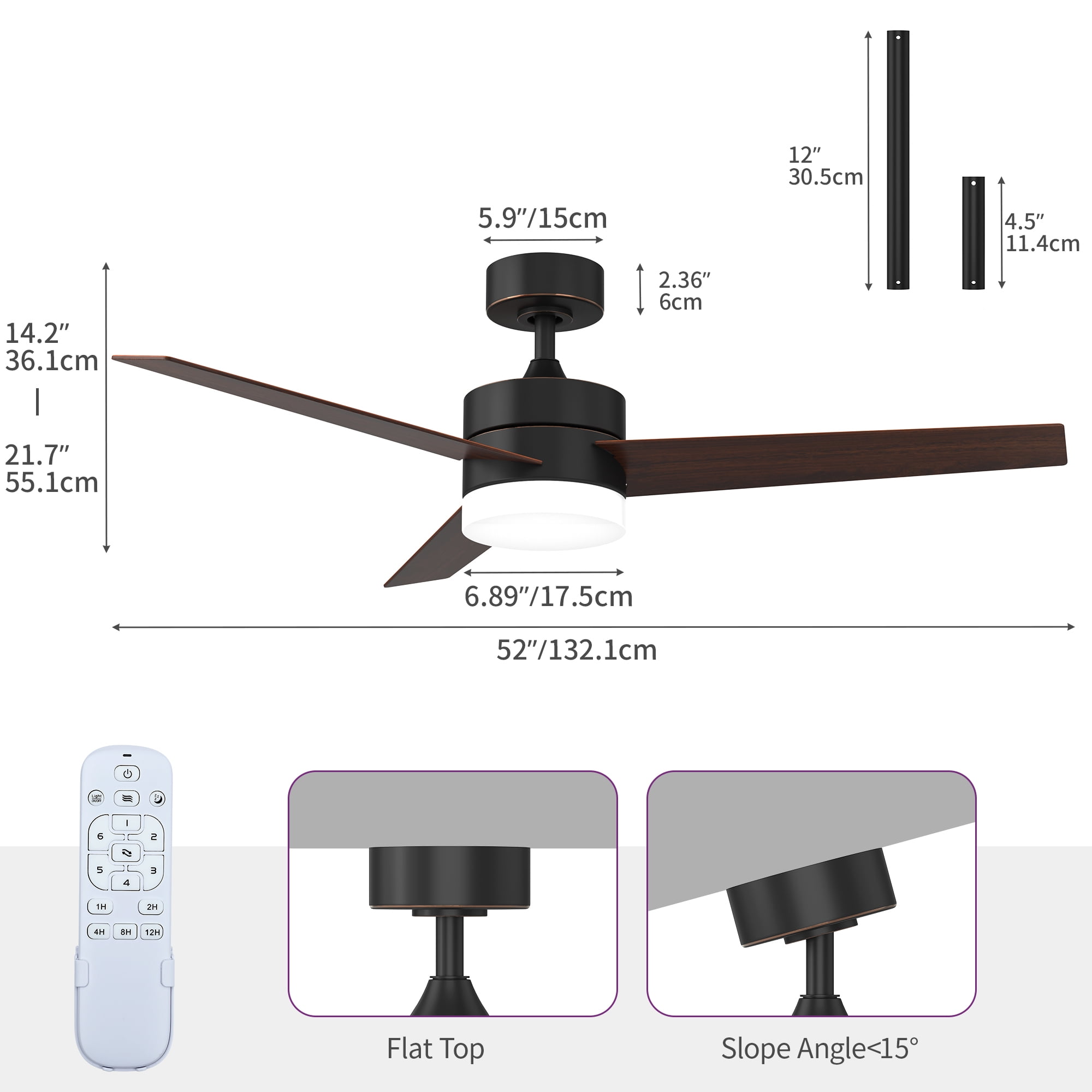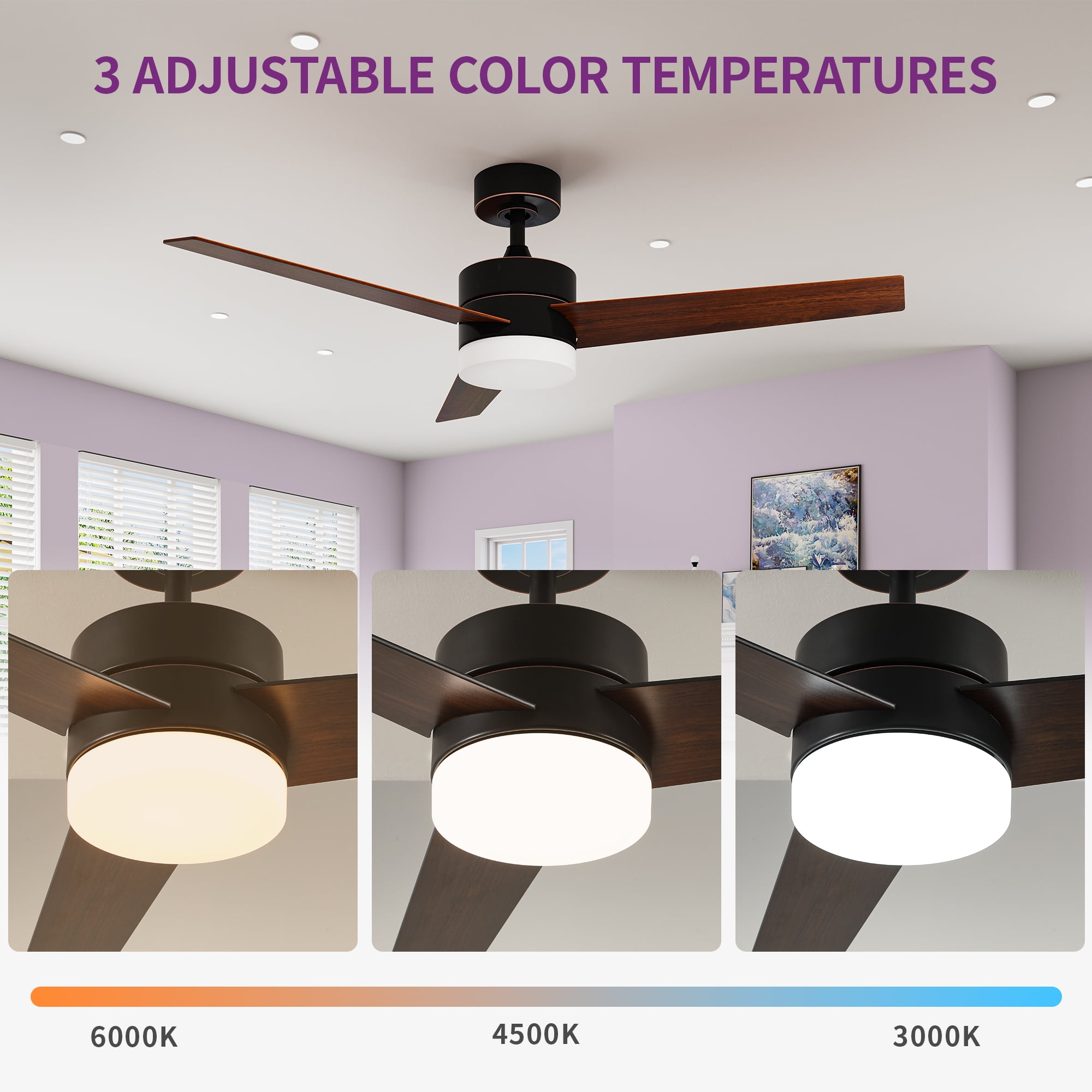 Dextrus 52″ Modern Ceiling Fan with LED Light & Dimmable Remote, Reversible DC Motor, Walnut