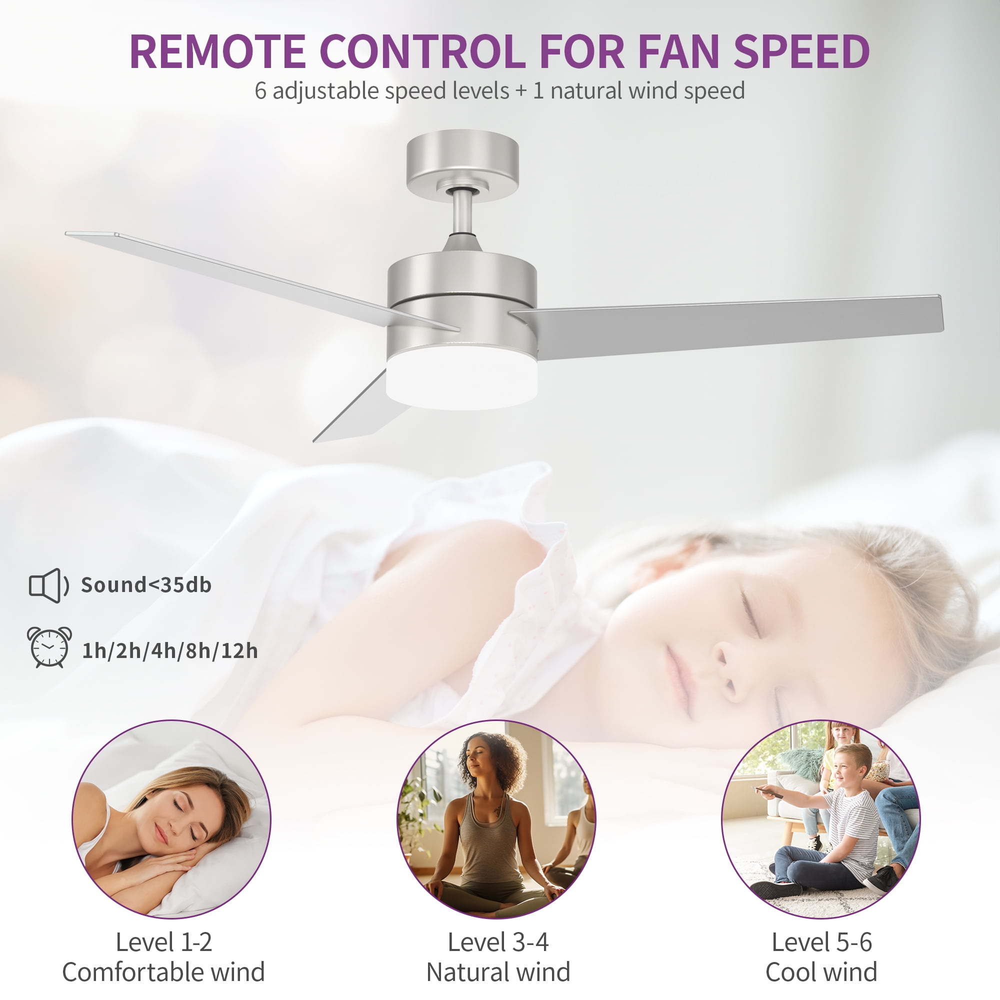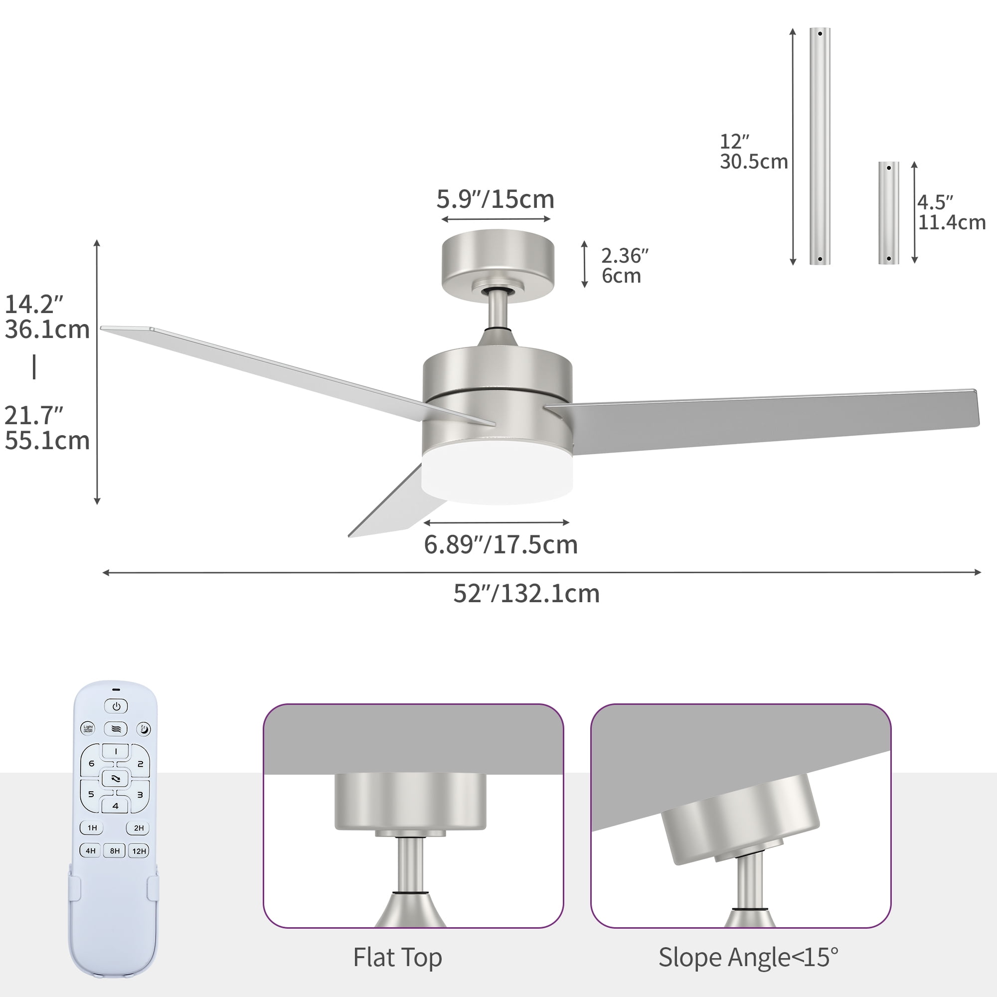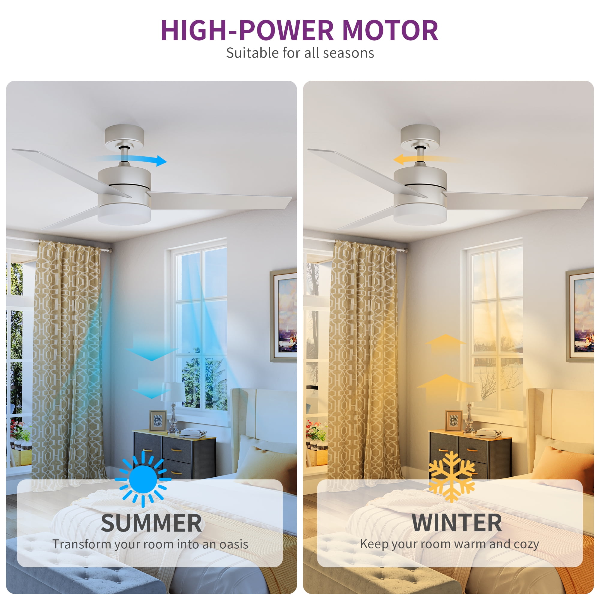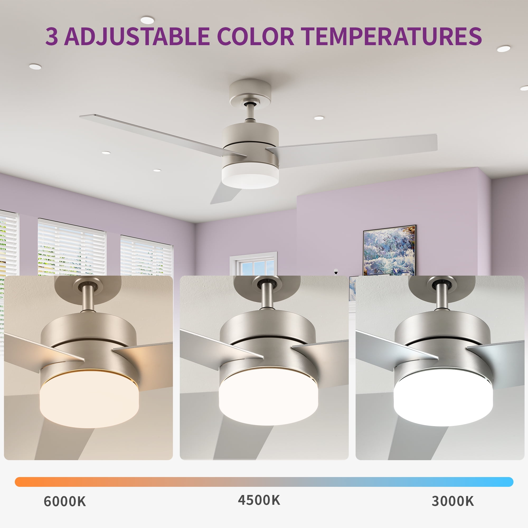 DEXTRUS 52” Silver Modern LED Flush Living Room Reversible Ceiling Fan with Light