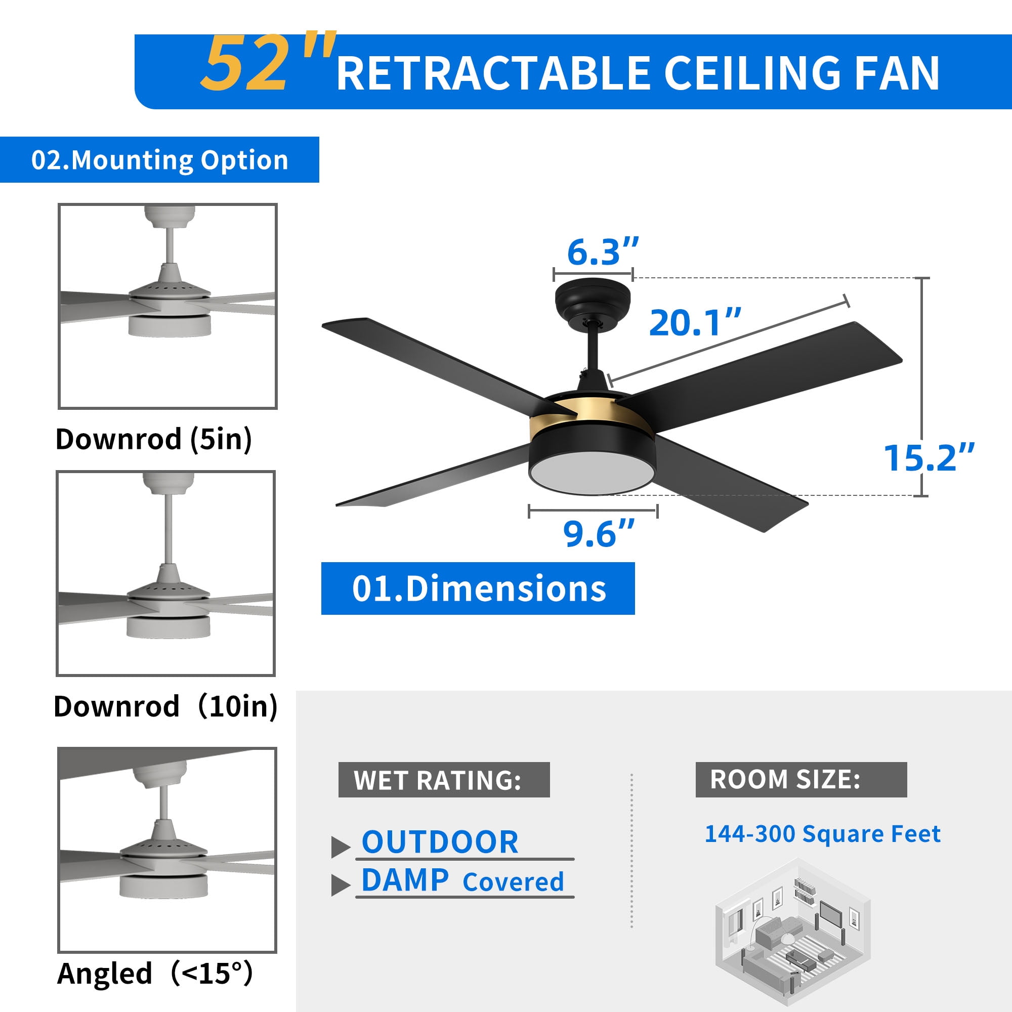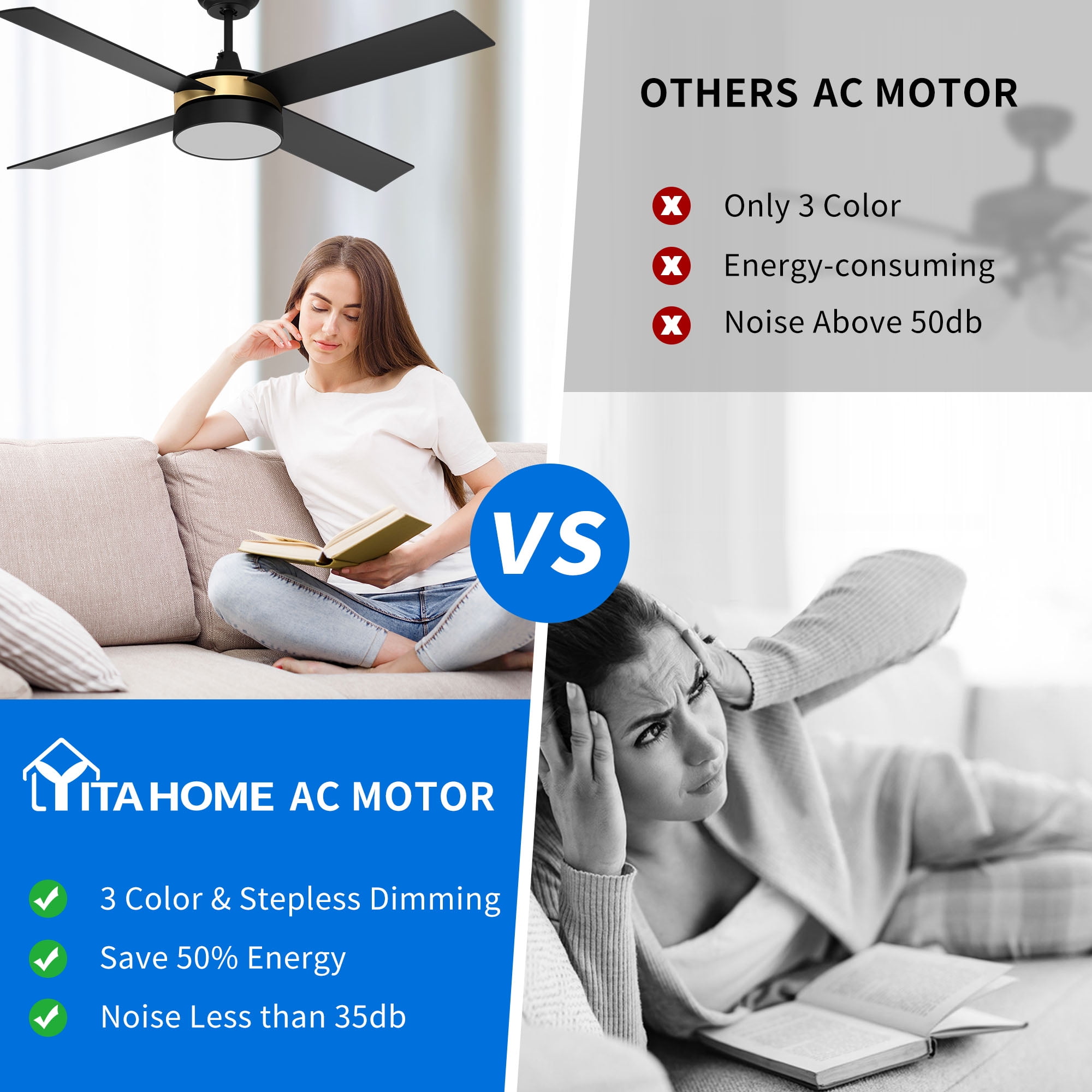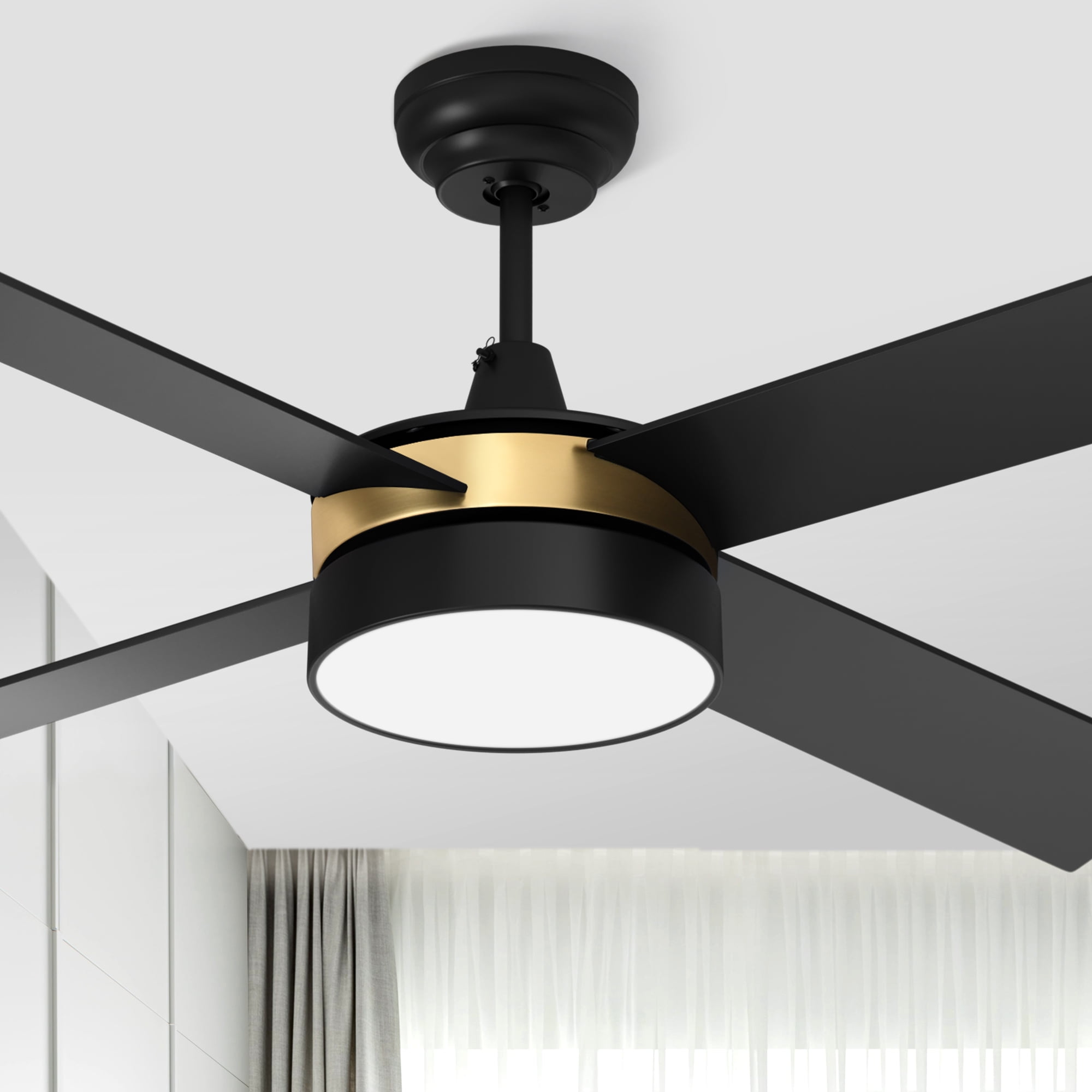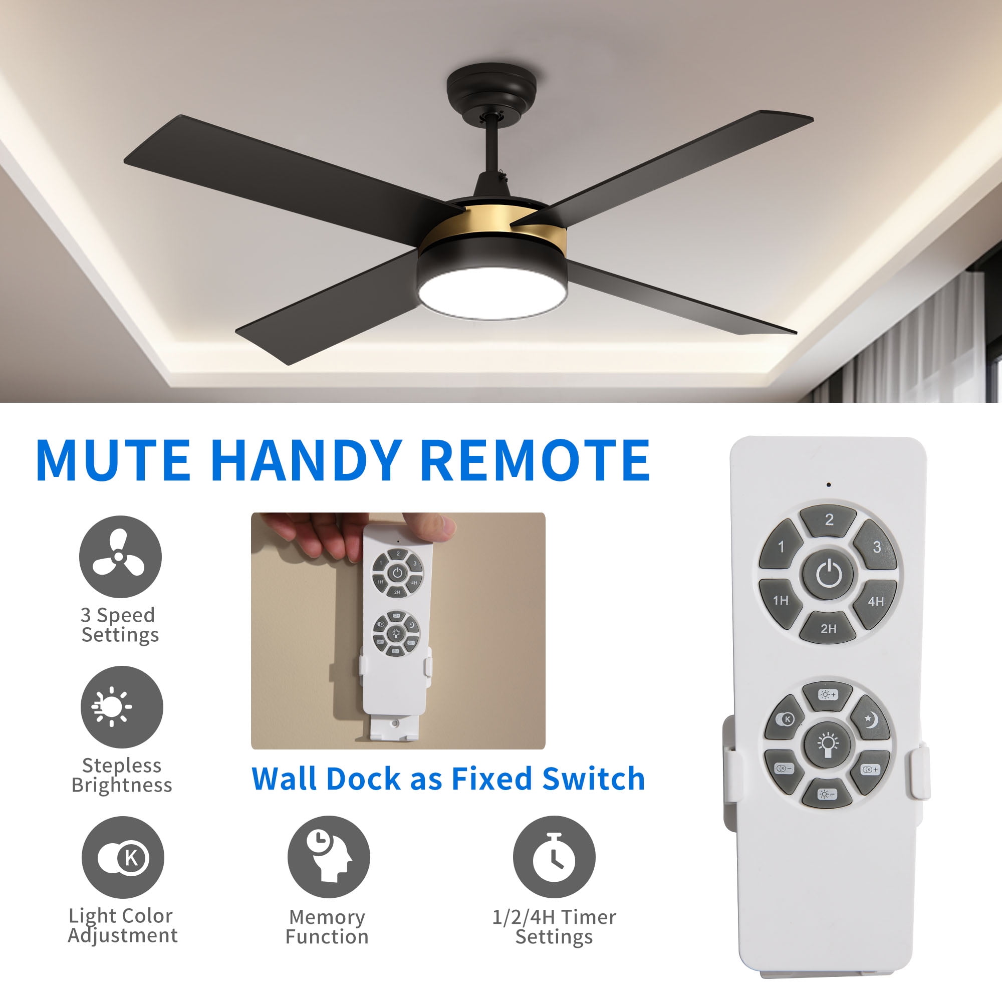 Dextrus 52in Ceiling Fan with Light and Remote, 3 Colors Light Changing, 3 Speed, 4 Blades,Reversible Airflow for Outdoor/Indoor, Black & Gold