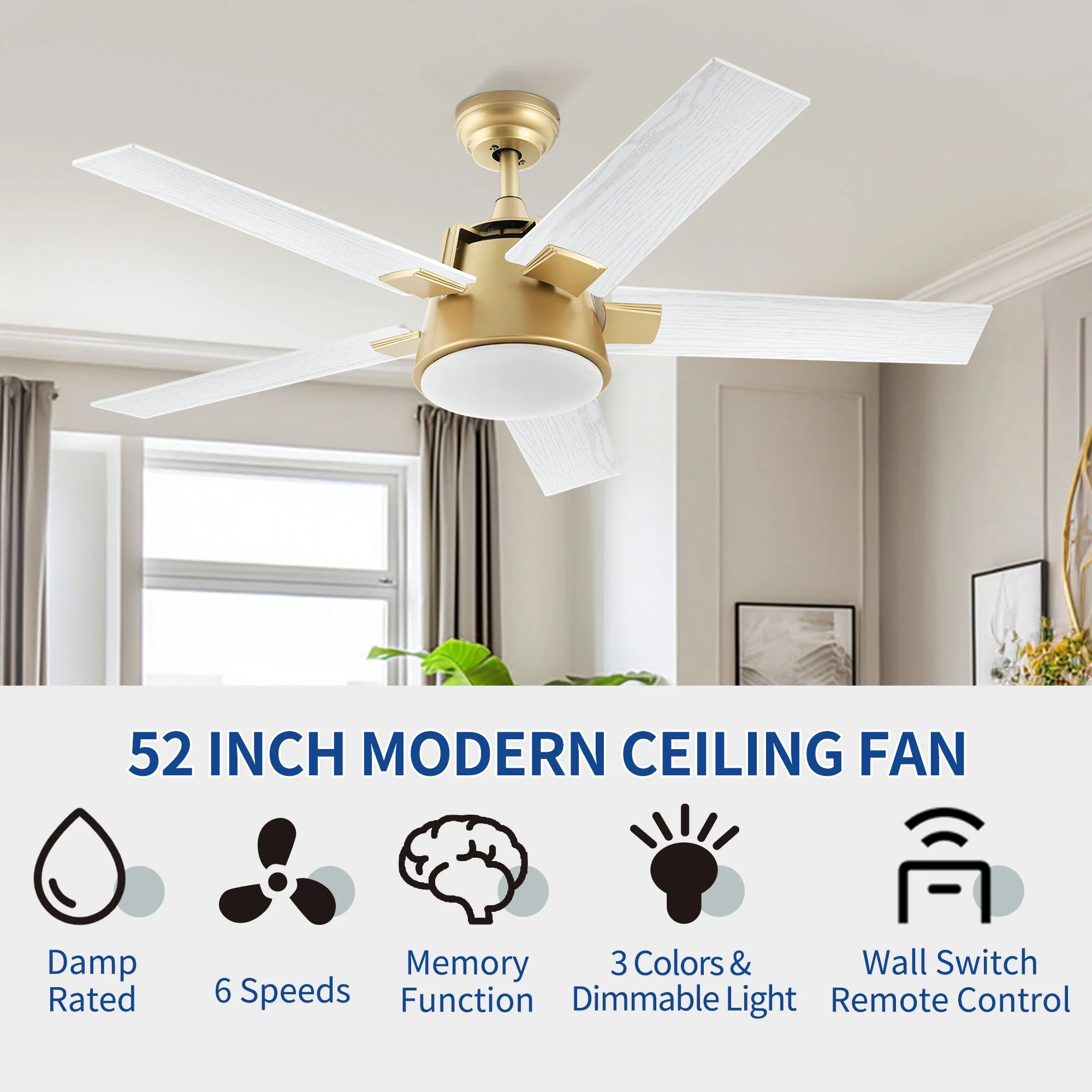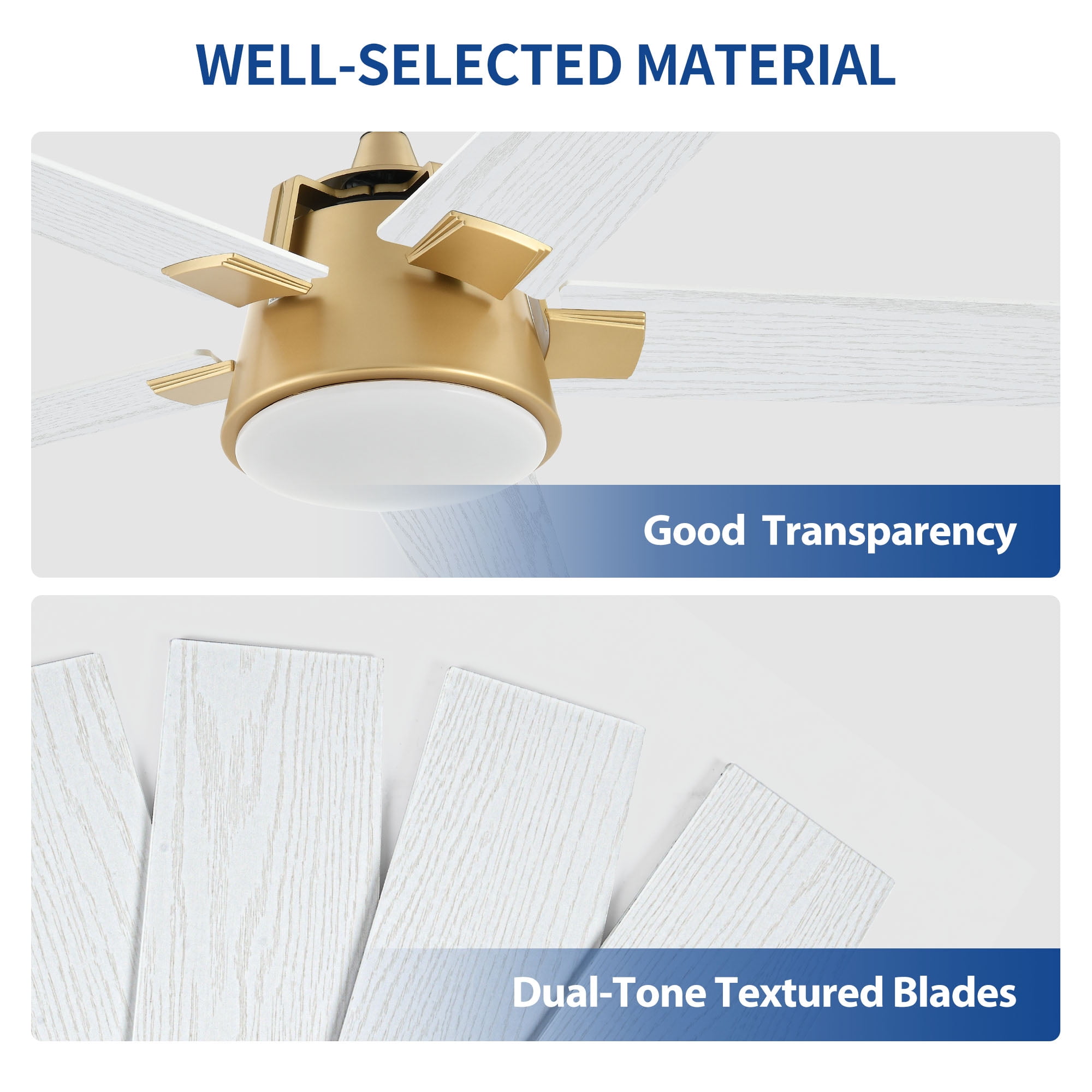 DEXTRUS 52in Farmhouse Ceiling Fans with Light and Remote with 5 Blades, 6 Speed – White