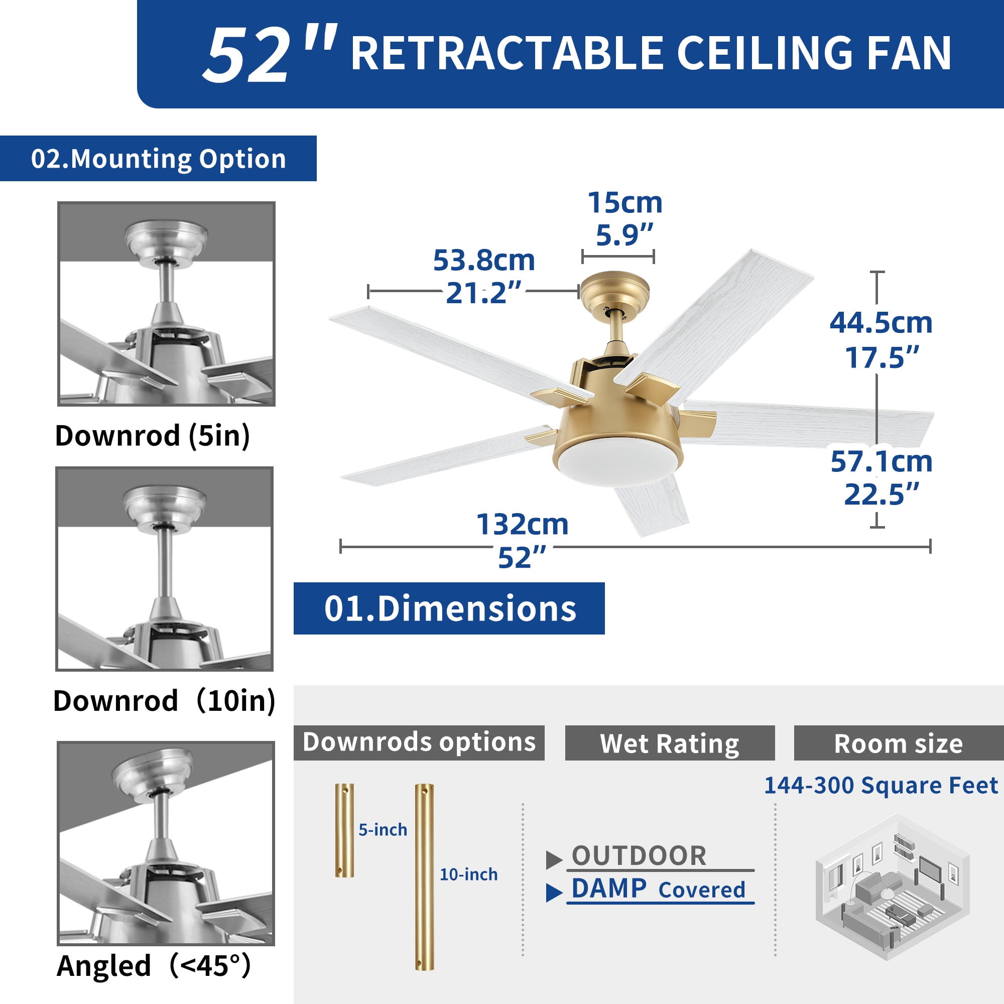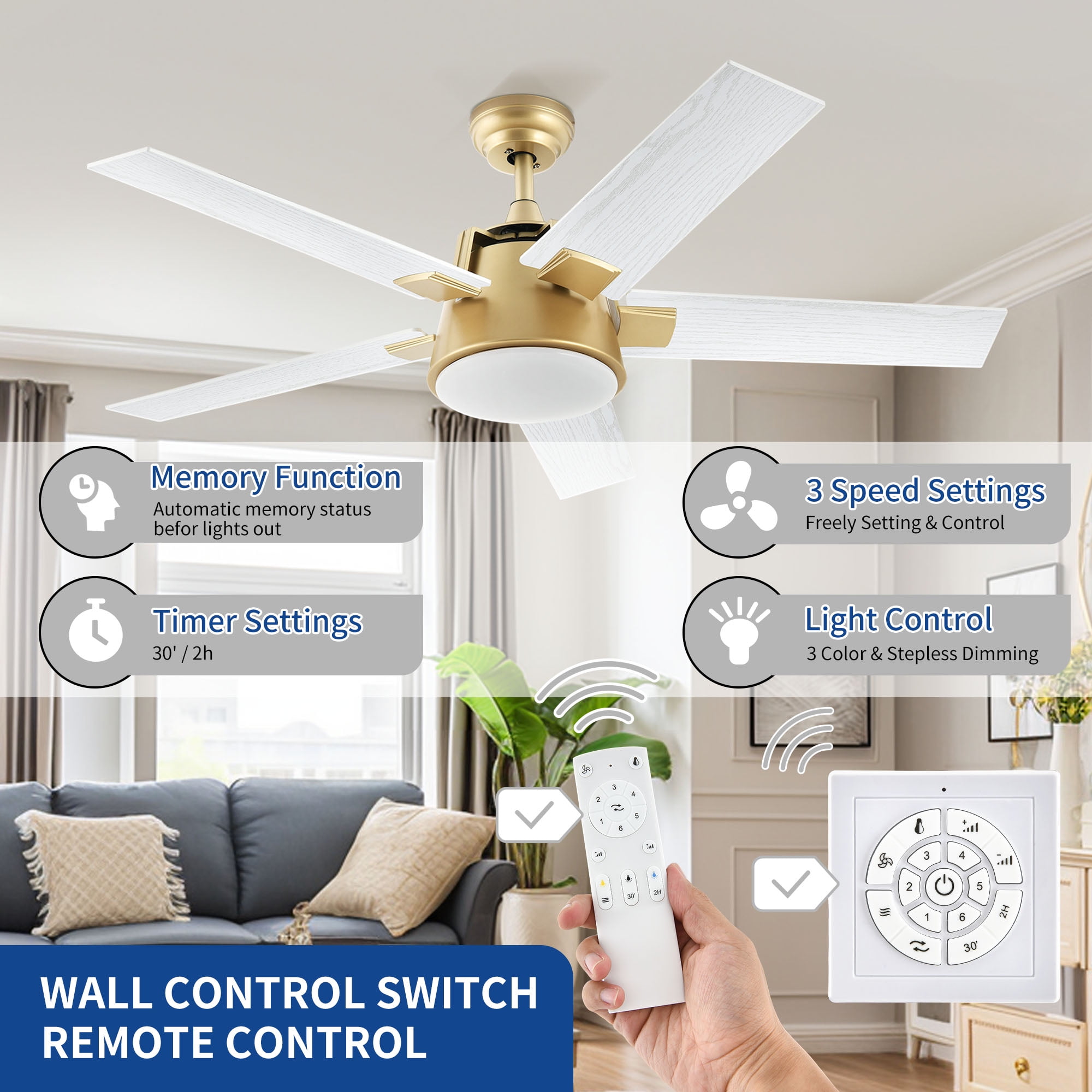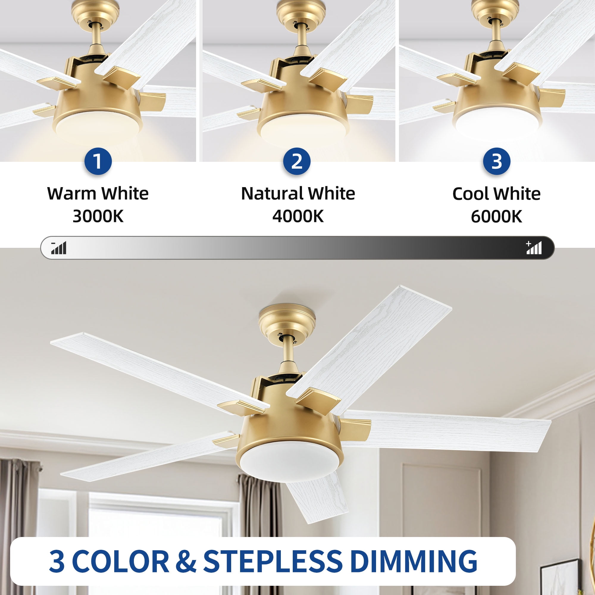 MODERN LED BLACK CEILING FAN: Elevate your home decor, featuring 5 water resistance blades and a durable DC motor. Suitable for indoor or covered outdoor spaces like patios, bedrooms, living rooms, industrial areas, porches, garages, and more DIMMABLE COLOR & MEMORY FUNCTION: The integrated 48W LED light that features 3000K warm, 4500K natural & 6000K cool white lights with step-less dimmable function, create the perfect ambiance for any occasion with ease. And a smart memory function that remembers your last settings QUITE DC MOTOR: Compared to traditional AC motors, the DC motor of the lighting & ceiling fans that saves up to 50% energy and boasts 6 speeds to choose, With noise levels lower than 35dB, it creates a peaceful environment for your home, to enjoy reading, working or an unfettered sleep REVERSIBLE AIRFLOW: Reversible switch allows you to change the direction of rotation so that cool air or warm air is distributed evenly throughout the house all year round (Tap the reversible button starts in about 5 seconds) HANDY REMOTE & WALL SWITCH: There are two switch control ways for your option, which no annoying beep allows you to operate remotely to turn the fan on and off, change the light, etc. and the wall switch allows you to no longer worry about the loss of the remote to fail to control EASY ASSEMBLY: Comes with 5in and 10in hanging rod so that this fan light can be downrod or angled mounted(max 15°). Also, pre-install wire clips, instruction, balance kit and complete accessories are all included for easy wire connection and installation, no wobbling worries!