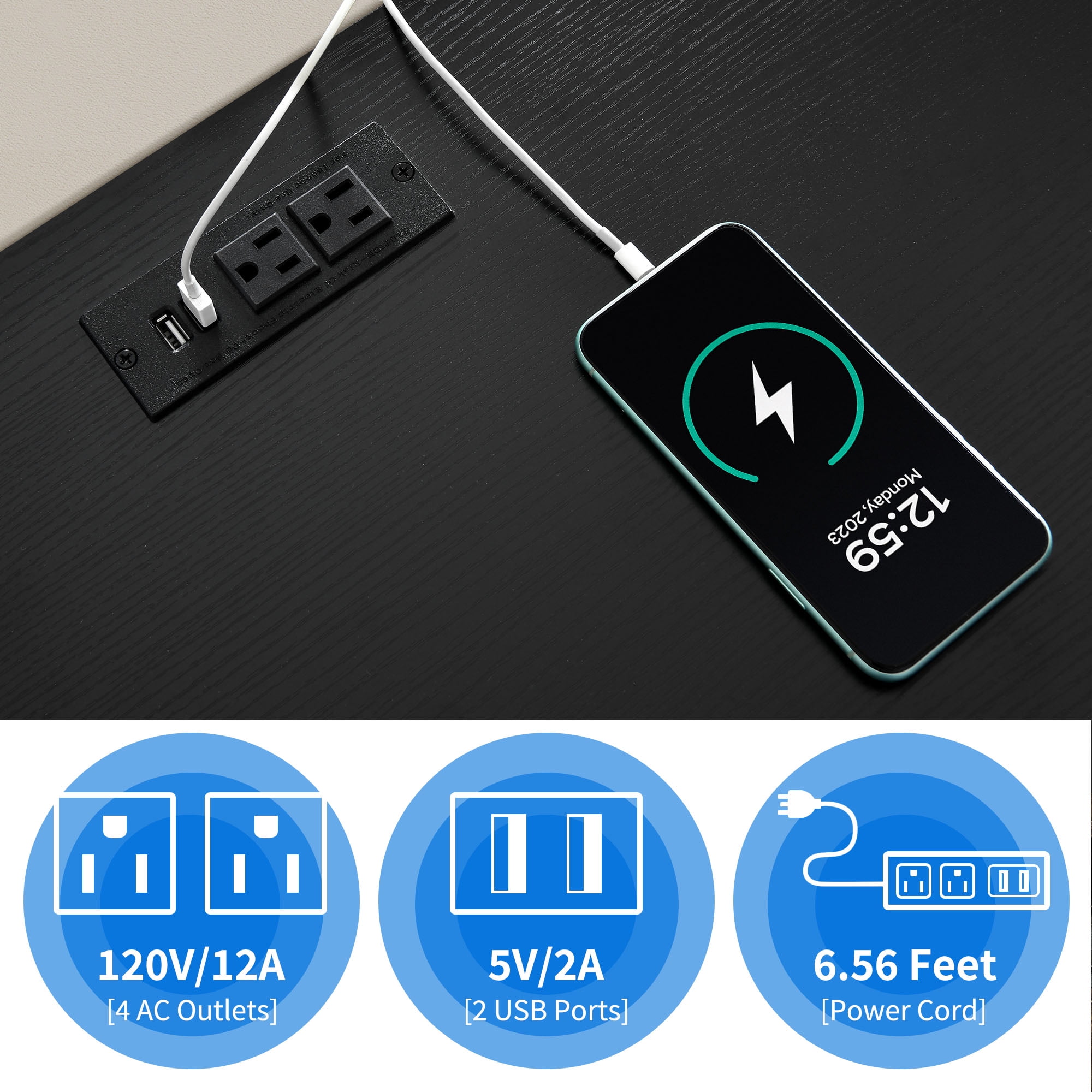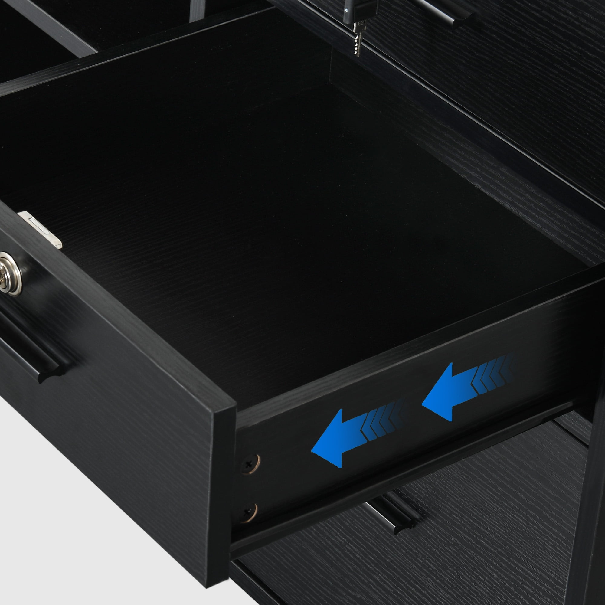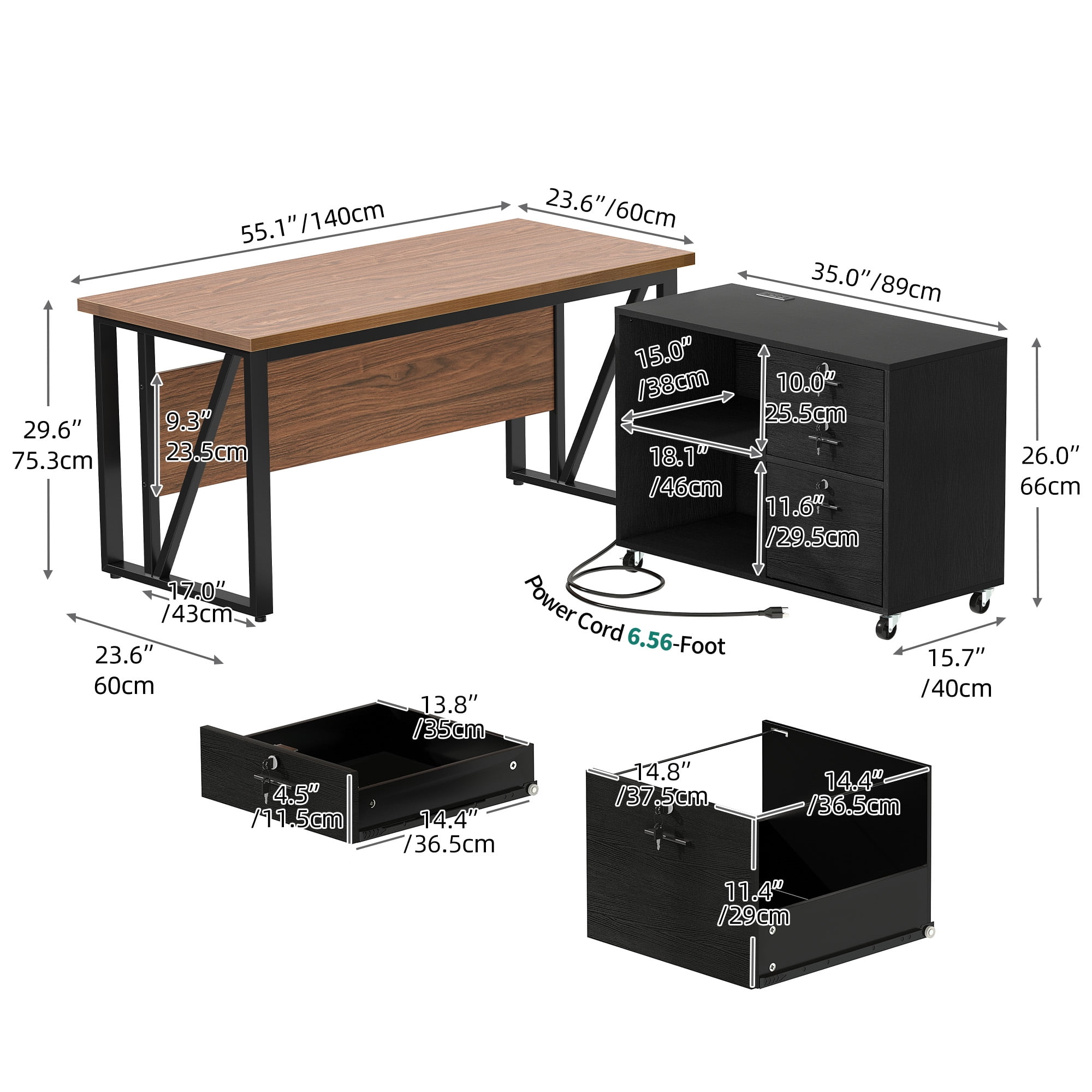 EFFORTLESS DEVICE CHARGING: Make work and study simpler with our lateral filing cabinet, complete with 2 outlets, 2 USB ports, and a 6.56ft power cord for charging phones, laptops, printers, scanners, and more. ROBUST & ENDURING: Crafted from a 1.57″ x 0.78″ heavy-duty metal frame and 1.2” thickened P2 MDF board, our office desk promises stability, longevity, and comes with a front baffle for both privacy and support. KEEP THINGS ORGANIZED: Our versatile mobile storage cabinet offers a file drawer for letter and A4 size documents, 2 drawers for small supplies, and 2 open shelves for books and documents, all of which can be securely locked. OPTIMIZED WORKSPACE: The front baffle and two-sided leg design of our computer desk maximize space and legroom. It’s suitable for a home office or business setting, and the 4 smooth-rolling wheels allow for easy mobility. SPACIOUS WORK AREA: Enjoy plenty of space to work with our roomy executive desk. Its 55.1″L x 23.6″W surface is ideal for multiple monitors and all your office needs. Plus, its modern and chic design will make your home office look cozy. age_group: Adult