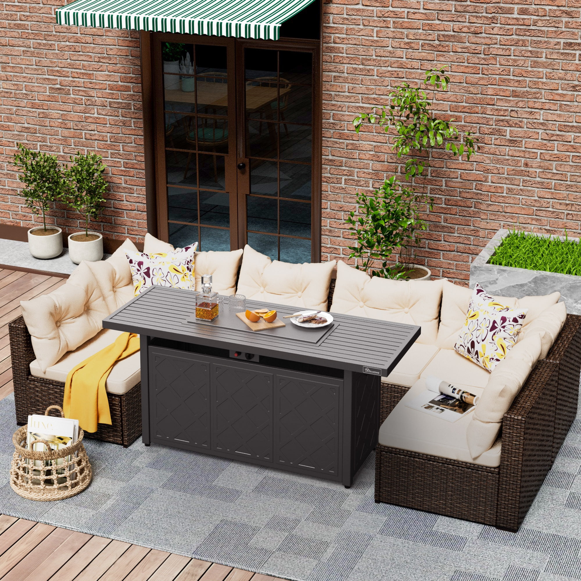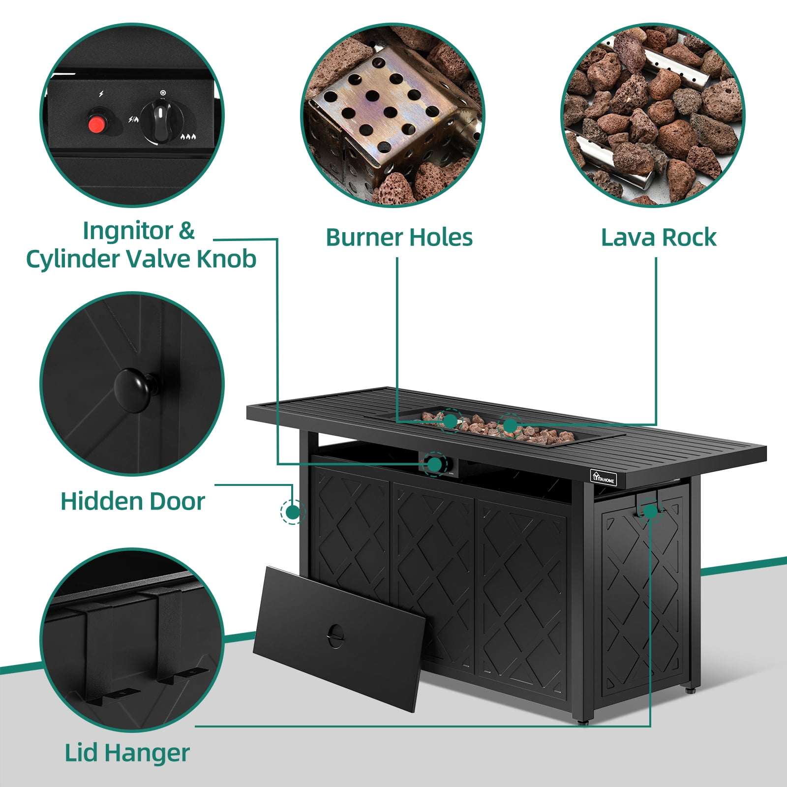 Have A Whale Of A Time – DEXTRUS gas fire table are ideal for creating an alfresco lounge space, an extension of your home where you can relax and hold a party. It not only creates a focal point for your space, but also adds warm ambience to your outdoor gatherings and drives mosquitoes away. Cold Never Bothered Us Anyway – 50,000 BTU output provide stable and sufficient heat, this propane fire pit concomitant use with a 20-pound propane tank which can provide heat around your space entertaining. When life gives you snow, make us fire. 2-in-1 Firetable – Take the lid off to be a fire pit which provides soothing warmth and gentle lighting for chilly nights, while put it on to become an outdoor coffee table that enough for holding drinks, food, and snacks for your party. Perfect match with your backyard, patio, pool, and look fantastic when matched with DEXTRUS outdoor furniture set Durable Construction – Made of powder-coated iron, 57-Inch outdoor fire pit is heat resistant and easy maintenance. The included lava rocks provide a barrier to trap heat & protect the fire pit from hot spots and cracking. Comes with cover protecting your fire pit from rust after a heavy rain. Trustworthy Fire Table – Safety comes first! Our fire pit is rigorously tested & CSA-certified. The powerful ignition system gives a good spark and the outside knob helps you adjust the fire level easily. Little maintenance is required except for the battery replacement(AAA Battery is required) Low-Maintenance and Heat-Resistant: The outdoor fire pit is made of powder-coated iron construction, making it heat-resistant and easy to maintain. Protective Cover: Don’t let heavy rain ruin your outdoor fire pit. This propane fire pit comes with a cover to protect it from rust after heavy rain. Removable Hangers: Two hooks are designed to hang the lid to keep it clean and safe. A space-saving and convenient storage option.
