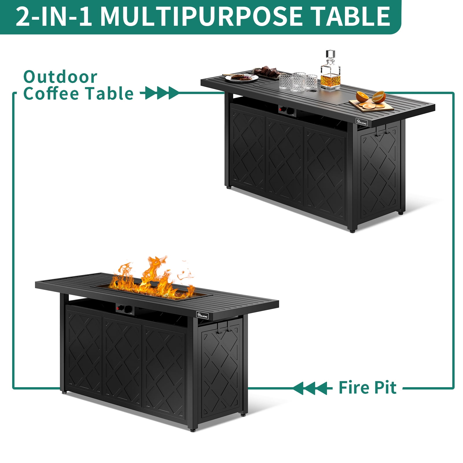 DEXTRUS 57 Inch Propane Outdoor Firetable 50000 BTU Gas Fire Pit with Ignition Systems for Patio Garden Backyard (Black)