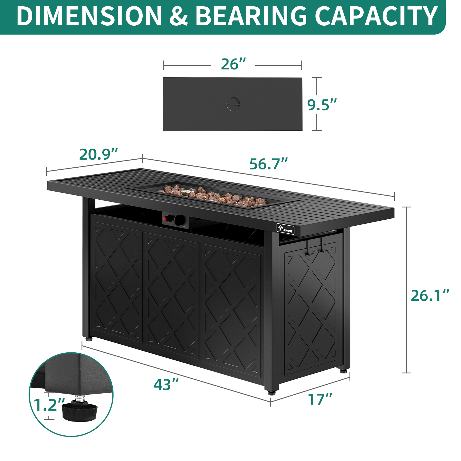 57 Inch Propane Fire Pit Table, 50,000 BTU Gas Fire Pit with Ignition Systems, Iron Tabletop, Lava Rock, Cover, Lid Hanger, Rectangular Outdoor Firetable for Patio Garden Backyard (Black) Have A Whale Of A Time – DEXTRUS gas fire table are ideal for creating an alfresco lounge space, an extension of your home where you can relax and hold a party. It not only creates a focal point for your space, but also adds warm ambience to your outdoor gatherings and drives mosquitoes away Specifications: Material:Iron Style:Modern Brand:DEXTRUS Shape:Rectangular Fuel Type:Liquefied Petroleum Gas Assembly Required:Yes Product Dimensions &Weight : 57 INCH( 20.9″W x 57″D x 26.1″H; 87 pounds) 59 INCH( 23.8″W x 59.4″D x 11.8″H; 82 pounds) 46 INCH( 46″D x 26″W x 19″H; 86.5 pounds) 43 INCH( 42.9″D x 22″W x 24.4″H; 75.9 pounds) 56 INCH( 56″D x 20.8″W x 24.4″H; 82 pounds)