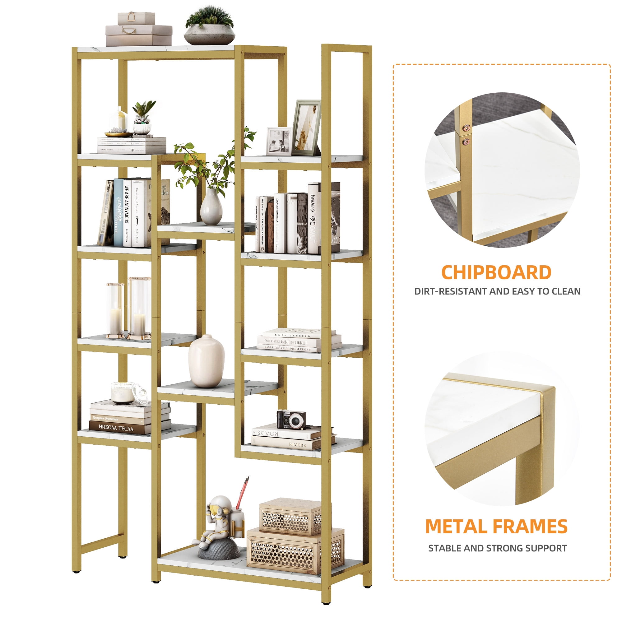 Dextrus 6 Tier Gold Bookshelf, 71” Tall Modern Free Standing Bookshelf with 12 Shelf Bookcase, Faux Marble Open Display Storage Book Shelves for Living Room Bedroom Office Home
