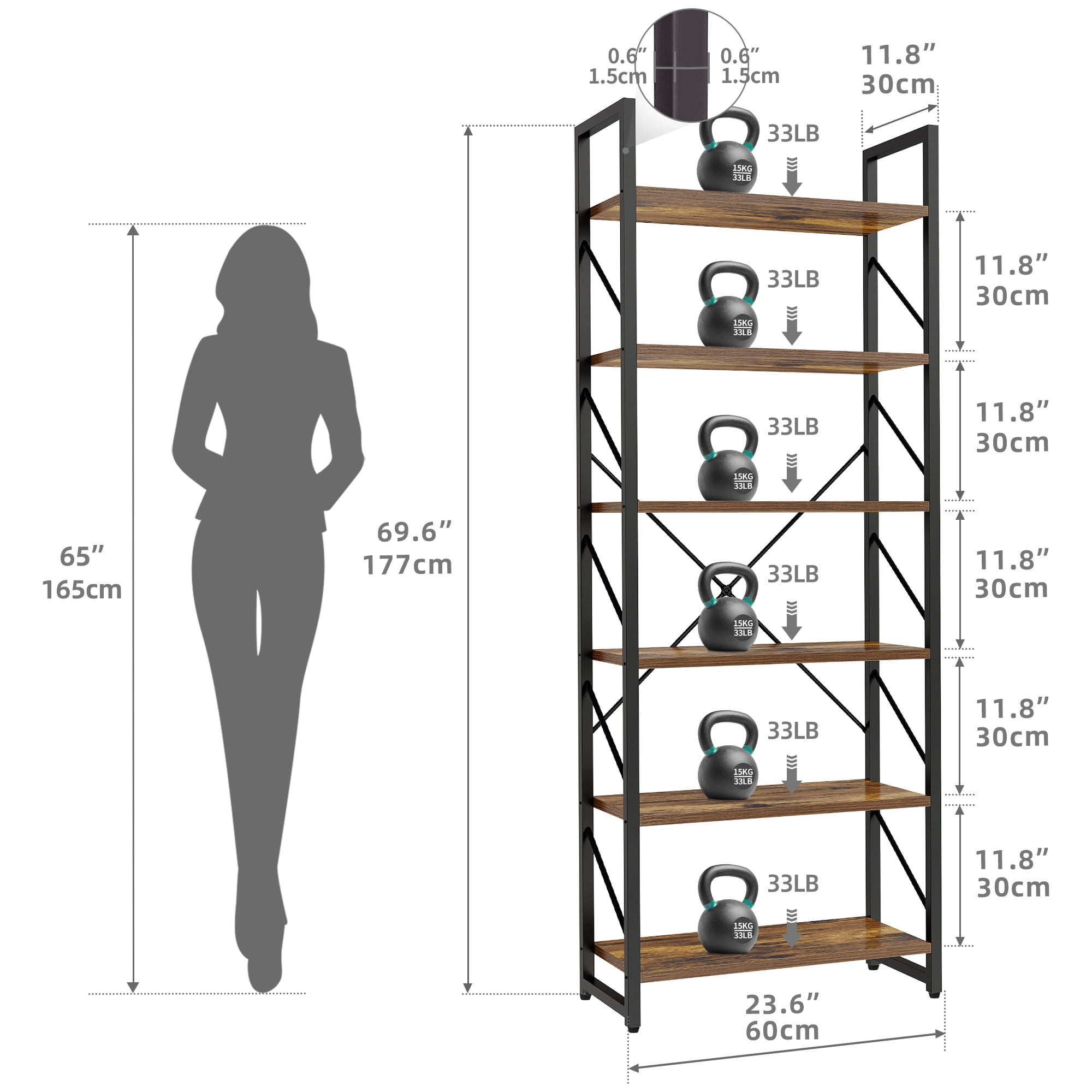 6-Tier Bookshelf is a modern and functional storage organizer that adds a touch of elegance to any room. With its sturdy “X” design and durable particle board construction, it provides stability and reliability. This open display shelf offers ample space for showcasing your favorite books, decorative items, and more. Whether in the bedroom, living room, or home office, this 6-tier bookshelf is a stylish and practical addition to your space. Its sleek design and multiple storage shelves make it easy to organize and access your belongings with ease. Specification: Material: Particle Board; Steel Frame Dimensions: 11.8″D x 23.6″W x 69.6″H Room Type: Office, Kitchen, Living Room, Bedroom, Study Room Installation Type : Freestanding Package Contents: 1 x Bookshelf 1 x Packet of Fittings 1 x Instruction Manual