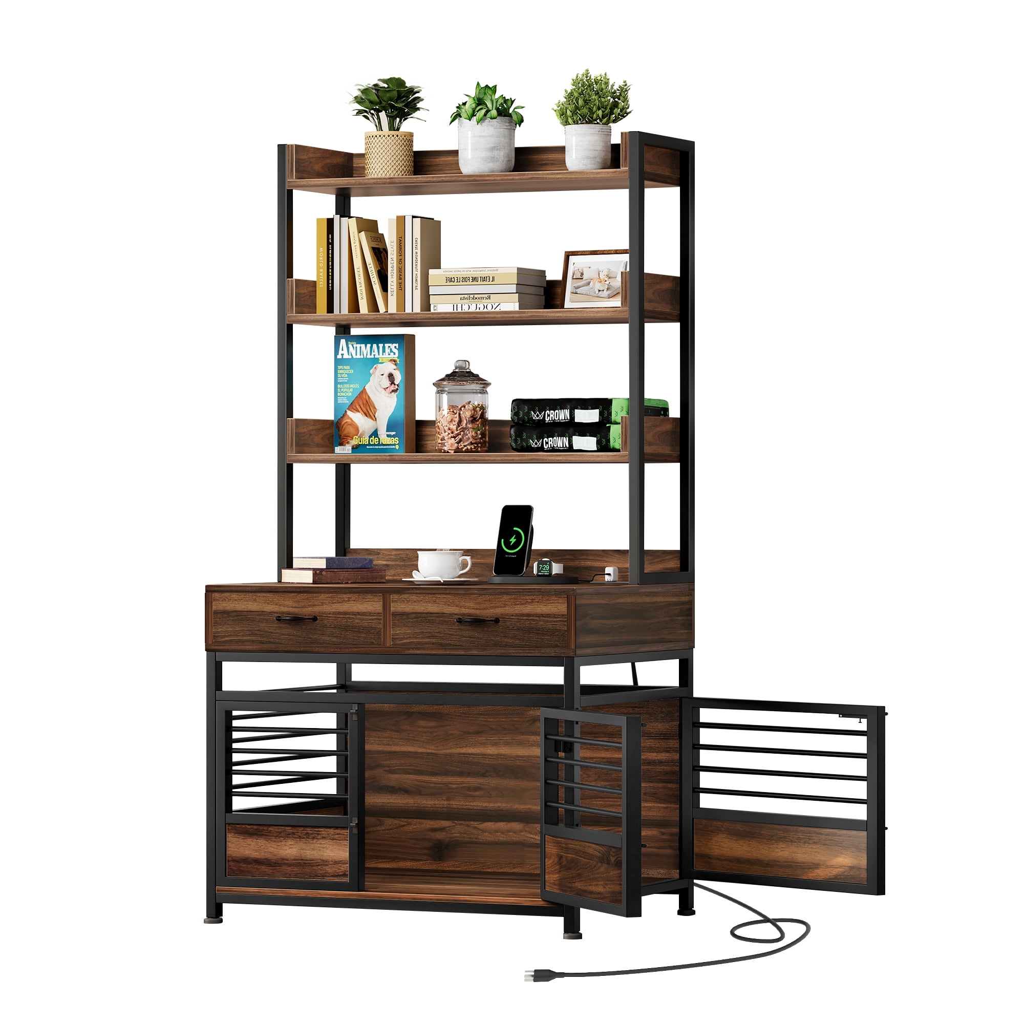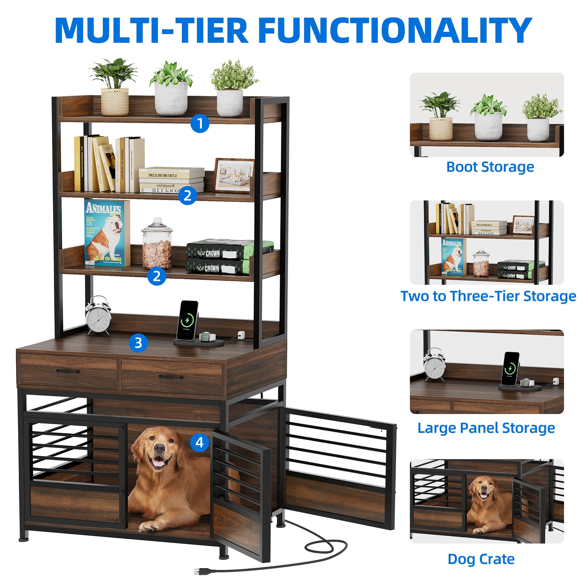 Pet Haven with Hidden Compartments: Introducing our innovative dog crate that combines comfort and functionality. This unique design features hidden compartments, including a concealed drawer and secret cubbies, providing ample storage space for pet supplies and personal belongings. Keep everything organized while ensuring a cozy retreat for your furry companion. Pet Haven with Hidden Compartments: Introducing our innovative dog crate that combines comfort and functionality. This unique design features hidden compartments, including a concealed drawer and secret cubbies, providing ample storage space for pet supplies and personal belongings. Keep everything organized while ensuring a cozy retreat for your furry companion. Enhanced Bonding Experience: Strengthen the emotional connection with your dog using the interactive space located above the door. Gently comforting your nervous pup by caressing its head creates a soothing environment, eliminating feelings of loneliness. The crate’s enhanced ventilation system ensures optimal comfort for your furry friend throughout the day. Enhanced Bonding Experience: Strengthen the emotional connection with your dog using the interactive space located above the door. Gently comforting your nervous pup by caressing its head creates a soothing environment, eliminating feelings of loneliness. The crate’s enhanced ventilation system ensures optimal comfort for your furry friend throughout the day. Seamless Connectivity: Stay connected while providing a comfortable space for your pet. Our dog crate comes with a built-in vertical charging station, equipped with two AC and two USB ports. Experience hassle-free charging for multiple devices, ensuring convenience for both you and your furry companion. Seamless Connectivity: Stay connected while providing a comfortable space for your pet. Our dog crate comes with a built-in vertical charging station, equipped with two AC and two USB ports. Experience hassle-free charging for multiple devices, ensuring convenience for both you and your furry companion. Convenient Dual Entrance: Our furniture-style dog crate offers double entrances with doors on both sides, featuring secure latches for effortless access. Crafted with premium metal iron pipes, this crate guarantees long-lasting durability and stability for your furry friends, providing a safe and secure environment. Easy Installation: Setting up your pet’s new haven is a breeze. Our dog crate furniture includes all the necessary accessories and detailed installation instructions. For larger items, we recommend assembling them with two or more people to ensure a faster and safer installation process. Enjoy the convenience of an easy setup and provide your dog with a comfortable and stylish retreat with hidden storage compartments. Convenient Dual Entrance: Our furniture-style dog crate offers double entrances with doors on both sides, featuring secure latches for effortless access. Crafted with premium metal iron pipes, this crate guarantees long-lasting durability and stability for your furry friends, providing a safe and secure environment. Easy Installation: Setting up your pet’s new haven is a breeze. Our dog crate furniture includes all the necessary accessories and detailed installation instructions. For larger items, we recommend assembling them with two or more people to ensure a faster and safer installation process. Enjoy the convenience of an easy setup and provide your dog with a comfortable and stylish retreat with hidden storage compartments.
