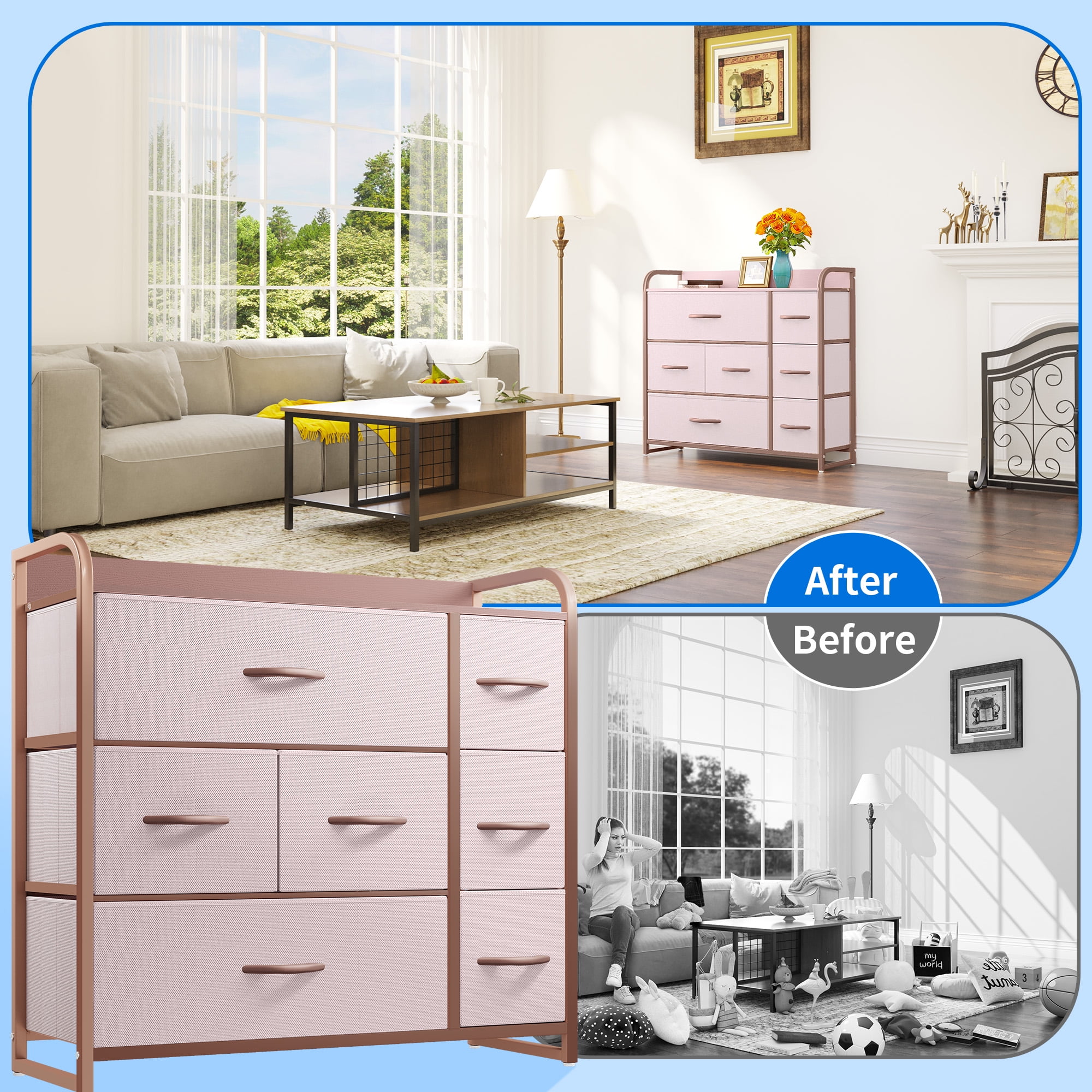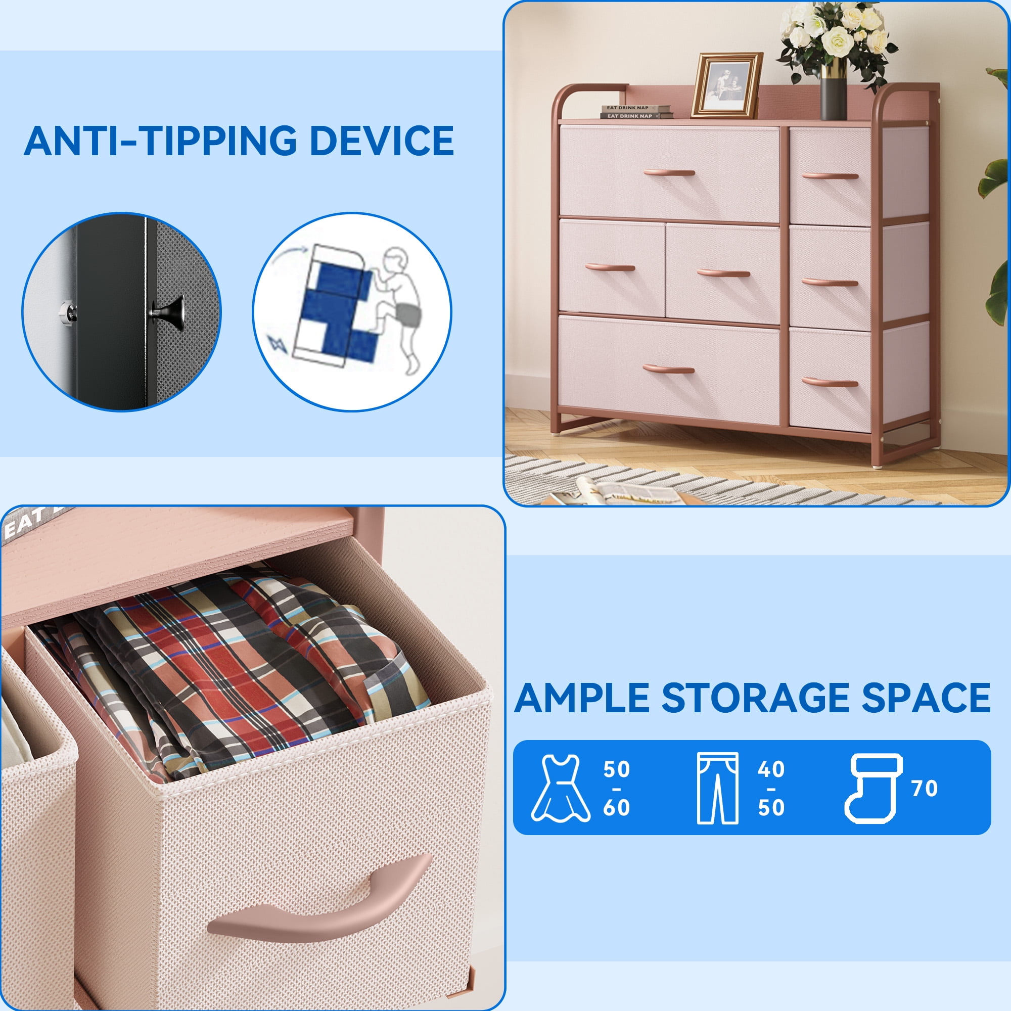 DEXTRUS 7-Drawer Fabric Dresser, Pink Storage Organizer for Bedroom & Living Room