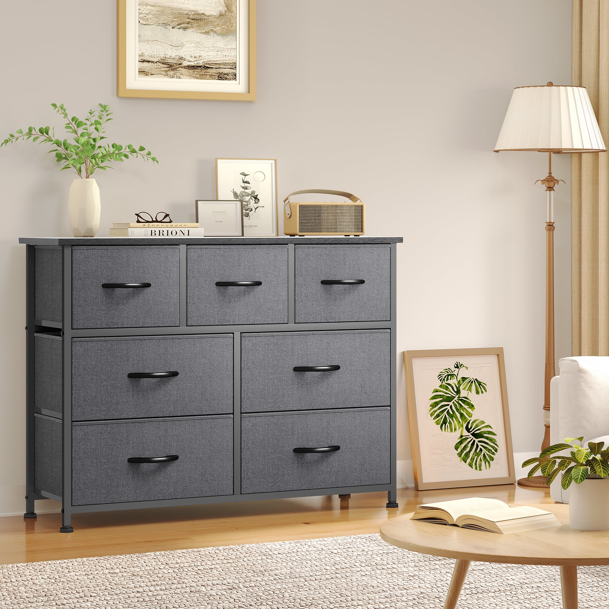 Dextrus 7 Drawers Fabric Dresser, TV Stand for for TV up to 45 Inch, Dull Gray