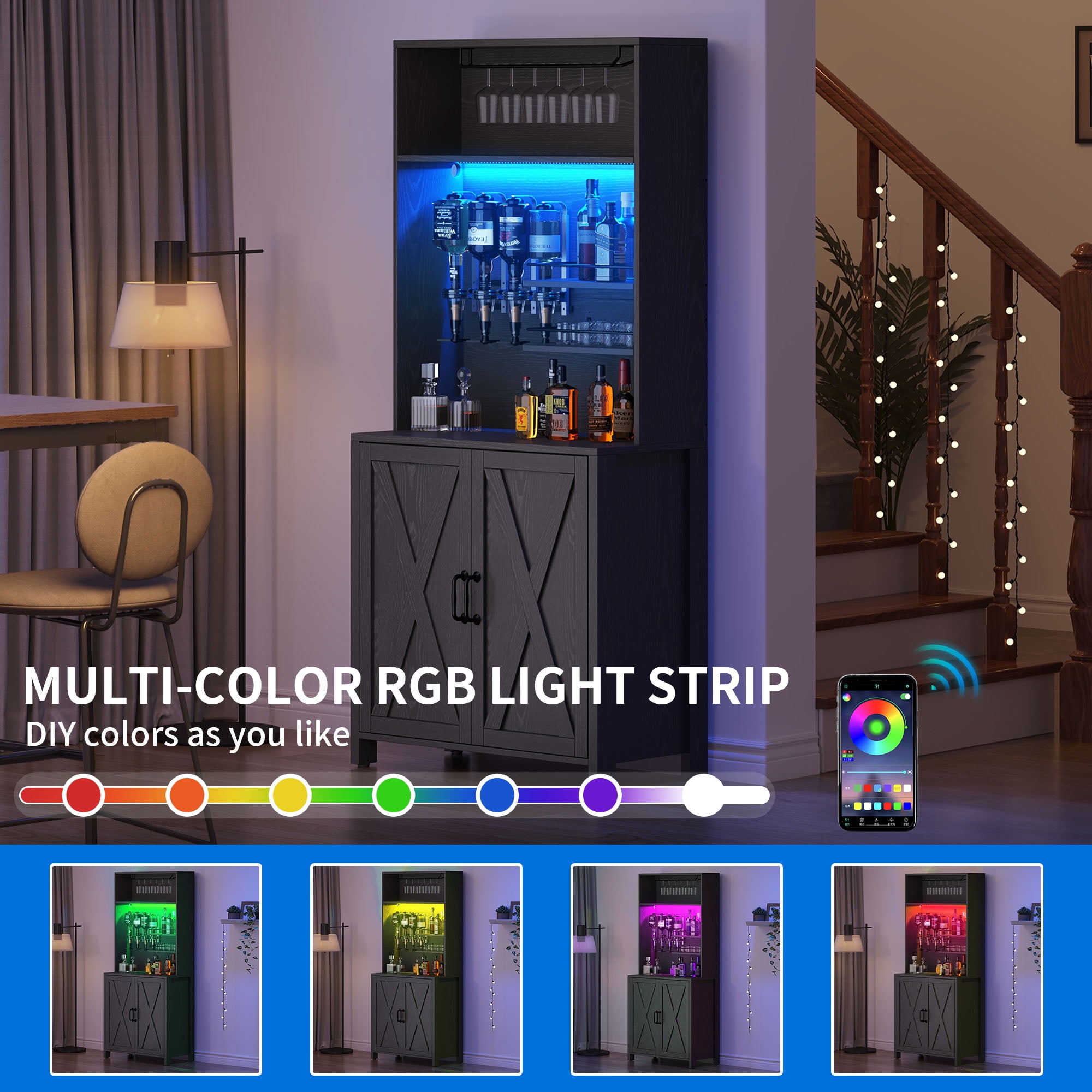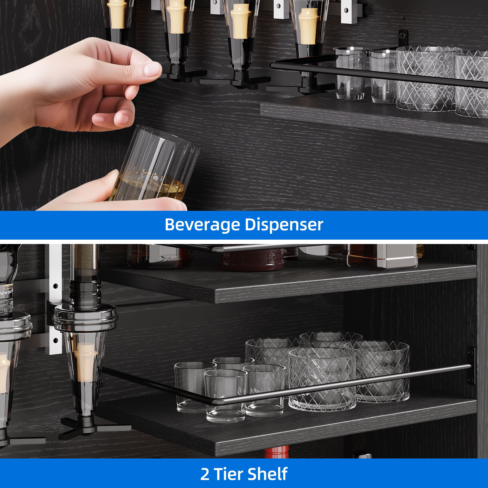 DEXTRUS 70.87″ Bar Cabinet with Beverage Dispenser, Bar Cabinet with LED Light & Glass Holder, Black