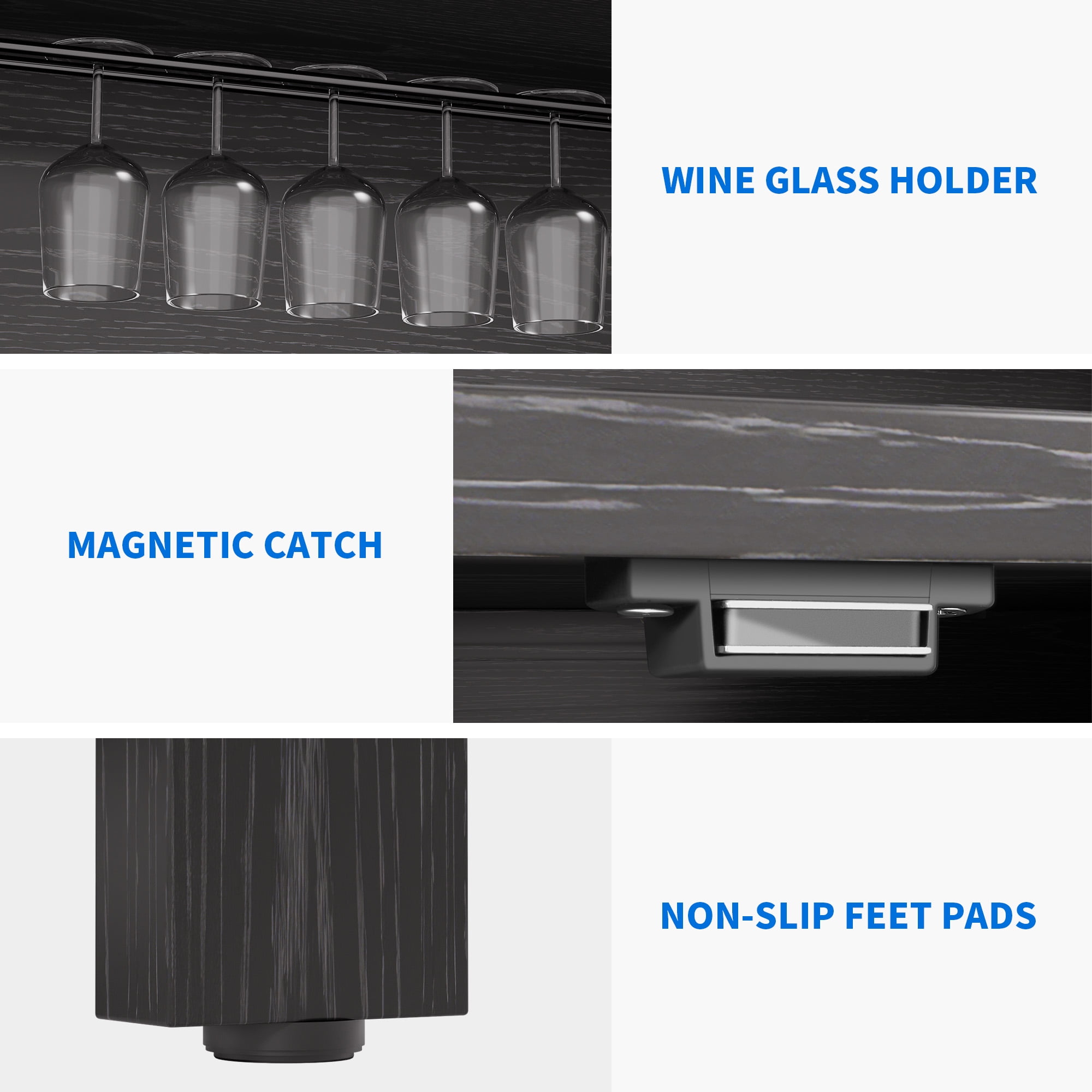 [Adjustable LED Color Lighting] Features adjustable LED lights with 7 colors available, Whether placed in the dinning room or the living room, it conveniently fits into any corner of your home. [Anti- Tipping Design] Equipped with anti-tipping devices and adjustable foots pad, this bar unit not only ensures the safety of you and your family by mitigating potential hazards but also level it on uneven floor. [Premium Material & Sturdy Frame] Crafted from premium P2 15mm particle board. With a weight-bearing capacity of up to 120 pounds, without any concerns regarding its stability and durability. [Easy Assemble] No need to an expert on the assembly of this Dextrus baker rack, as it comes with numbered parts and step-by-step instructions to easy install.