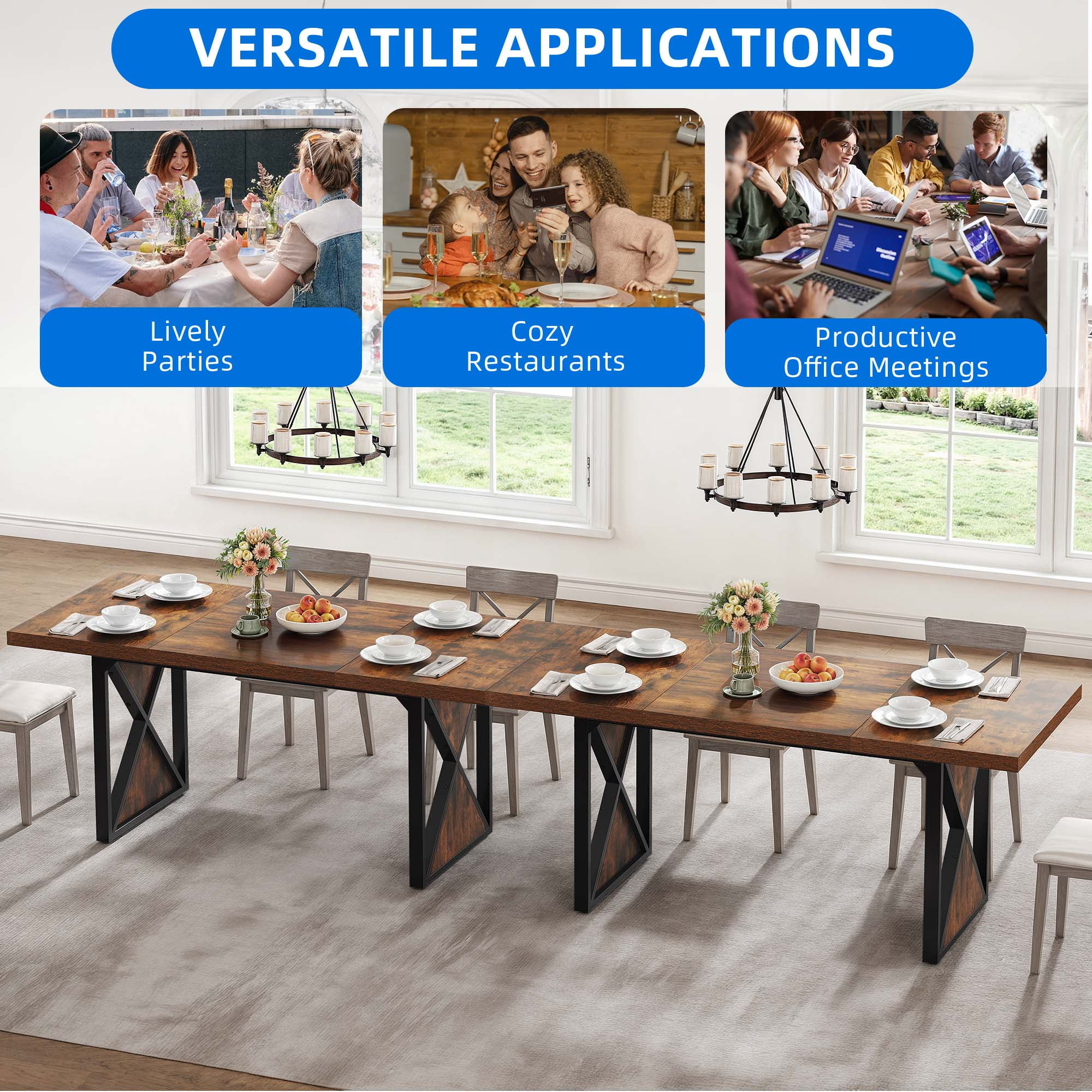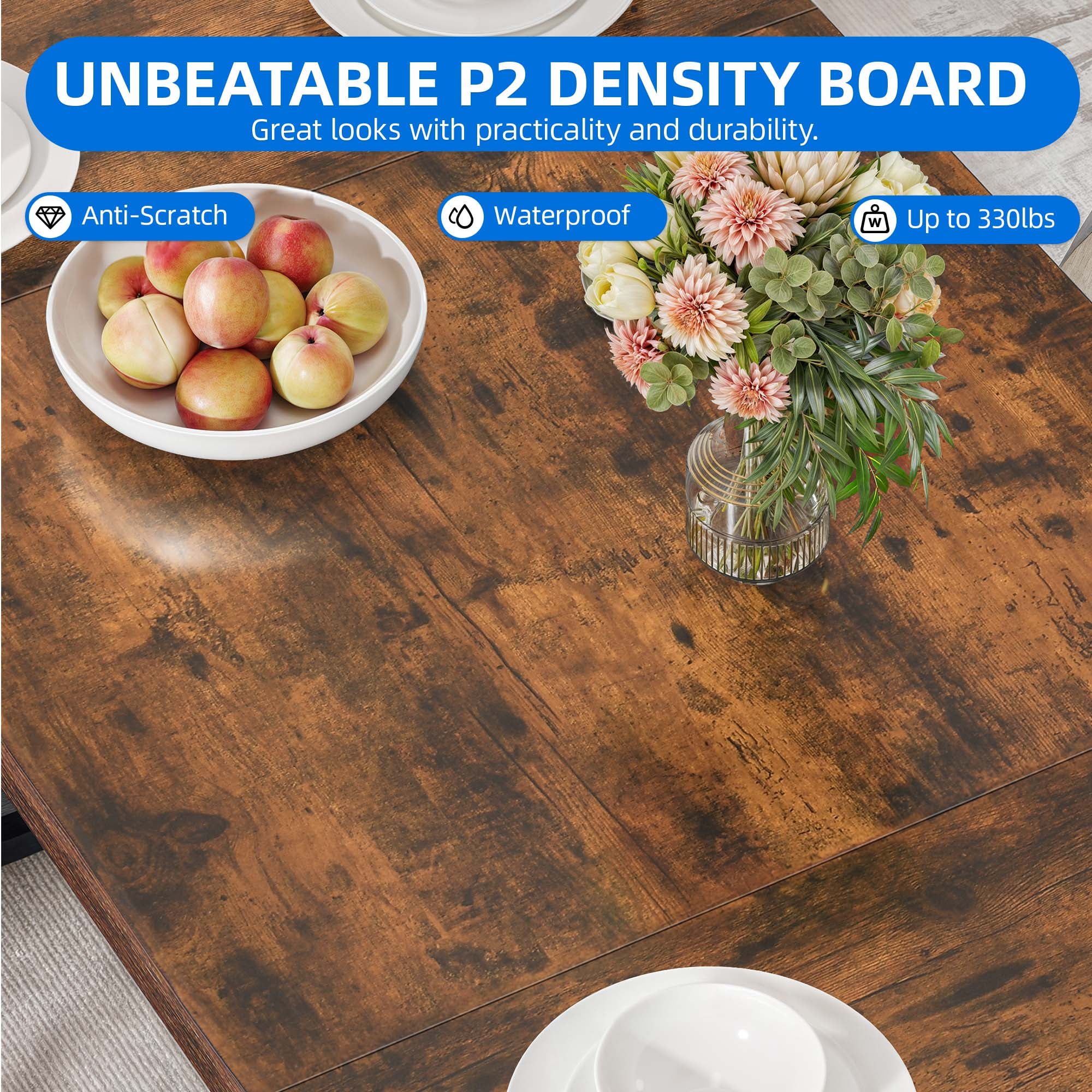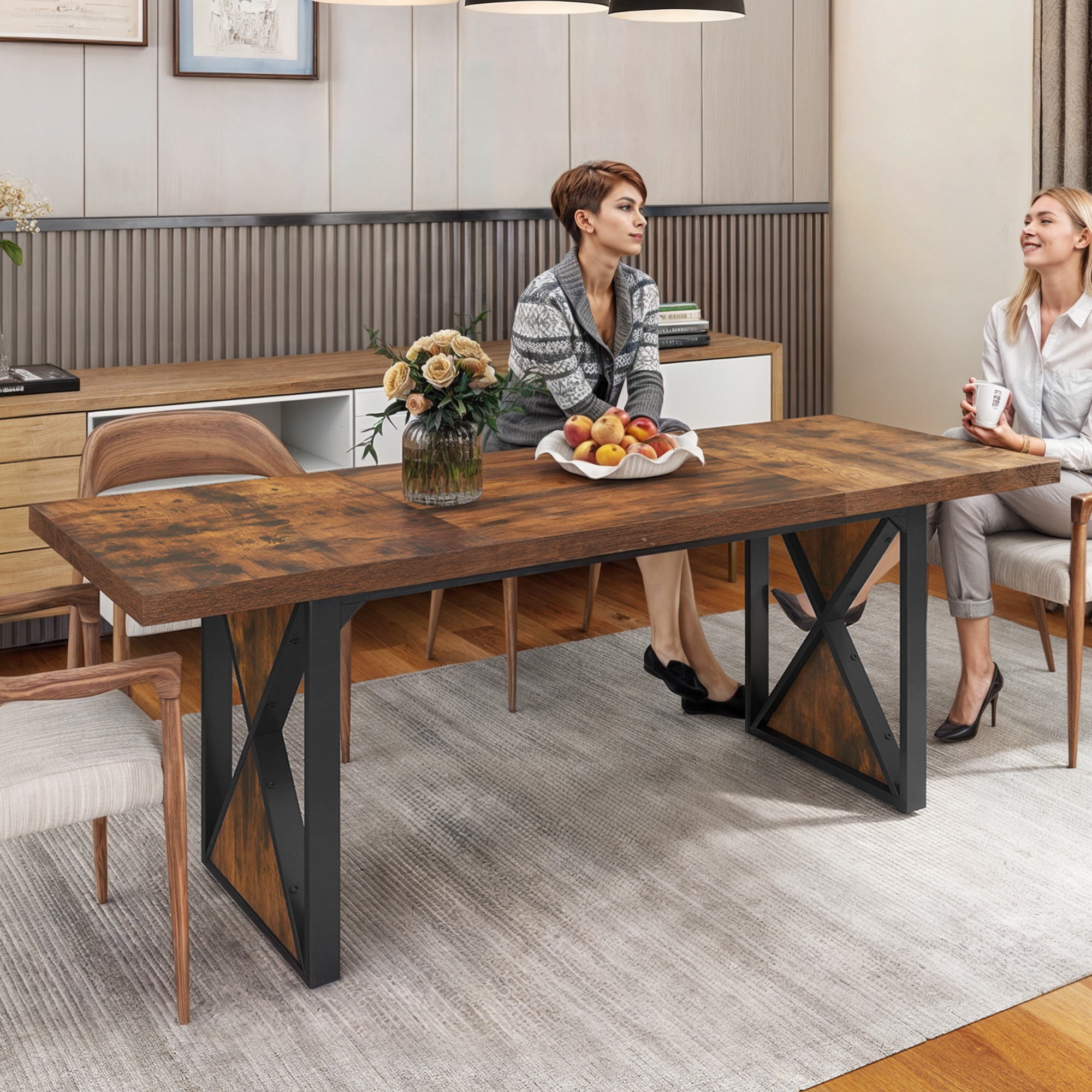 Dextrus 70″ Dining Table for 6-8 People, Large Rectangular Wood Kitchen Table Farmhouse Dinner Table with Metal Legs for Dining Room, Kitchen, Brown & Black