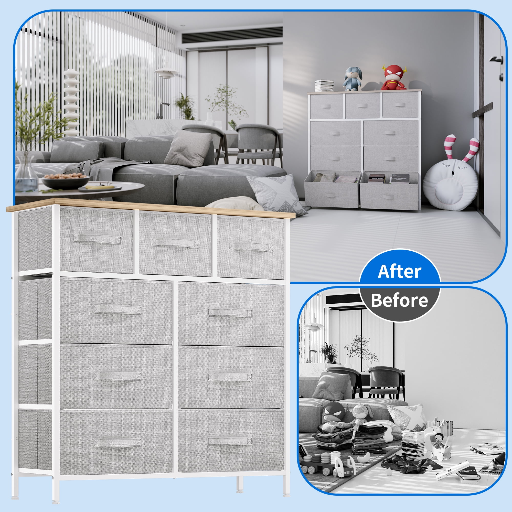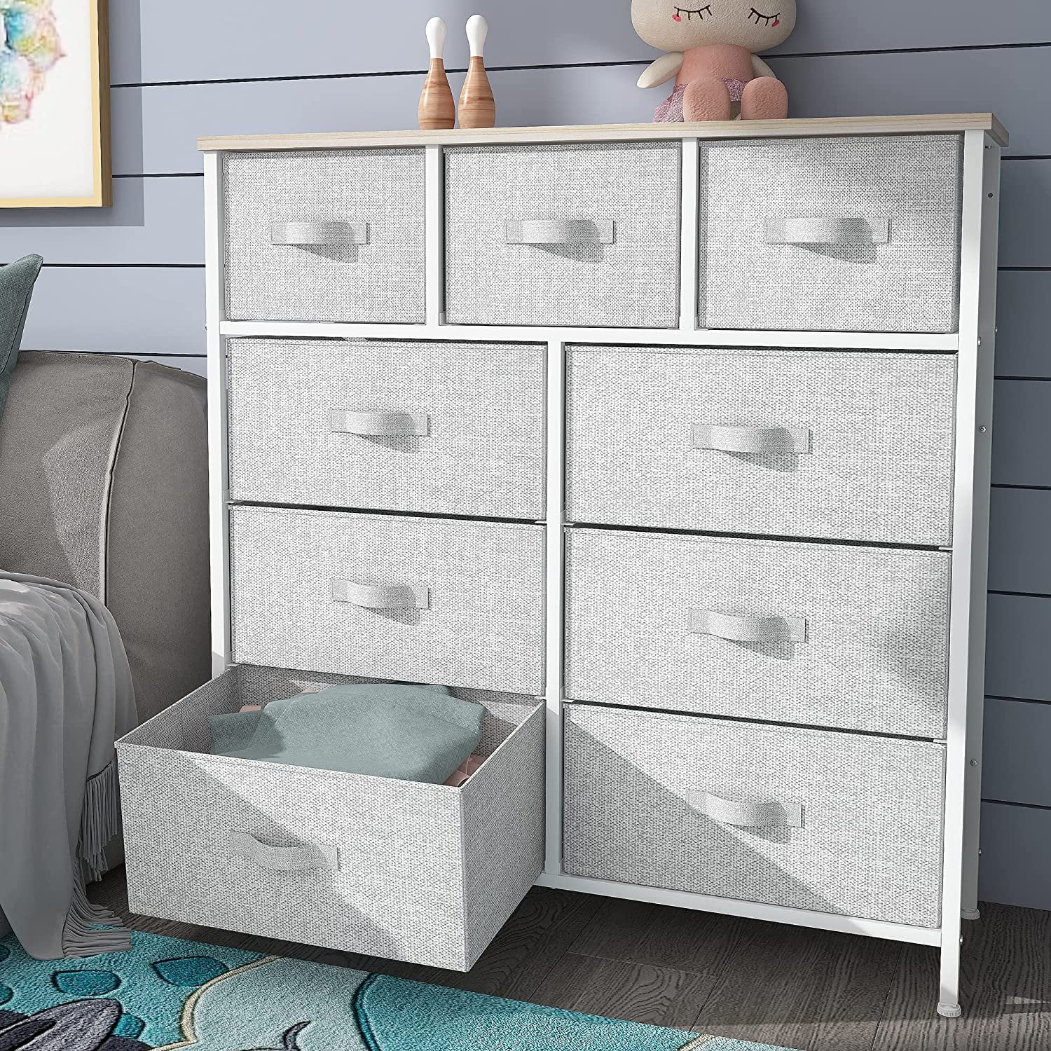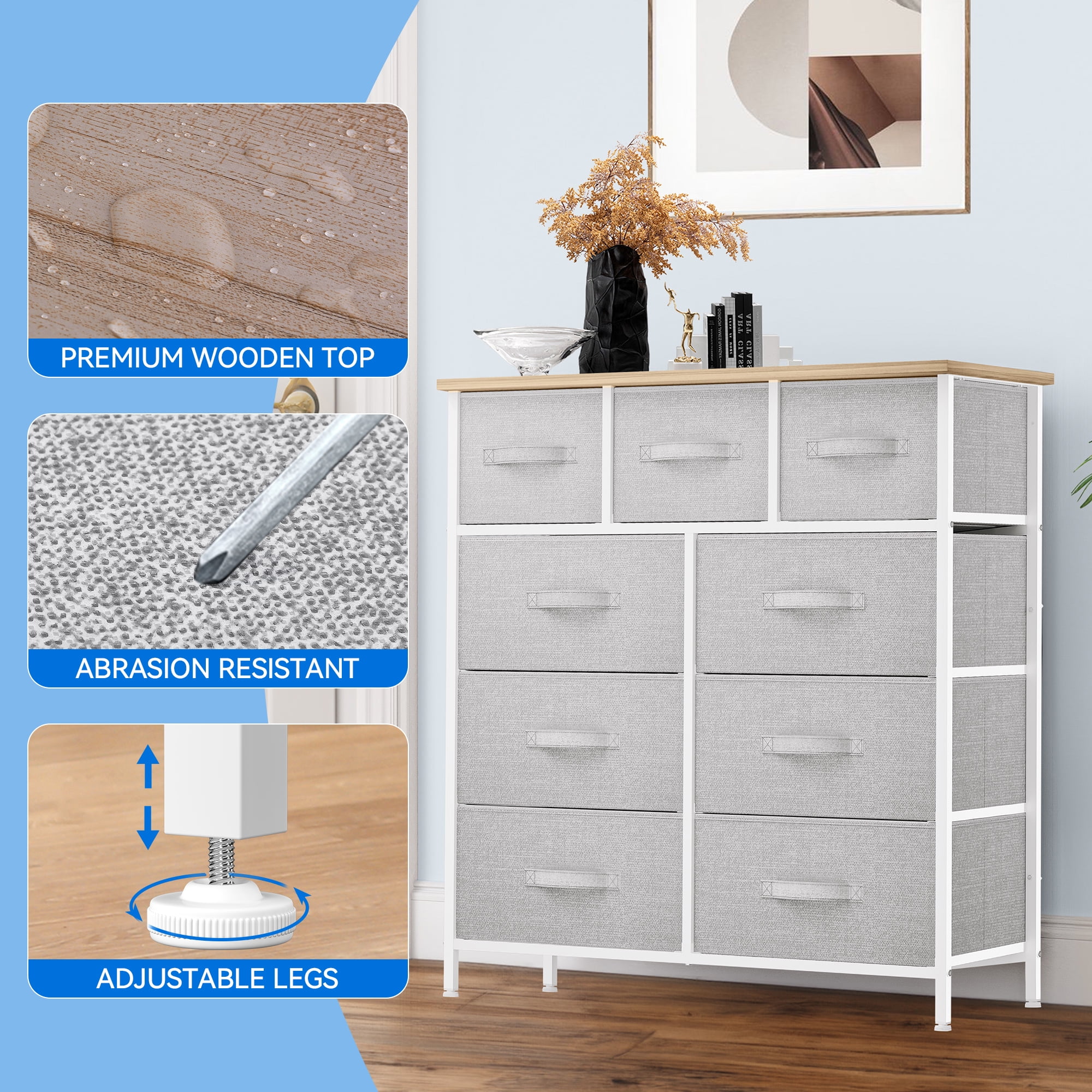 DEXTRUS 9-Drawer Fabric Dresser Storage Chest, Light Gray, for Adults