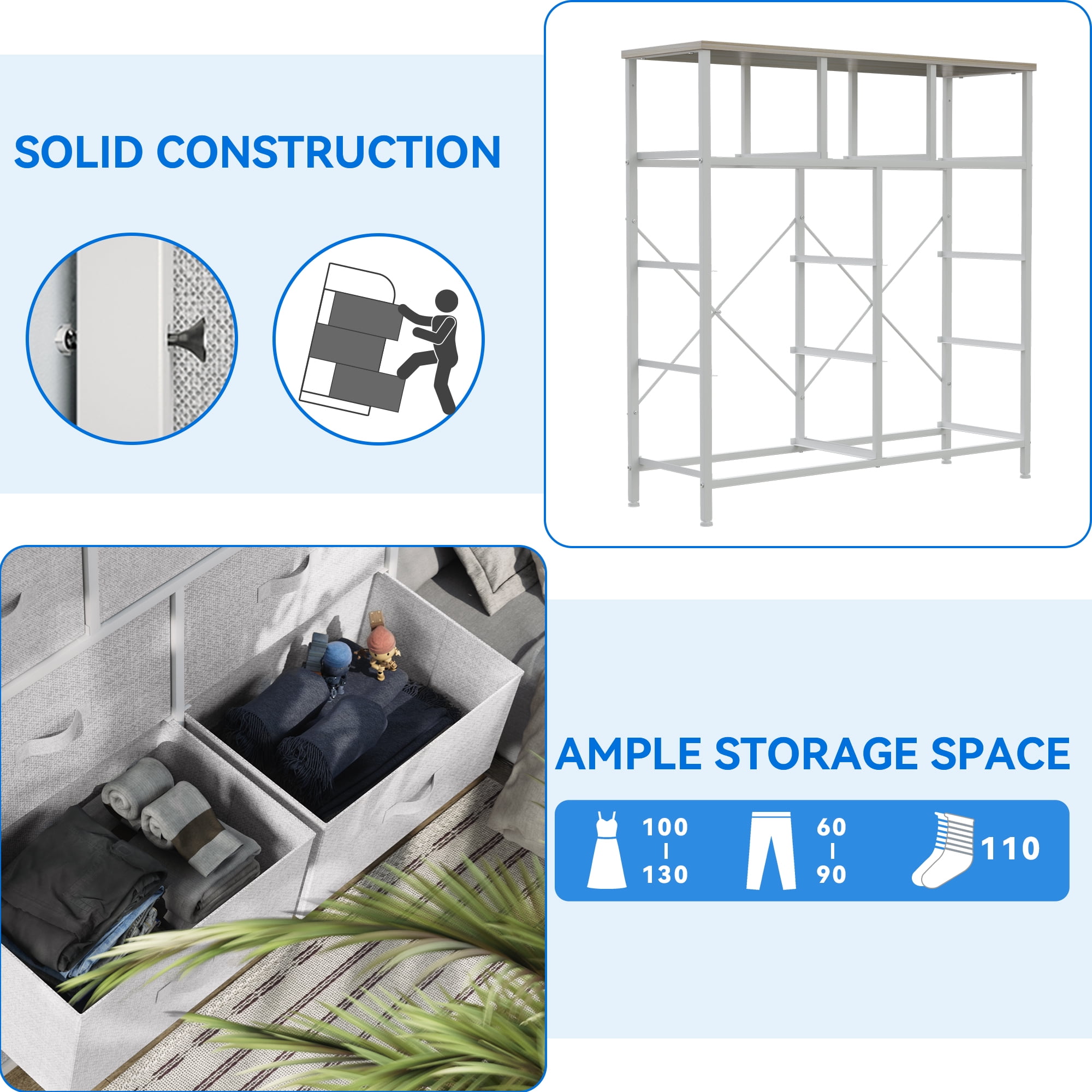 Color: Light Gray Overall Dimensions: 39.4″ L x 11.8″ W x 39.4″ H Drawer Sizes: Large Drawer: 18.1″ L x 11″ W x 8.5″ H; Small Drawer: 11.8″ L x 11″ W x 8.5″ H Spacious Storage: 9 deep drawers offer ample space for organizing clothes, linens, toys, books, and daily essentials Weight Capacity: Each drawer supports 8-15 rolled-up T-shirts or 4-6 pairs of jeans Versatile Use: Ideal for bedrooms, laundry rooms, living rooms, hallways, entryways, dorms, and closets Foldable Drawers: Linen storage drawers can be folded flat when not in use, saving space Durable Construction: Reinforced steel frame and MDF wooden top provide reliable strength and long-term durability Floor Protection: Adjustable plastic feet prevent scratches and enhance stability on uneven surfaces Easy Maintenance: Wipe clean with a damp cloth and let it air dry Age Group: Designed for adults, teens, and young children, this dresser is ideal for bedrooms, dorm rooms, apartments, and family homes. Its multifunctional design makes it suitable for any space that needs clutter-free storage.