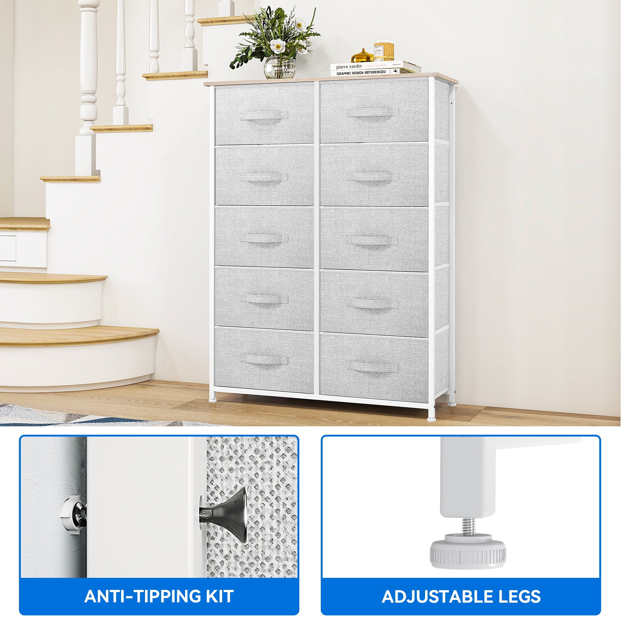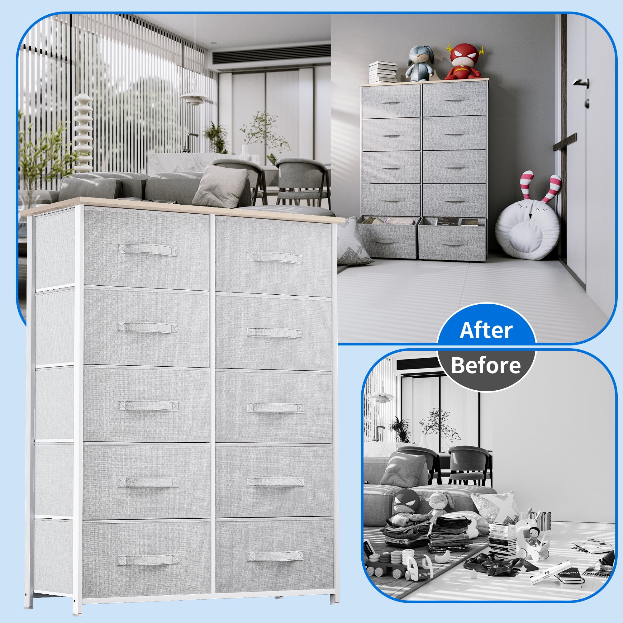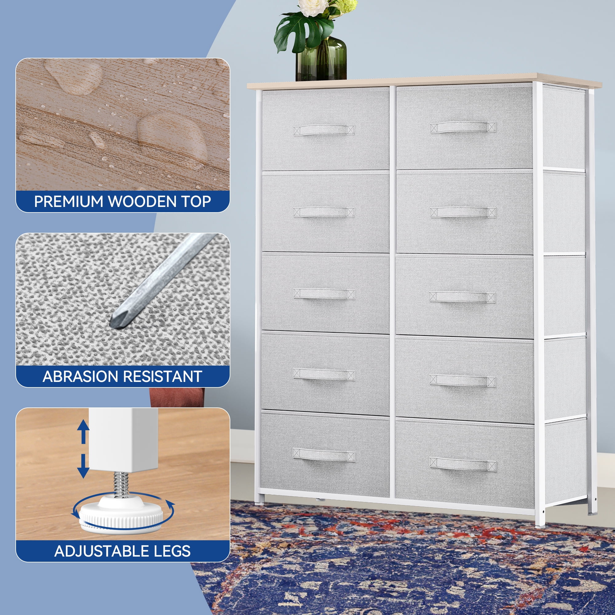 DEXTRUS Dressers with 10 Drawers – Fabric Storage Tower, for Adult for Bedroom, Living Room, Hallway, Cool Gray