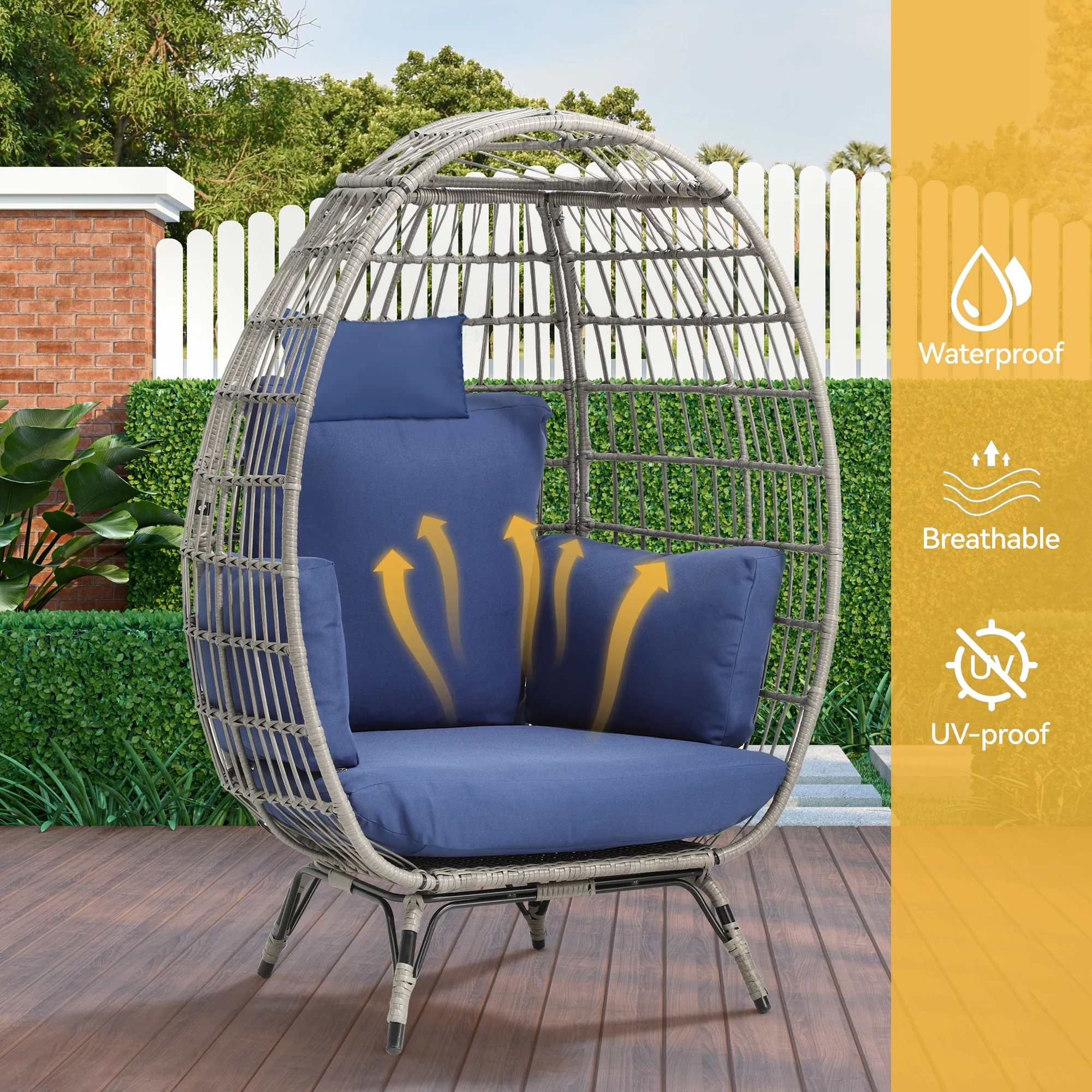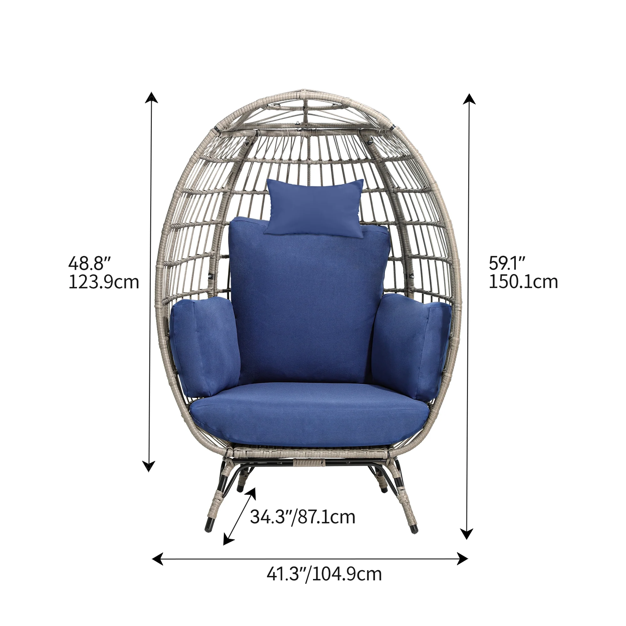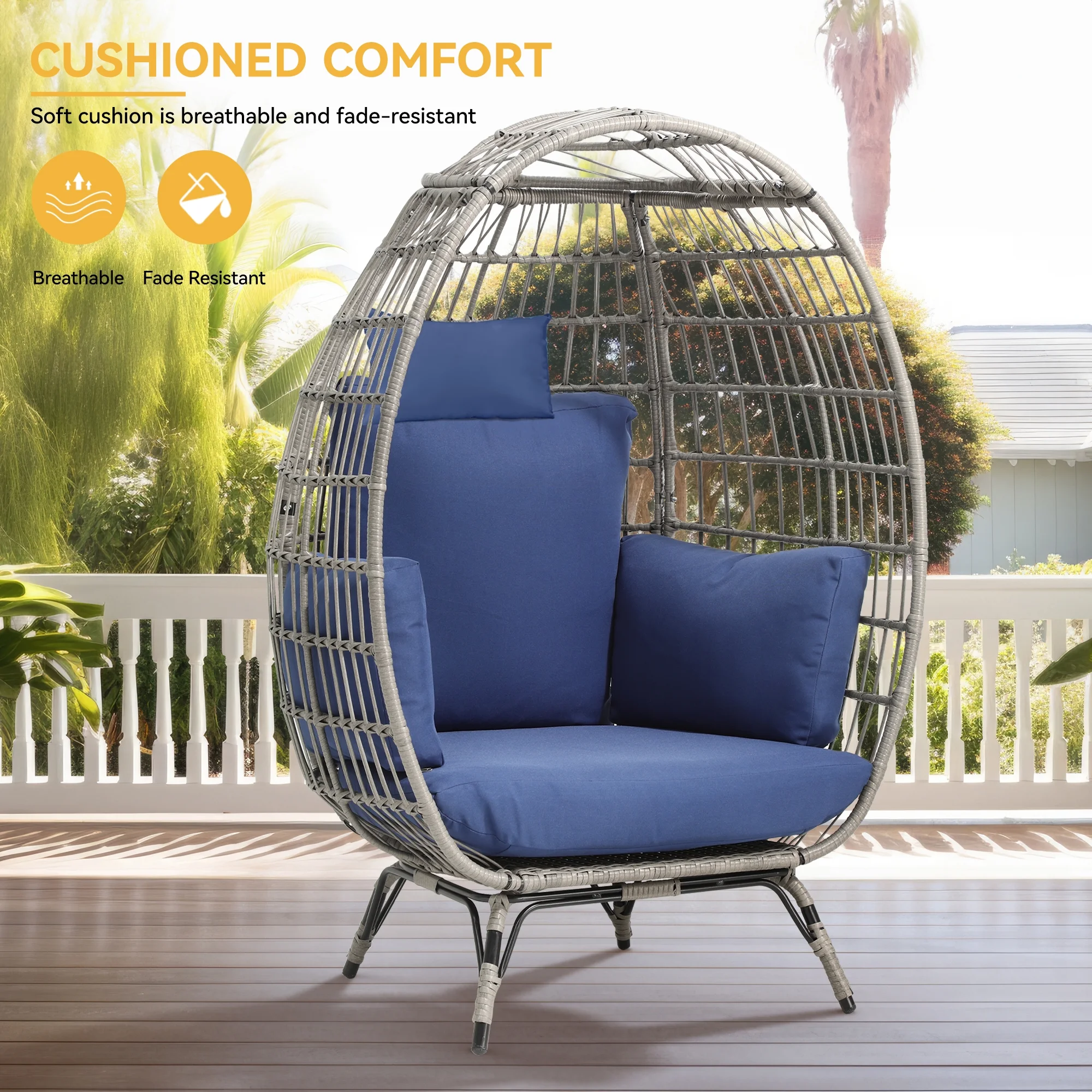 Dextrus Egg Chair Outdoor Egg Lounge Chair with Cushion Wicker Chair PE Rattan Chair for Patio, Garden, Backyard, Porch-Blue