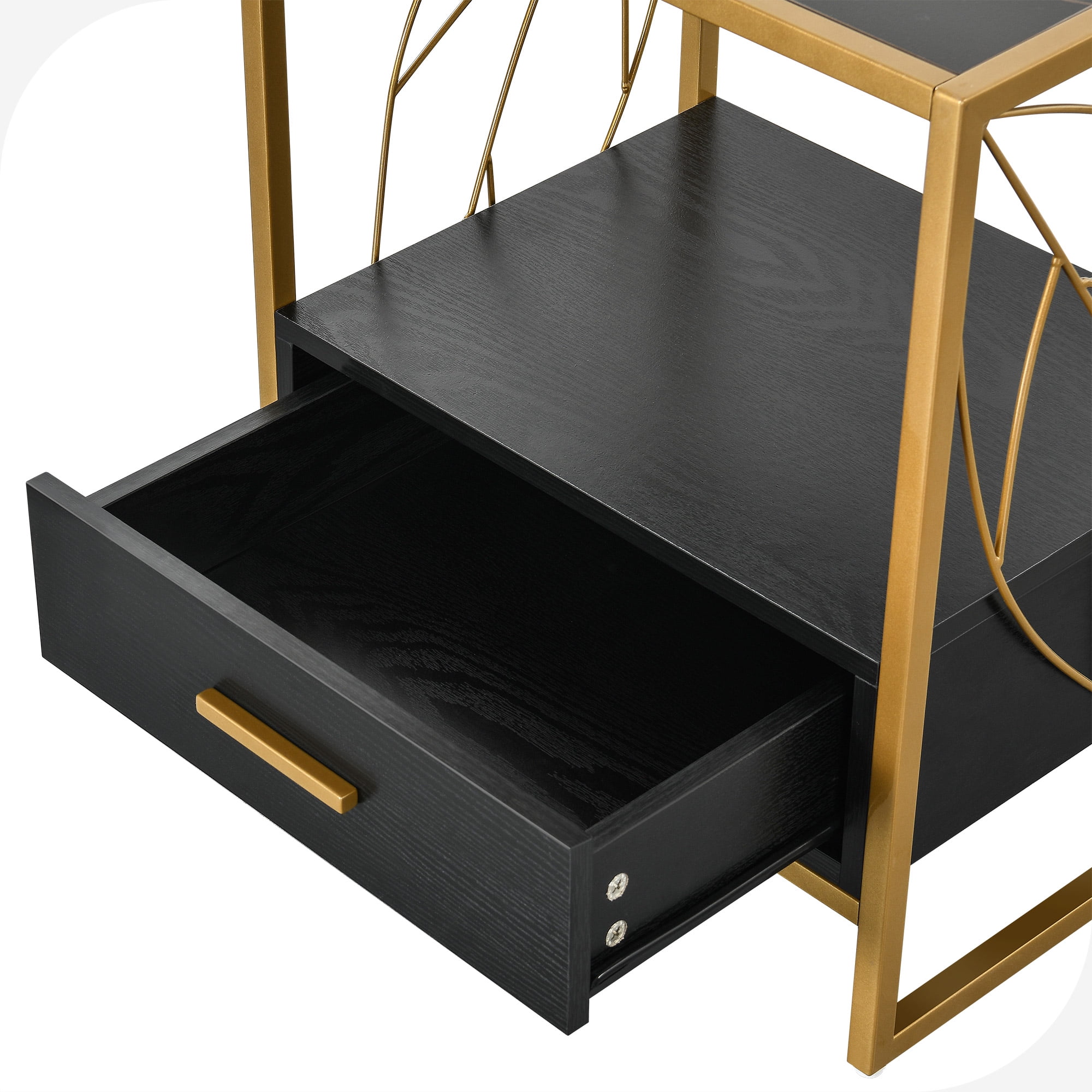 [Simple But Stylish] Clean-lined design with gorgeous gold metal Leaf Shape frame gives this end table an understated look, great choice for living room, bedroom, guest room. [Convenient Drawer& Storage Shelf] Features a drawer and middle open shelf, lend ample storage space for lamp, books, magazines, knick-knack and more, easy to keep essentials at hand. [Multi-Functional Table] Works well as an end table/sofa side table/chairside table for living room, nightstands/bedside table for bedroom, guest room. [Durable Material] Heavy-duty metal frame with gorgeous gold finish, anti-scratch, rust-free. Reliable material ensures that the side table will hold up well for years. Easy to install: Each piece has a letter or number, and the step-by-step instructions are easy to follow. Please email us if necessary, and any problem will be solved promptly to your satisfaction.