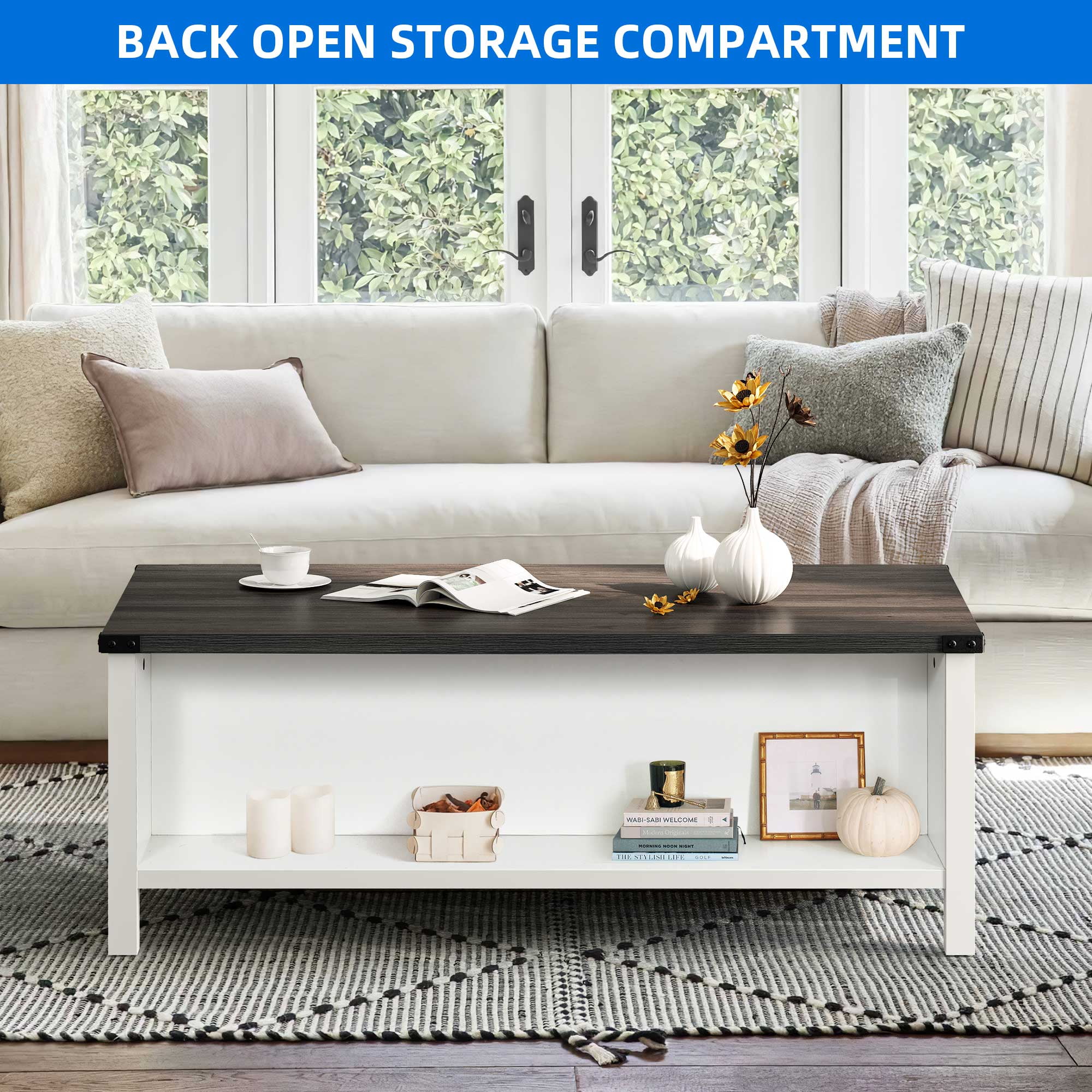 Dextrus Farmhouse Coffee Table with Storage, 2-Tier Storage Open Shelf Rustic Living Room Tables, White & Gray